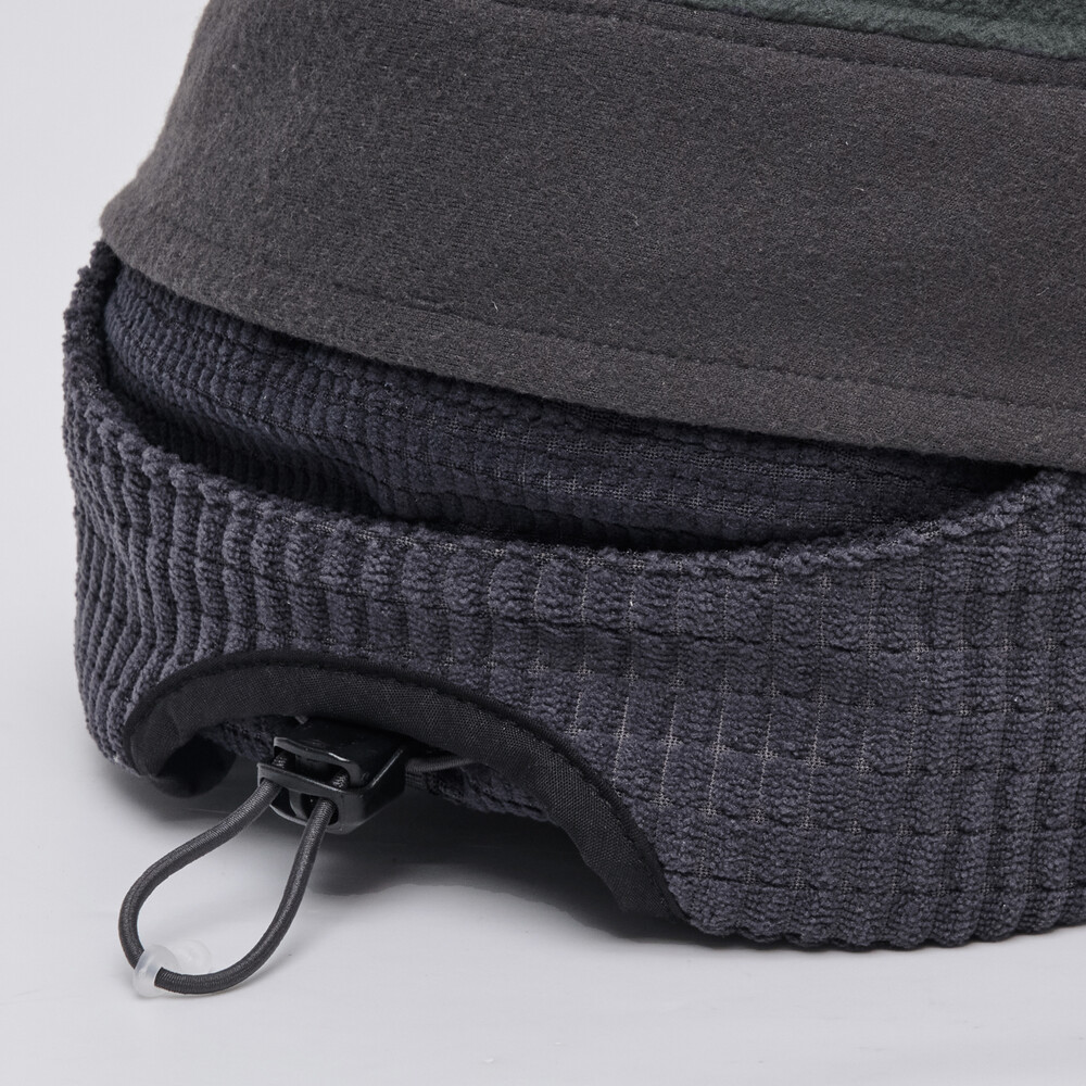 • 외부에는 작은 와플 조직 원단, 내부에는 큰 와플 조직 원단으로 구성된 이어플랩을 배치하여 입체적인 질감과 구조적 안정성을 구현함과 동시에 보온성도 발휘.