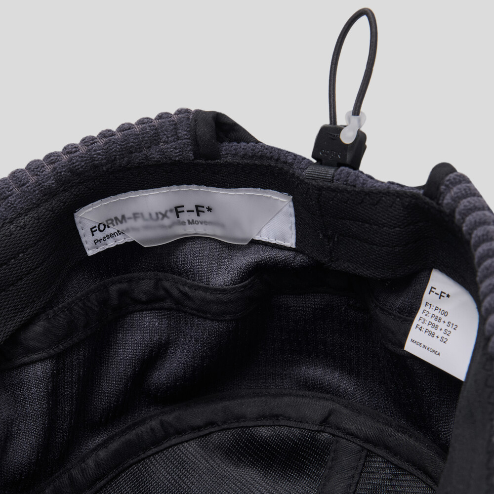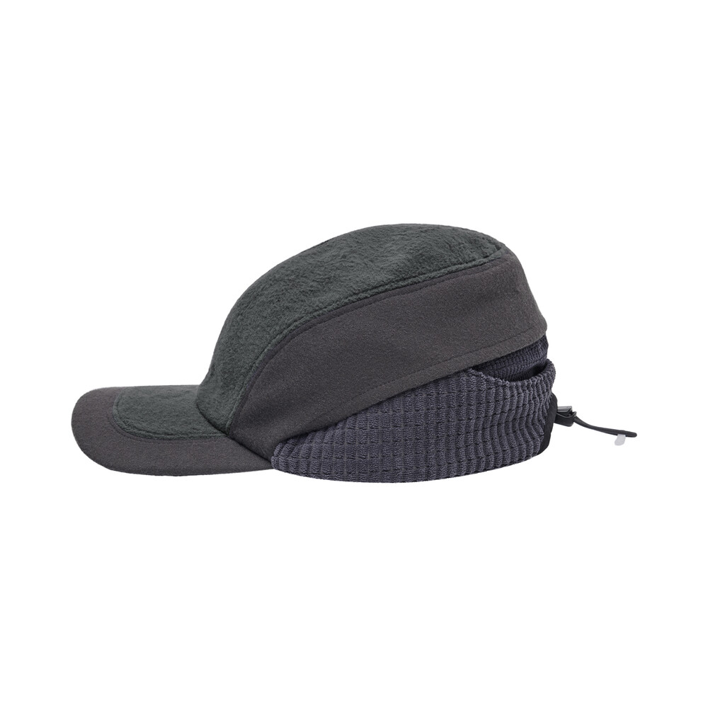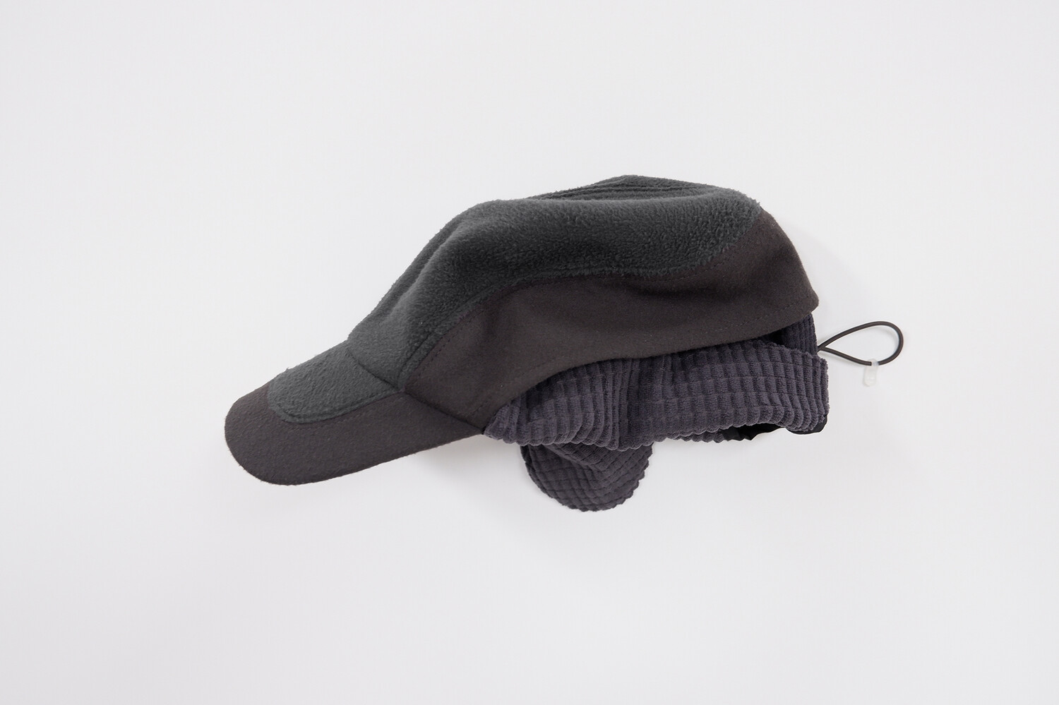 • The earflaps are constructed with small waffle-textured fabric on the exterior and large waffle-textured fabric on the interior, providing dimensional texture, structural stability, and thermal insulation.