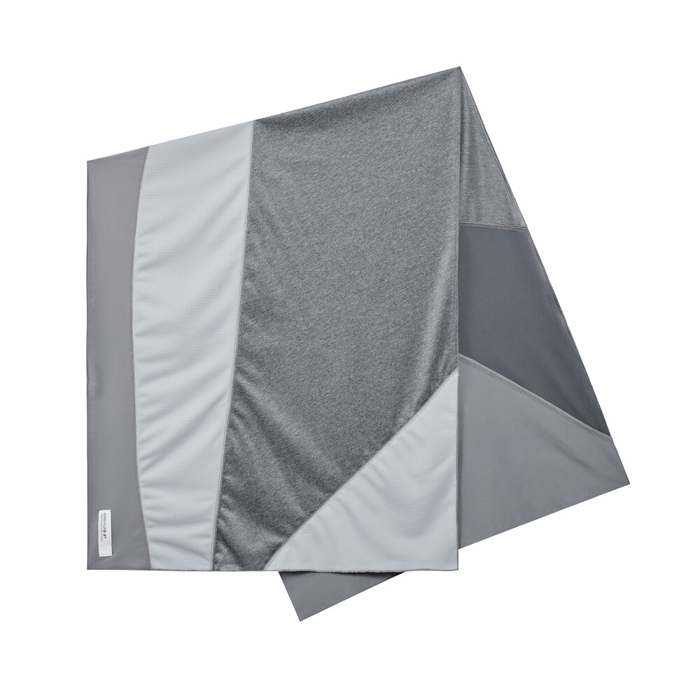 • Multi-utility scarf measuring 150cm width x 60cm length / One Size (OS). • Combines 4 types of functional fabrics to deliver lightweight, flexible wear and versatile styling options like scarf or headwrap. • Features large curved cut across the scarf and multiple small cuts to maximize fabric flexibility, creating an asymmetrical silhouette. • Three accent fabrics placed between cuts create an intentionally irregular look depending on direction and angle, offering different impressions based on wearing style. • Integrates diverse textures from kachion-dyed mesh to check-structured fabric within one piece, forming structural contrast and natural harmony simultaneously. • Uses CREORA AEROCOOL as main fabric, with ATB-UV+, AEROSILVER, and XANADU as accent fabrics to maximize overall functionality. • CREORA AEROCOOL fabric provides moisture-wicking and quick-drying for cool, comfortable wear by rapidly absorbing and evaporating sweat. • ATB-UV+ fabric adds antibacterial, deodorizing functions along with moisture-wicking and UV protection for hygienic, stable use during outdoor activities. • AEROSILVER fabric inhibits bacterial growth and offers moisture-wicking performance, ensuring freshness and odor reduction even during extended wear. • XANADU fabric delivers excellent stretch and soft tension for comfortable fit, maintaining natural shape when wrapped or tied around neck, head, wrists, or other areas.