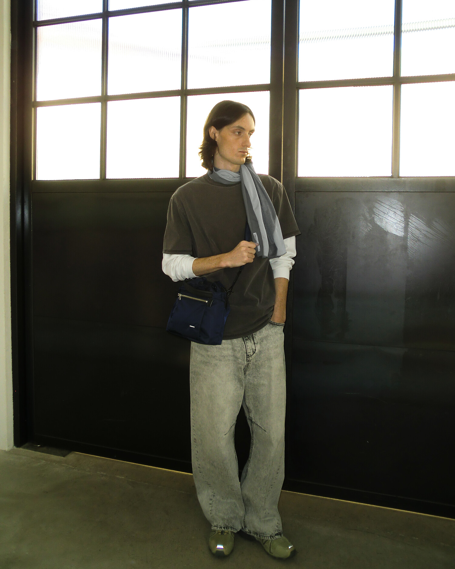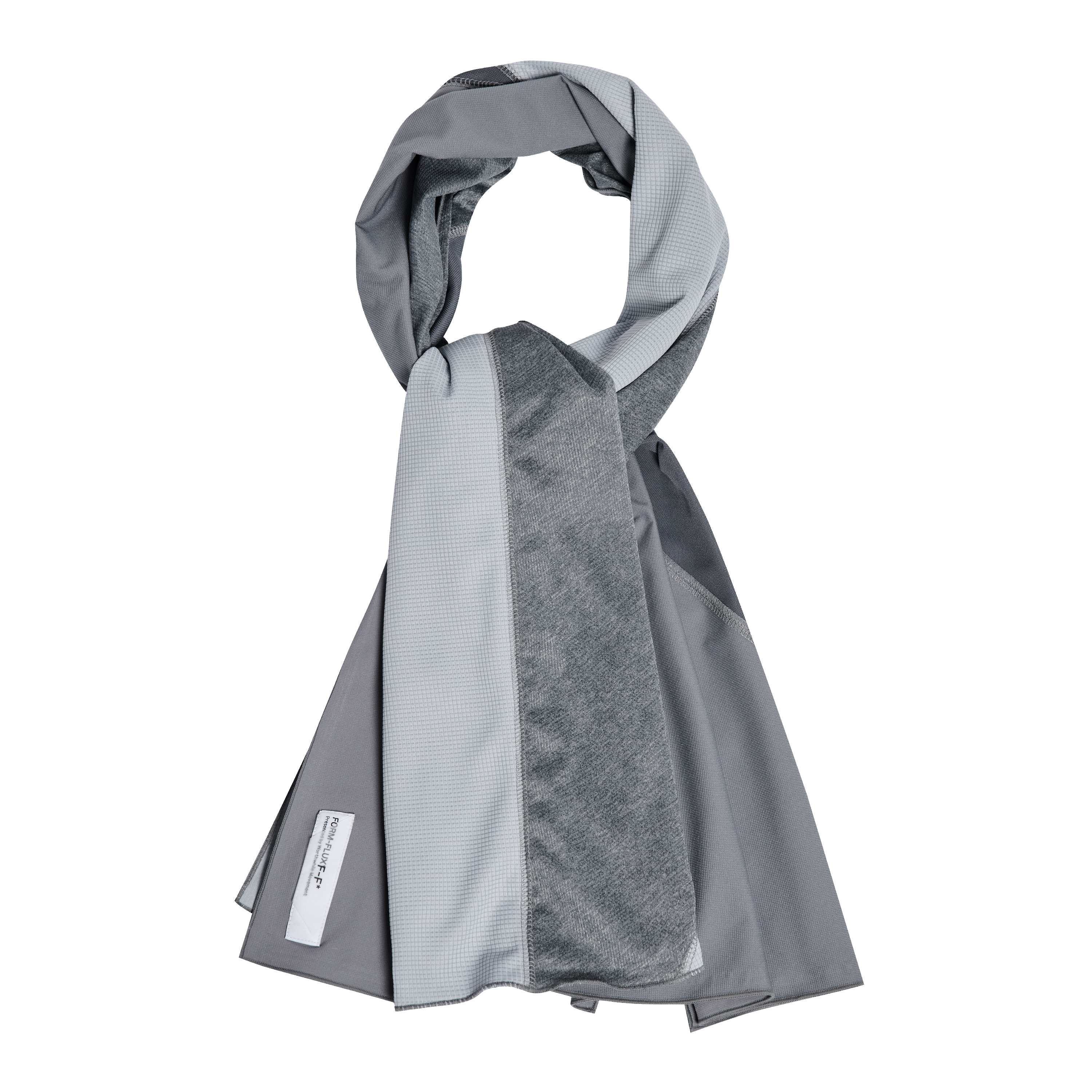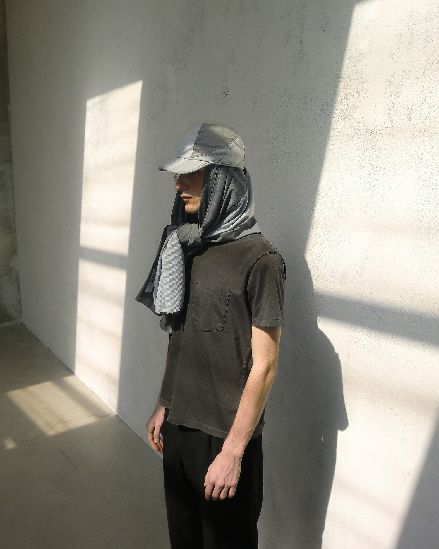 • 가로 150cm X 세로 60cm / 원사이즈(OS) 구성의 멀티 유틸리티 스카프. • 4종류의 기능성 원단을 조합하여 가볍고 유연한 착용감과 스카프·두건 등 다양한 스타일링 활용성 구현. • 스카프를 가로지르는 큰 곡선 절개와 여러 개의 작은 절개로 원단 유연성을 극대화하고, 비대칭 구조로 독특한 실루엣 형성. • 절개 사이에 배치된 3가지 배색 원단이 방향·구도에 따라 불규칙한 룩을 연출해 착용 방식에 따라 다른 인상을 제공. • 카치온 염색 메쉬부터 치크 조직까지 이질적인 텍스처의 원단을 한 제품 안에 구성해 구조적 대비감과 자연스러운 융합감을 동시에 형성. • 메인 원단으로 CREORA AEROCOOL을 사용하고, ATB-UV+, AEROSILVER, XANADU를 배색 원단으로 배치하여 전체적인 기능성을 극대화. • CREORA AEROCOOL 원단이 흡한속건 기능으로 땀을 빠르게 흡수·건조시켜 시원하고 쾌적한 착용감을 제공. • ATB-UV+ 원단이 흡한속건과 더불어 항균·소취 기능 및 UV 차단 기능을 제공해 야외 활동 시 위생적이고 안정적인 사용 환경을 지원. • AEROSILVER 원단이 세균 증식 억제와 흡한속건 성능으로 장시간 착용 시에도 상쾌함과 냄새 감소 효과를 부여. • XANADU 원단이 우수한 신축성과 부드러운 텐션으로 편안한 착용감을 제공하며, 목·머리·손목 등 다양한 부위에 감거나 묶어도 자연스럽게 형태 유지.