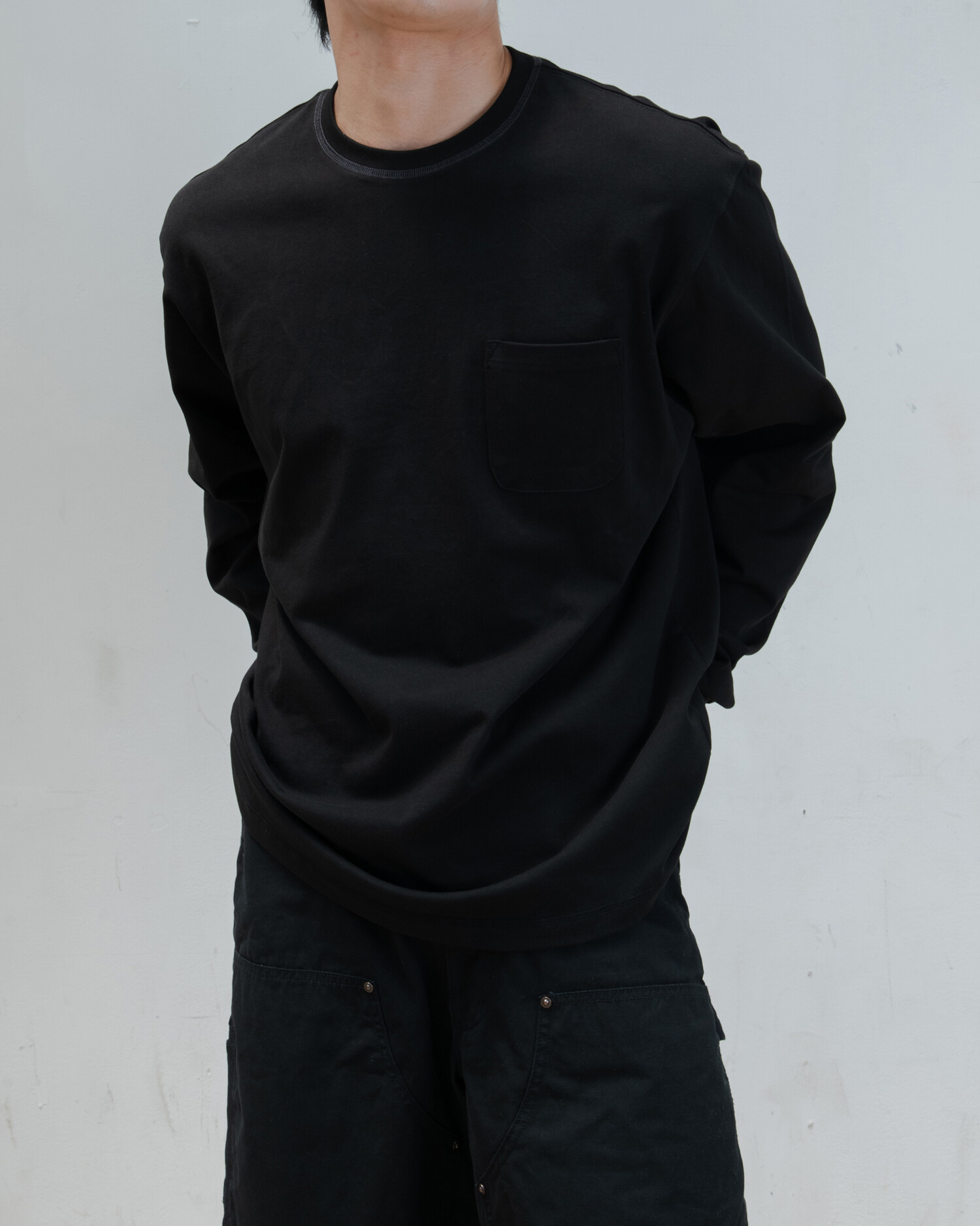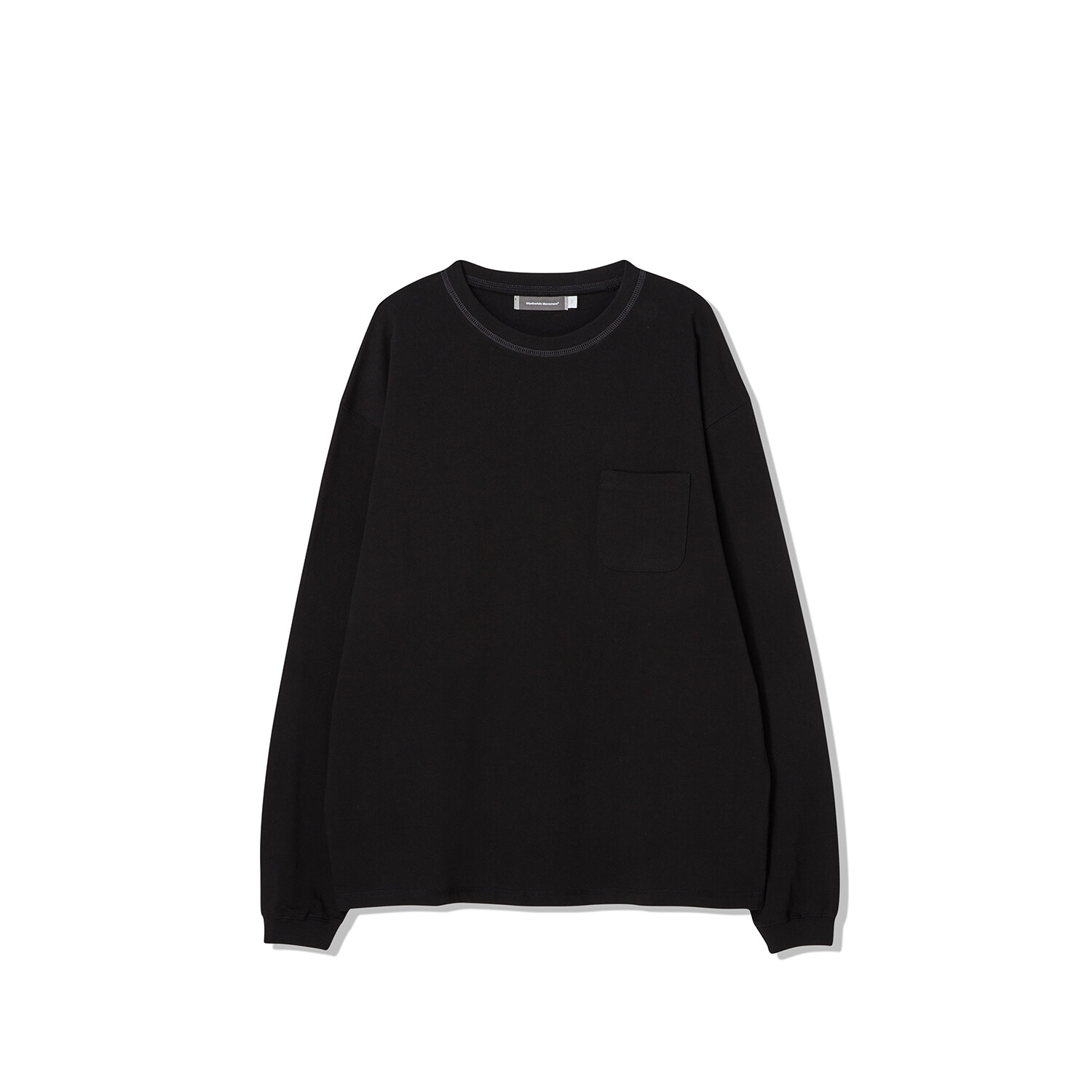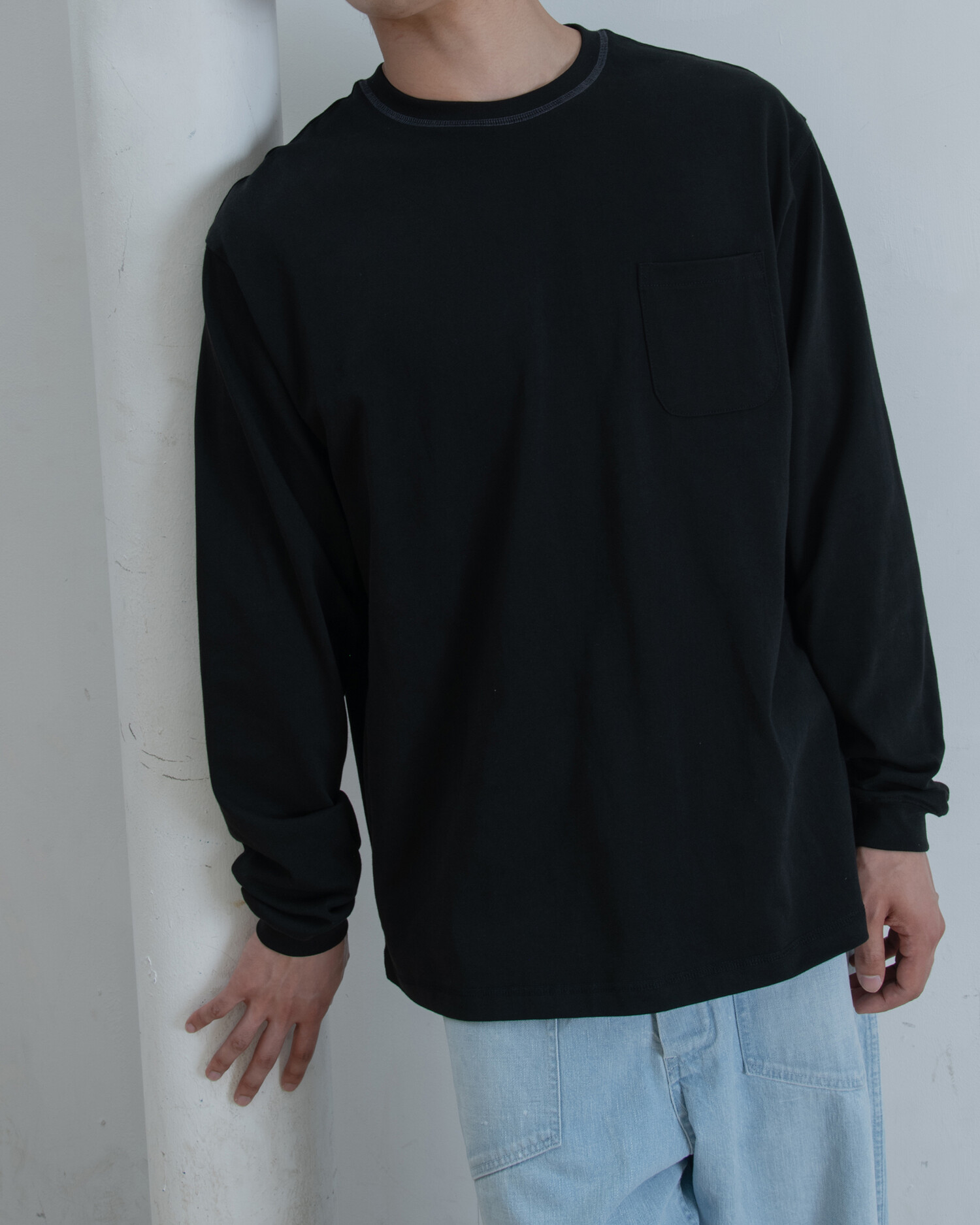 : 캐주얼한 분위기의 롱 슬리브 티셔츠 입니다. 실켓 가공으로 코튼 표면의 잔털을 제거하여 고른 외관과 부드러운 터치를 갖고 있습니다. 30수 2합의 원단으로 비침은 없이 적당히 얇은 원단이어서 사계절 내내 즐겨 입으실 수 있습니다. 넥라인에 있는 배색 3 Needle 5 Thread 커버스티치와 라운드 처리된 포켓이 특징이며, 여유있는 실루엣으로 여름에는 반바지에 연출하거나 봄, 가을에는 가벼운 아우터 이너용으로도 좋습니다. 짧고 탄탄한 소매 리브를 갖고 있으며 라인과 소매 리브 모두 바텍으로 마감하여 완성도 있고 변형이 적도록 제작했습니다.