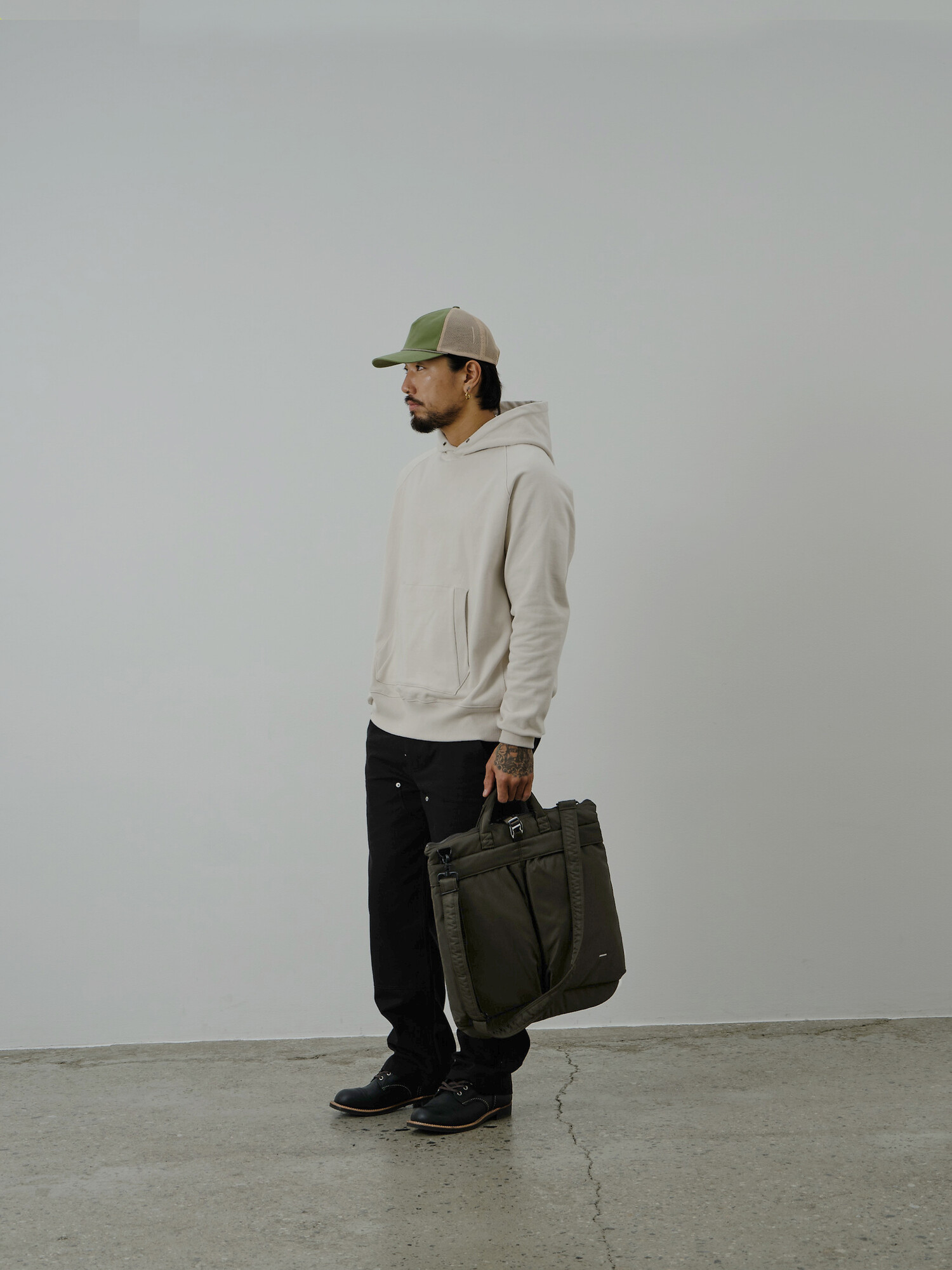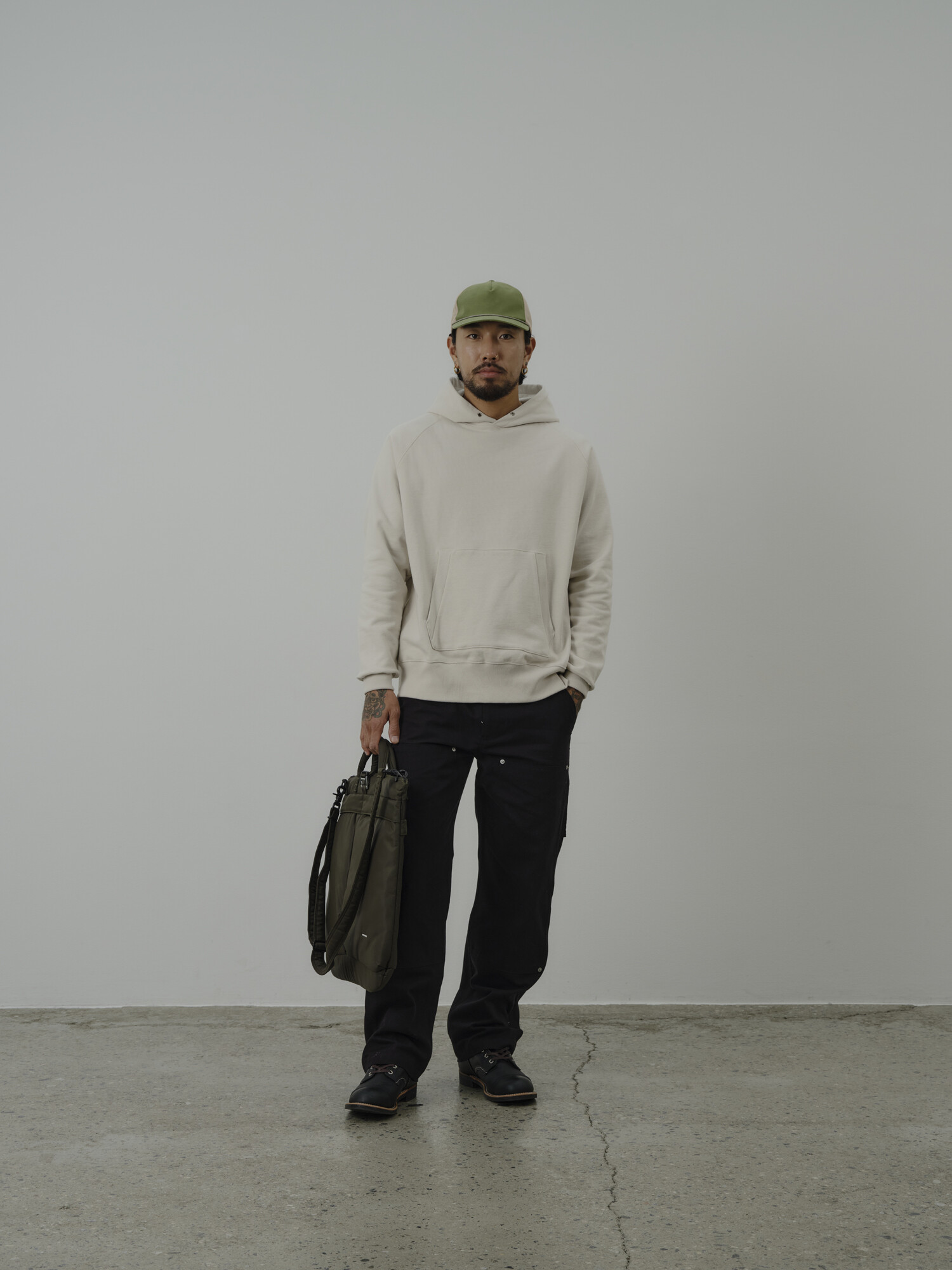 : 마일드 스웻 후디는 일상에서 편하게 그리고 오래 입을 수 있도록 기획된 적당한 두께의 후디드 스웻입니다. 고밀도의 코튼 원단을 워싱하여 수축을 최소화 하고 부드럽게 흘러내리는 래글런 슬리브 패턴을 적용하여 착용감이 우수합니다. 옆 면의 리브 디테일은 적당한 탄력이 있어서 착용시 보다 편하게 느끼실 수 있고 소매 하단까지 이어져 있는 개성있는 특징을 보여줍니다. 포켓의 양 옆 입구도 리브로 마감하여 구조적인 특징을 강조했고 소매 리브와 후드 그리고 포켓 등 곳곳에 바텍으로 꼼꼼하게 마감한 제품입니다.
