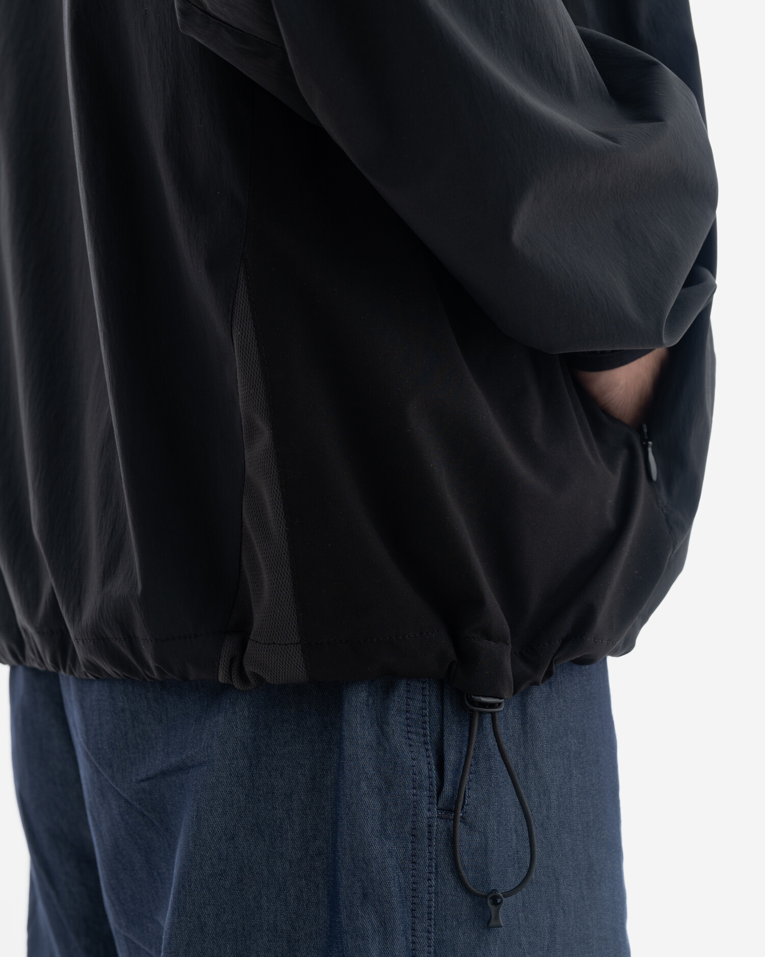 : 스판덱스가 포함된 부드러운 경량 나일론 원단과 고신축사 립스탑 원단을 조화롭게 배치하여 스포티한 분위기의 나일론 풀오버를 완성했습니다. 구조적인 특징을 강조한 패턴과 원단 구성 그리고 쾌적한 착용감을 위한 휴비스 사의 쿨에버 메쉬원단 사용으로 아웃도어 및 스포츠 활동 뿐 아니라 일상생활에서도 다채롭게 활용하시기 좋습니다. 여유로운 실루엣의 제품이지만 하단의 스트링과 스토퍼로 기장감을 자유롭게 조절해주시고, 소매 끝 웜홀과 콘솔 지퍼를 활용한 포켓까지 이 제품이 갖고 있는 디테일한 부분에서 차이점을 확인하시고 즐겨주시기 바랍니다.