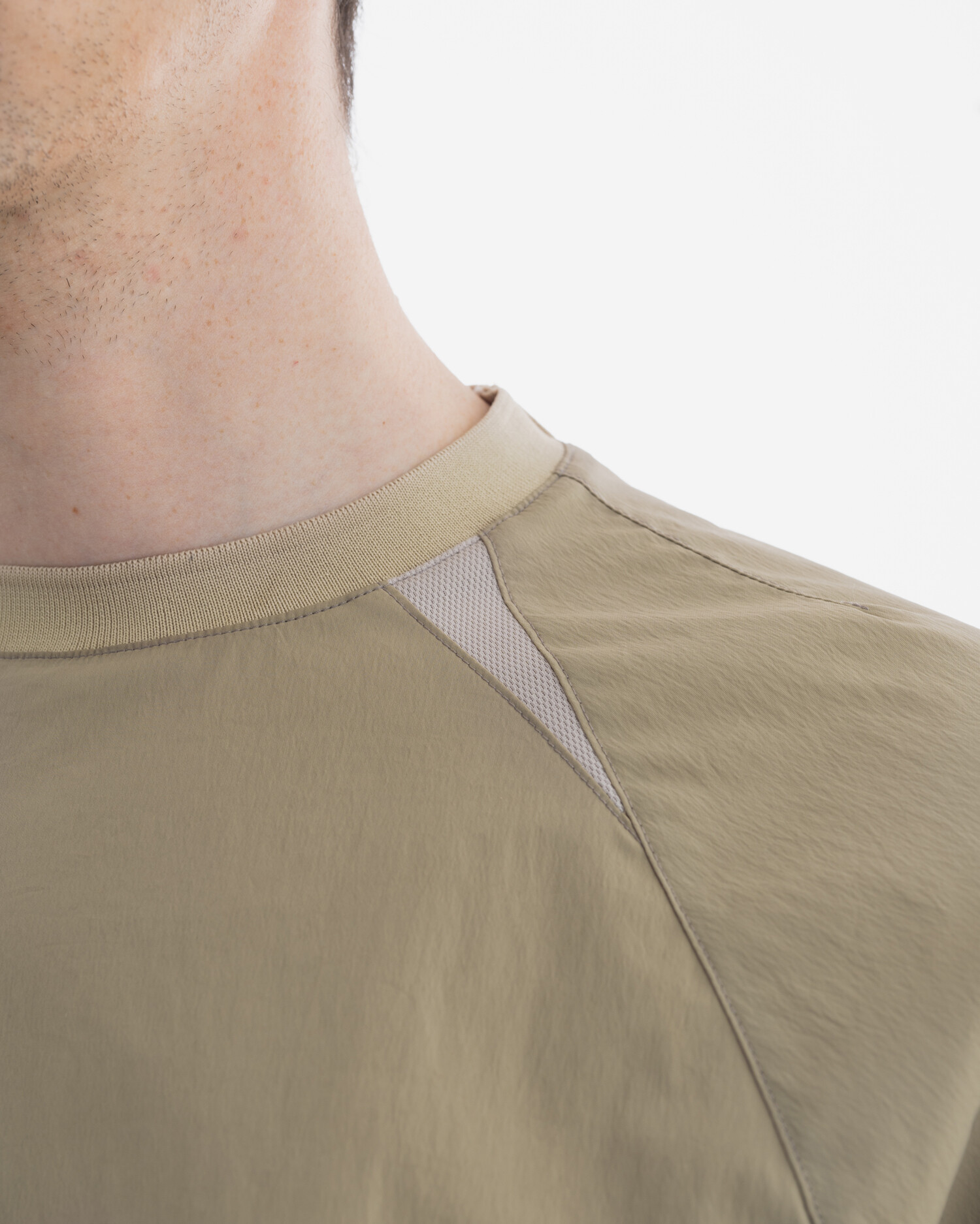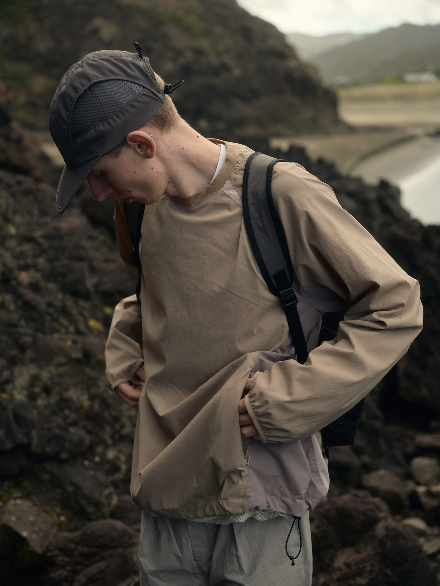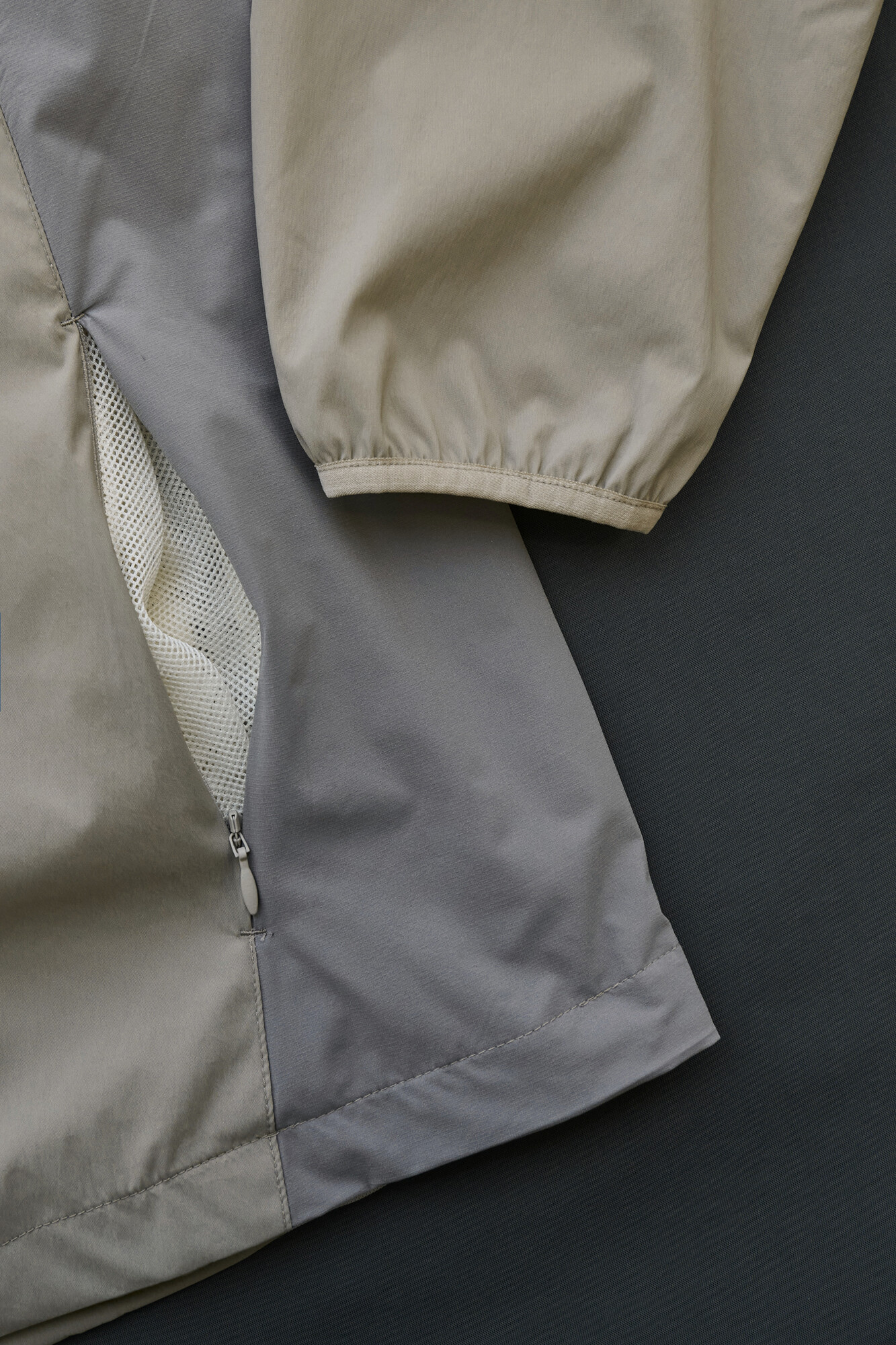 : 스판덱스가 포함된 부드러운 경량 나일론 원단과 고신축사 립스탑 원단을 조화롭게 배치하여 스포티한 분위기의 나일론 풀오버를 완성했습니다. 구조적인 특징을 강조한 패턴과 원단 구성 그리고 쾌적한 착용감을 위한 휴비스 사의 쿨에버 메쉬원단 사용으로 아웃도어 및 스포츠 활동 뿐 아니라 일상생활에서도 다채롭게 활용하시기 좋습니다. 여유로운 실루엣의 제품이지만 하단의 스트링과 스토퍼로 기장감을 자유롭게 조절해주시고, 소매 끝 웜홀과 콘솔 지퍼를 활용한 포켓까지 이 제품이 갖고 있는 디테일한 부분에서 차이점을 확인하시고 즐겨주시기 바랍니다.