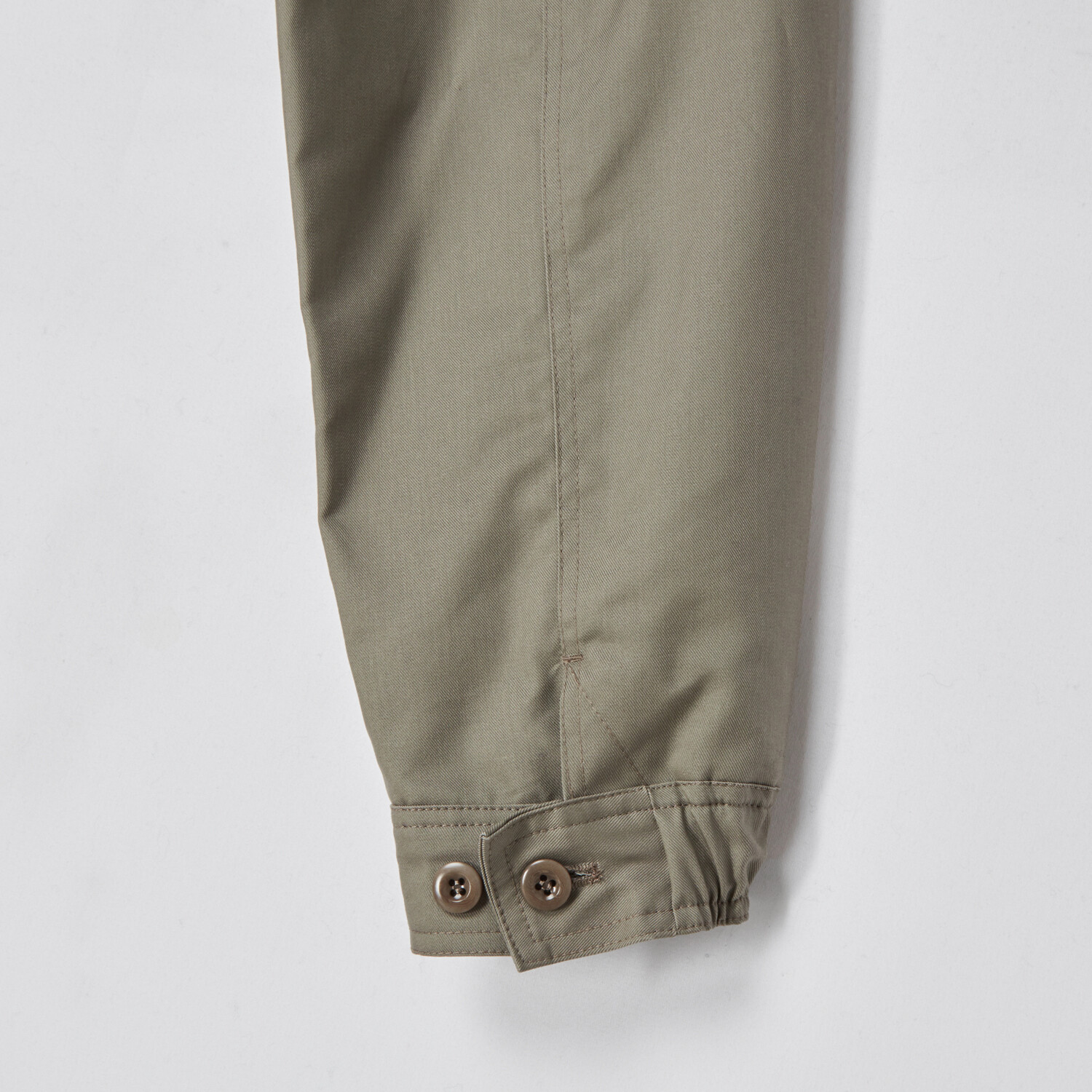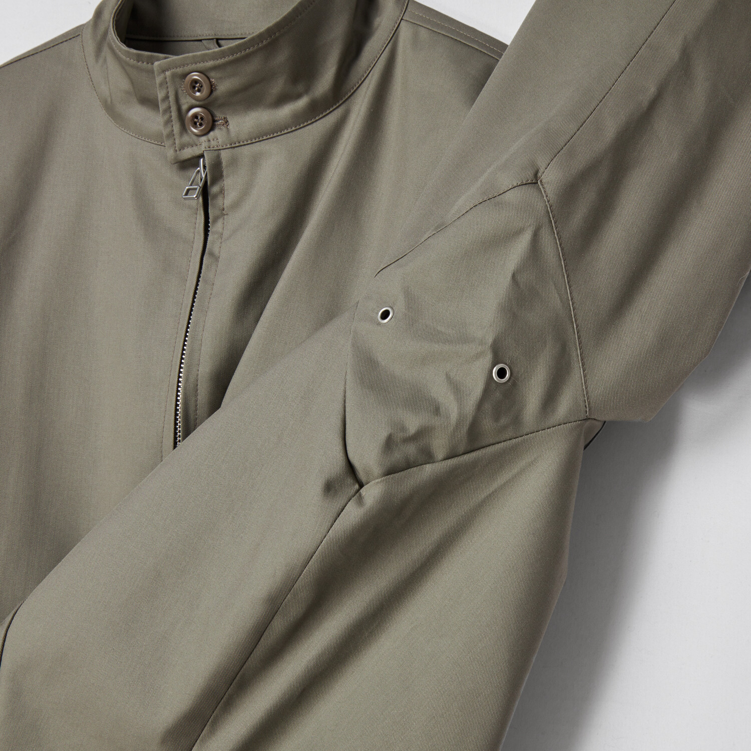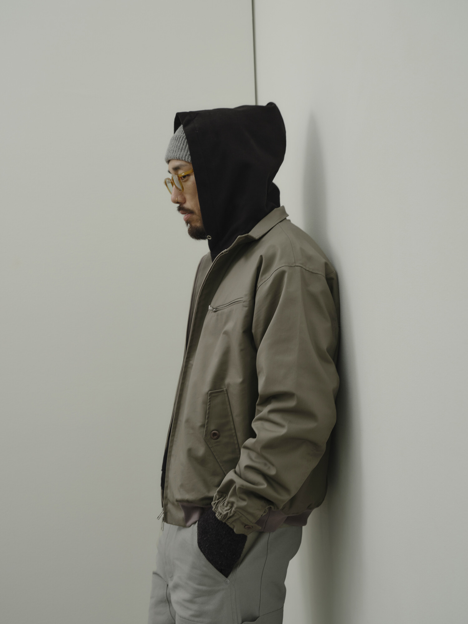 : 클래식한 해링턴 재킷을 모던한 분위기와 편의성을 고려한 패턴 및 디테일을 추가하여 재해석했습니다. 적당한 기장감과 여유로운 실루엣으로 구성했으며 암홀에는 가젯 크로치 패턴을 적용해 팔을 들거나 활동적인 환경에서도 불편함이 적도록 했습니다. 가슴에는 빈티지 재킷에서 착안한 작은 사선 포켓이 있어 작은 소지품을 넣을 수 있습니다. 또한 본 제품의 주요한 특징 중 하나인 밑단의 립 양 측면에는 과감하한 라인으로 절개를 넣어서 리브의 디자인을 새롭게 표현했습니다. 후면부 요크는 2중 레이어 구조로 만들고 중앙 부분을 스티치 고정하여 착용시 입체감 있는 실루엣으로 표현되어 측면에서 보았을 때 모습이 굉장히 세련되게 나타납니다. 원단은 코튼과 리오셀이 혼방된 겉감과 쿨에버 기능성 안감을 사용했습니다. 리오셀은 친환경 섬유로 뛰어난 흡습성과 향균성 그리고 부드러운 촉감과 통기성이 좋은 특징이 있고, 쿨에버 라이너도 흡습, 속건의 쾌적한 원단으로 굉장히 포근한 착용감과 섬세한 터치감을 느낄 수 있습니다. 비교적 터프한 외형이지만 사용자의 편의성을 고려한 패턴과 세밀한 디테일 및 원단 구성으로 오래동안 입을 수 있는 재킷을 완성했습니다.