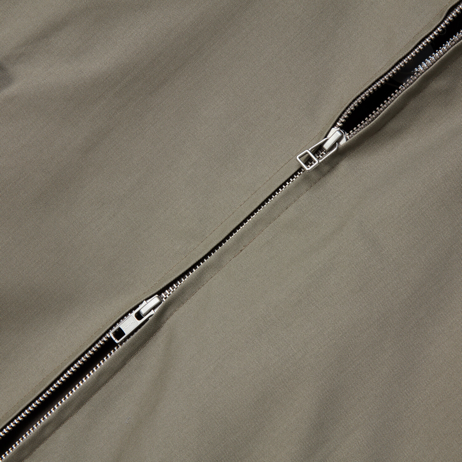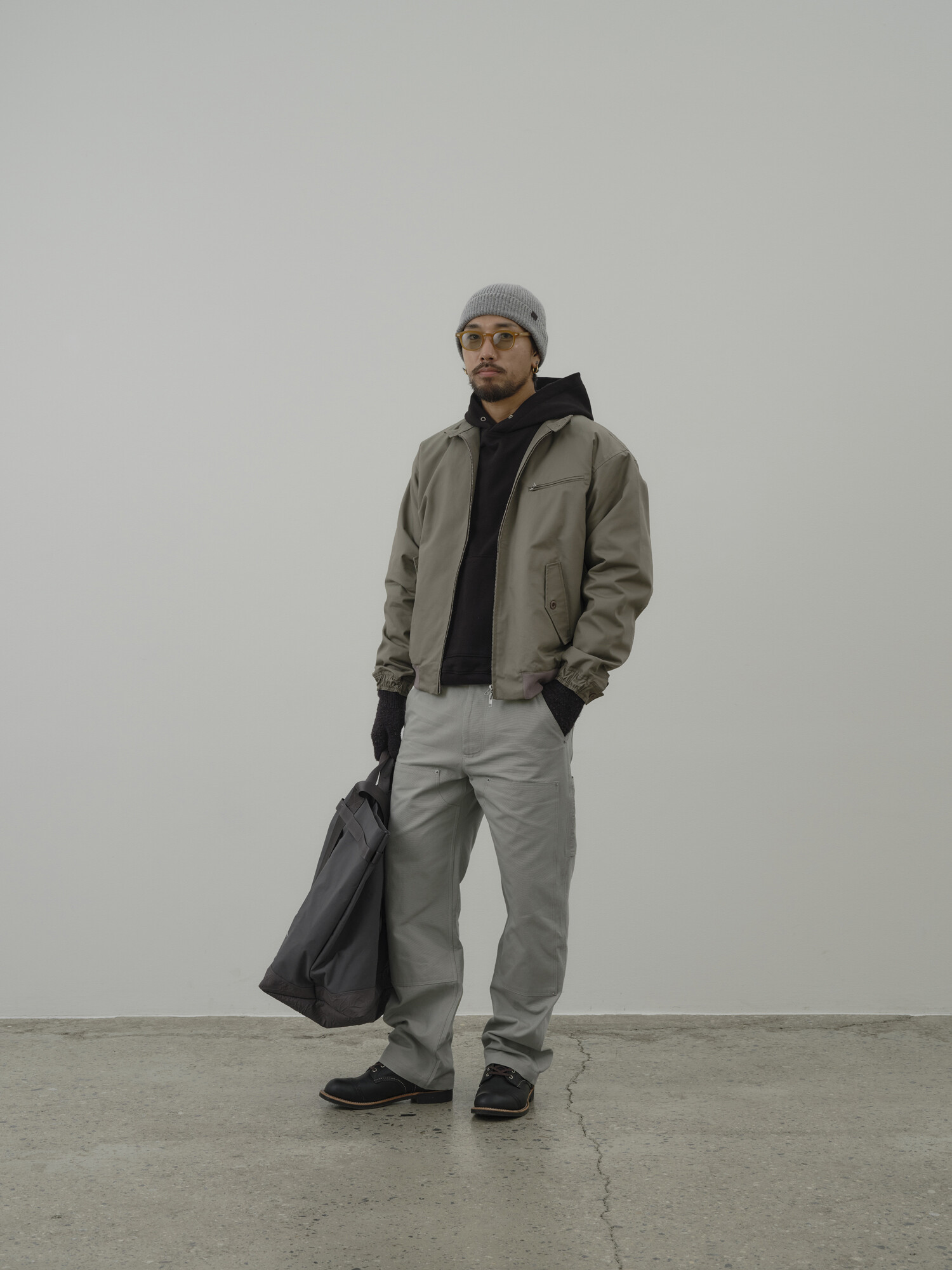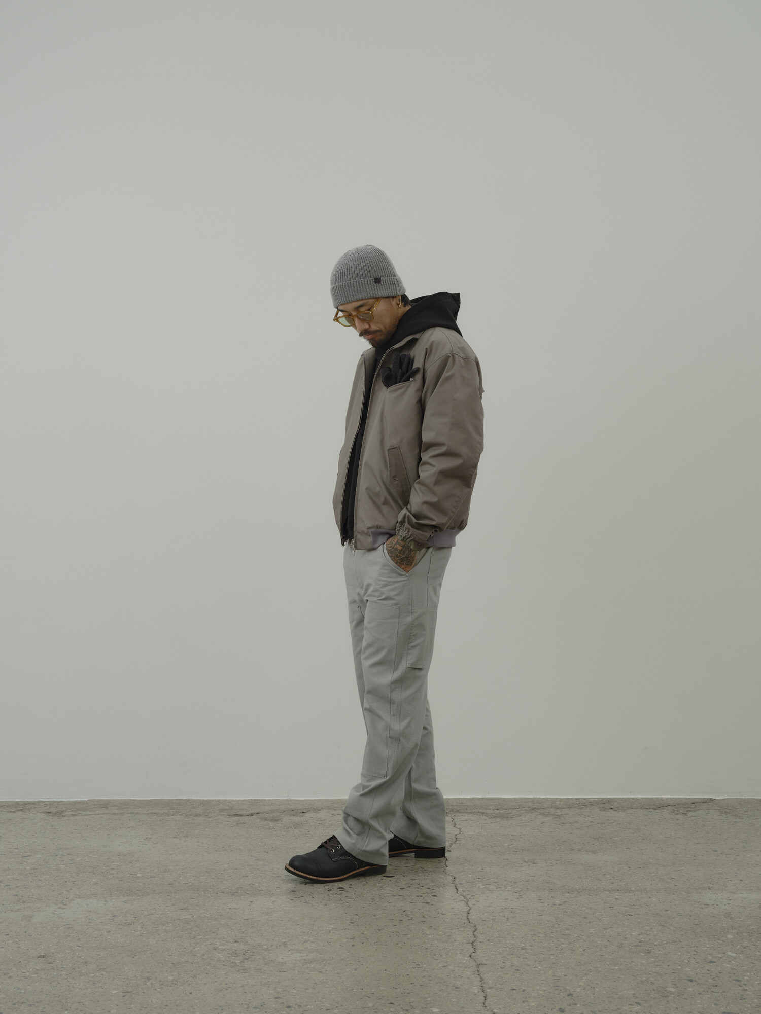 : 클래식한 해링턴 재킷을 모던한 분위기와 편의성을 고려한 패턴 및 디테일을 추가하여 재해석했습니다. 적당한 기장감과 여유로운 실루엣으로 구성했으며 암홀에는 가젯 크로치 패턴을 적용해 팔을 들거나 활동적인 환경에서도 불편함이 적도록 했습니다. 가슴에는 빈티지 재킷에서 착안한 작은 사선 포켓이 있어 작은 소지품을 넣을 수 있습니다. 또한 본 제품의 주요한 특징 중 하나인 밑단의 립 양 측면에는 과감하한 라인으로 절개를 넣어서 리브의 디자인을 새롭게 표현했습니다. 후면부 요크는 2중 레이어 구조로 만들고 중앙 부분을 스티치 고정하여 착용시 입체감 있는 실루엣으로 표현되어 측면에서 보았을 때 모습이 굉장히 세련되게 나타납니다. 원단은 코튼과 리오셀이 혼방된 겉감과 쿨에버 기능성 안감을 사용했습니다. 리오셀은 친환경 섬유로 뛰어난 흡습성과 향균성 그리고 부드러운 촉감과 통기성이 좋은 특징이 있고, 쿨에버 라이너도 흡습, 속건의 쾌적한 원단으로 굉장히 포근한 착용감과 섬세한 터치감을 느낄 수 있습니다. 비교적 터프한 외형이지만 사용자의 편의성을 고려한 패턴과 세밀한 디테일 및 원단 구성으로 오래동안 입을 수 있는 재킷을 완성했습니다.