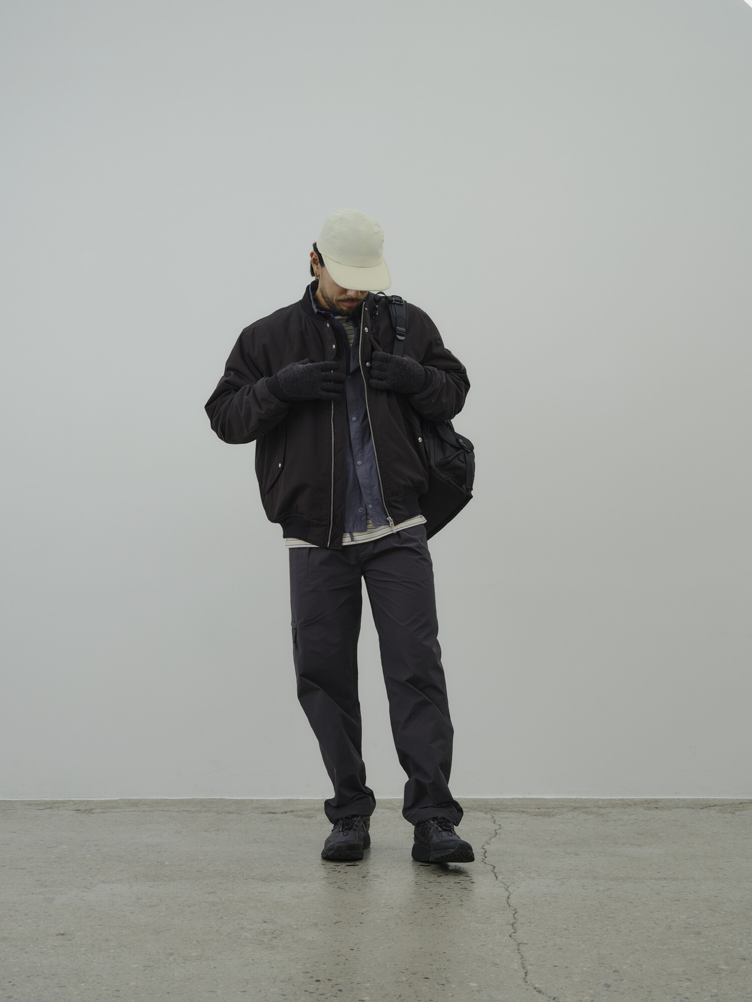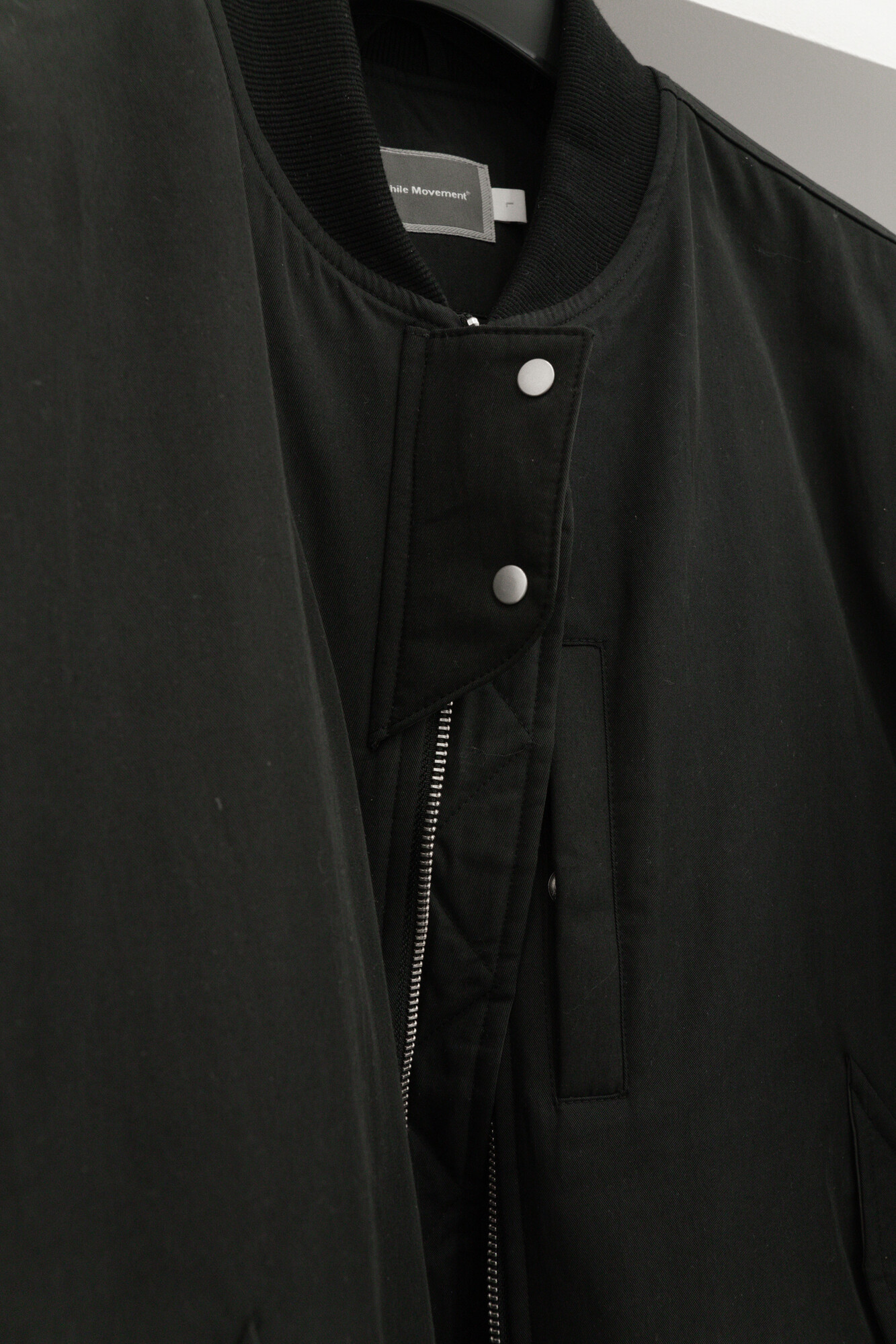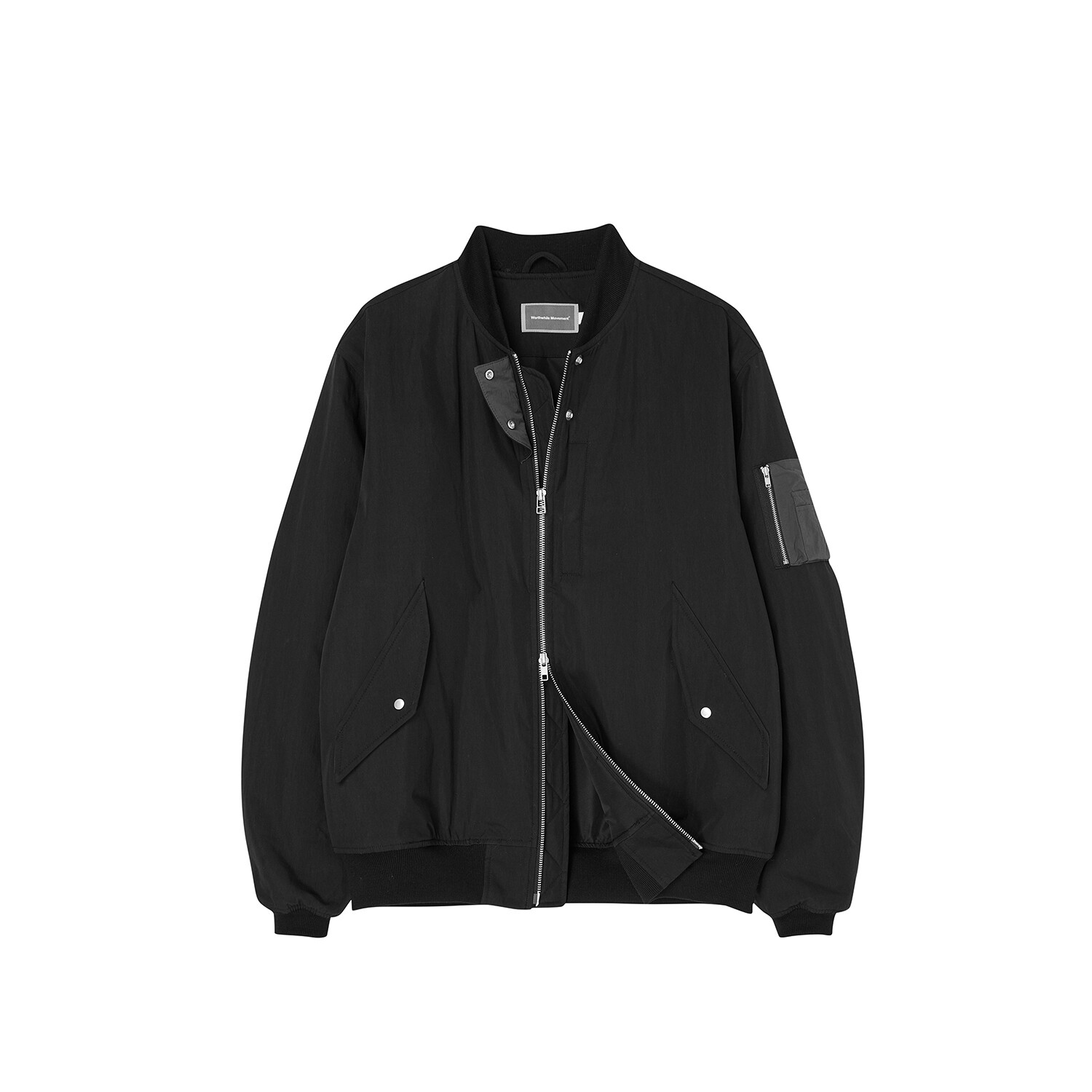 : 공군의 80년대 MA-1 자켓 오리지널을 베이스로 월스와일 무브먼트만의 구조적인 디테일 변형과 원단 조합을 통해 현대적인 플라이트 자켓을 구현했습니다. 많이 볼 수 있는 광택감이 있는 나일론 패브릭 대신 바이오 워싱된 나일론, 코튼 혼방 원단을 사용하여 원단의 부드러운 질감과 빈티지한 루킹이 매력적입니다. 좌측 소매의 포켓과 몸 판 포켓의 플랩 안단 등에는 나일론 소재의 원단을 배치하여 보이지 않는 곳 까지 세심하게 마감하여 통일된 분위기를 전달합니다. 3M 신슐레이트 충전재를 사용하여 가볍고 보온성이 우수하며 관리가 용이합니다. 착용시 인체의 구조를 고려한 소매의 굴곡진 패턴과 플리츠, 그리고 등판쪽 다트를 통해 편안한 피팅감을 부여하며 넉넉한 품과 적당한 기장감의 제품으로 가을부터 겨울까지 활용하시기 좋습니다.