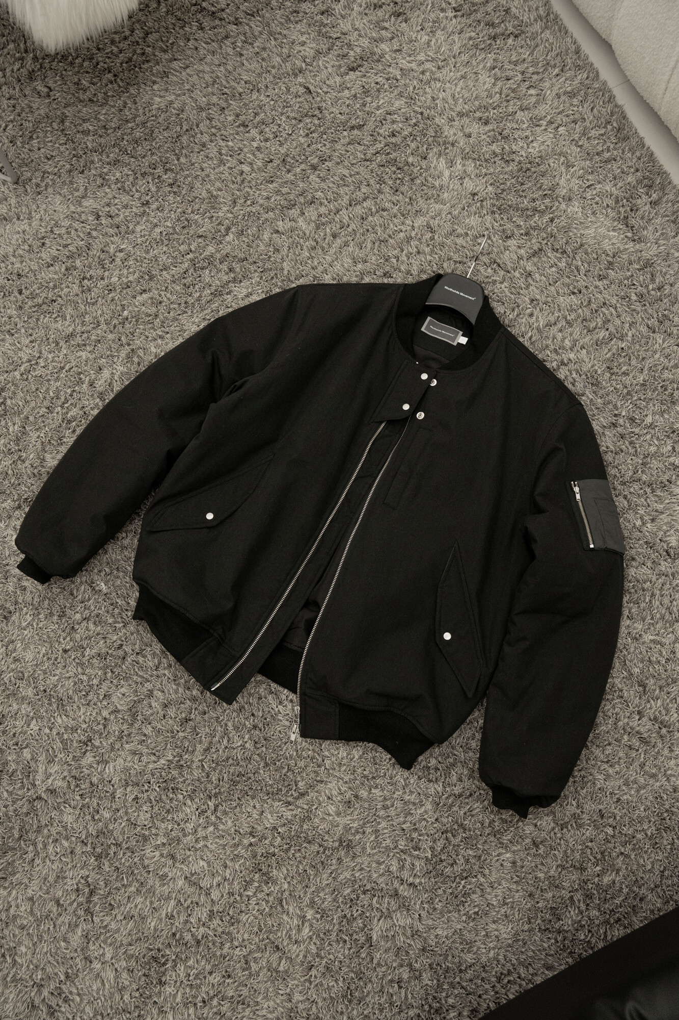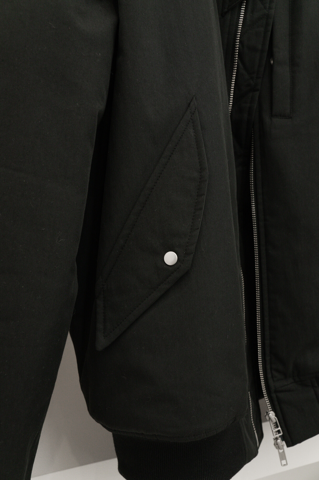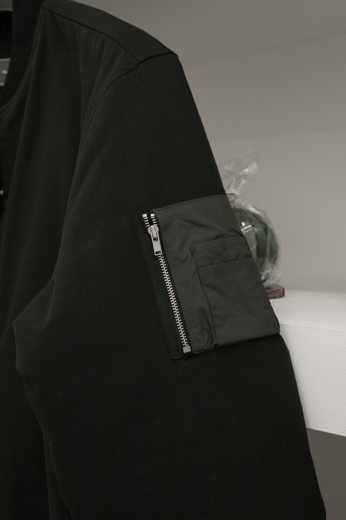 : 공군의 80년대 MA-1 자켓 오리지널을 베이스로 월스와일 무브먼트만의 구조적인 디테일 변형과 원단 조합을 통해 현대적인 플라이트 자켓을 구현했습니다. 많이 볼 수 있는 광택감이 있는 나일론 패브릭 대신 바이오 워싱된 나일론, 코튼 혼방 원단을 사용하여 원단의 부드러운 질감과 빈티지한 루킹이 매력적입니다. 좌측 소매의 포켓과 몸 판 포켓의 플랩 안단 등에는 나일론 소재의 원단을 배치하여 보이지 않는 곳 까지 세심하게 마감하여 통일된 분위기를 전달합니다. 3M 신슐레이트 충전재를 사용하여 가볍고 보온성이 우수하며 관리가 용이합니다. 착용시 인체의 구조를 고려한 소매의 굴곡진 패턴과 플리츠, 그리고 등판쪽 다트를 통해 편안한 피팅감을 부여하며 넉넉한 품과 적당한 기장감의 제품으로 가을부터 겨울까지 활용하시기 좋습니다.