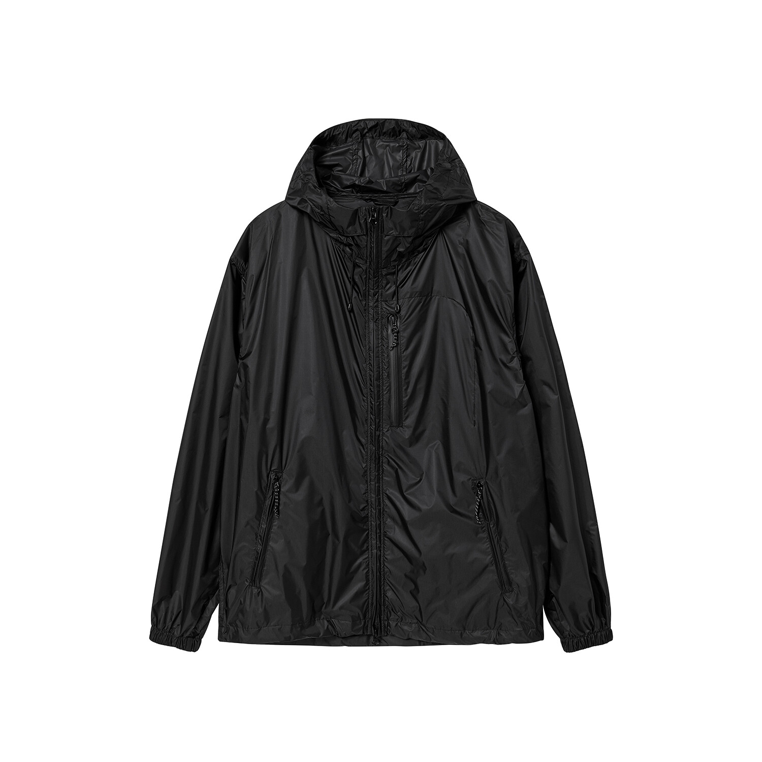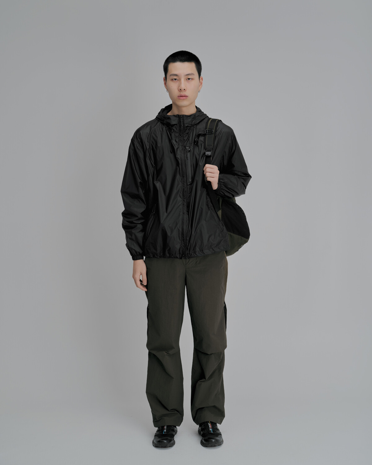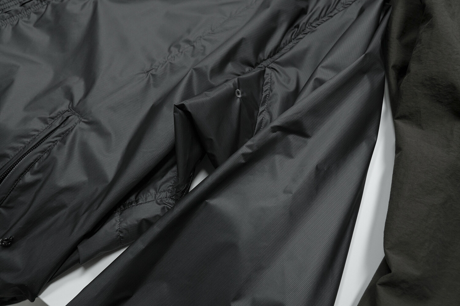 : 이 윈드브레이커는 초경량 소재와 뛰어난 기능성을 갖춘 제품으로, 다양한 환경에서도 최적의 퍼포먼스를 제공합니다. 530T Ripstop 나일론 원단에 멤브레인 코팅을 적용하였고 초경량(65g/yd²) 소재로 제작되어 가볍지만 내구성이 뛰어납니다. 이러한 장점들로 인해 일상생활 뿐 아니라 아웃도어 활동에서도 착용하시기 좋습니다. 통솔 봉제 방식으로 고급스러운 마감을 적용했으며, 암홀 거젯 디테일을 추가해 활동성을 높였습니다. 후드 사이즈 조절 기능 + 히든 스토퍼 & 바텍 디테일을 적용해 실용성을 극대화했고 투웨이 지퍼 적용으로 기능성을 향상시키는 동시에, 후면 패커블 기능을 통해 휴대성을 높였습니다. 본 제품은 방수, 방풍, 발수력에 큰 장점이 있지만 코팅된 원단이기 때문에 사용 환경에 따라 적절한 이너웨어와 함께 착용하는 것을 추천합니다.