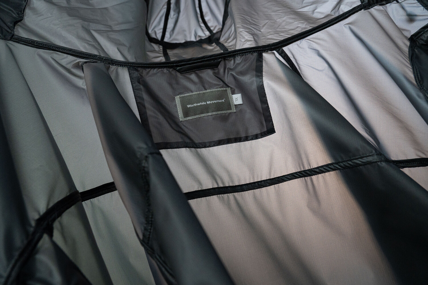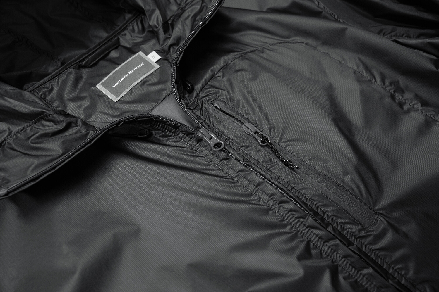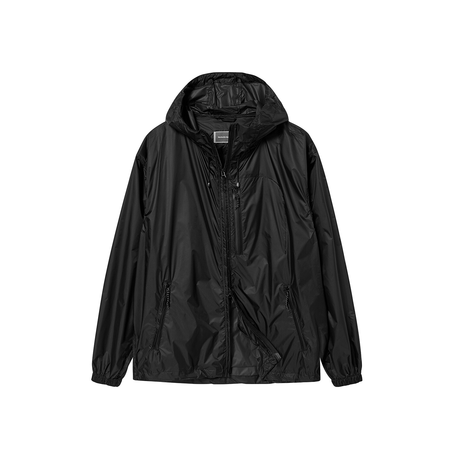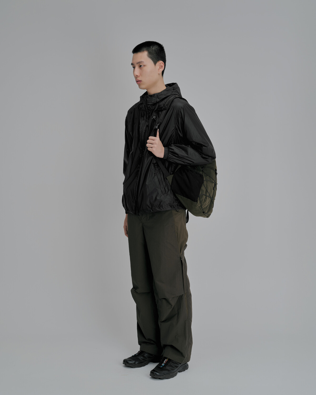 : 이 윈드브레이커는 초경량 소재와 뛰어난 기능성을 갖춘 제품으로, 다양한 환경에서도 최적의 퍼포먼스를 제공합니다. 530T Ripstop 나일론 원단에 멤브레인 코팅을 적용하였고 초경량(65g/yd²) 소재로 제작되어 가볍지만 내구성이 뛰어납니다. 이러한 장점들로 인해 일상생활 뿐 아니라 아웃도어 활동에서도 착용하시기 좋습니다. 통솔 봉제 방식으로 고급스러운 마감을 적용했으며, 암홀 거젯 디테일을 추가해 활동성을 높였습니다. 후드 사이즈 조절 기능 + 히든 스토퍼 & 바텍 디테일을 적용해 실용성을 극대화했고 투웨이 지퍼 적용으로 기능성을 향상시키는 동시에, 후면 패커블 기능을 통해 휴대성을 높였습니다. 본 제품은 방수, 방풍, 발수력에 큰 장점이 있지만 코팅된 원단이기 때문에 사용 환경에 따라 적절한 이너웨어와 함께 착용하는 것을 추천합니다.