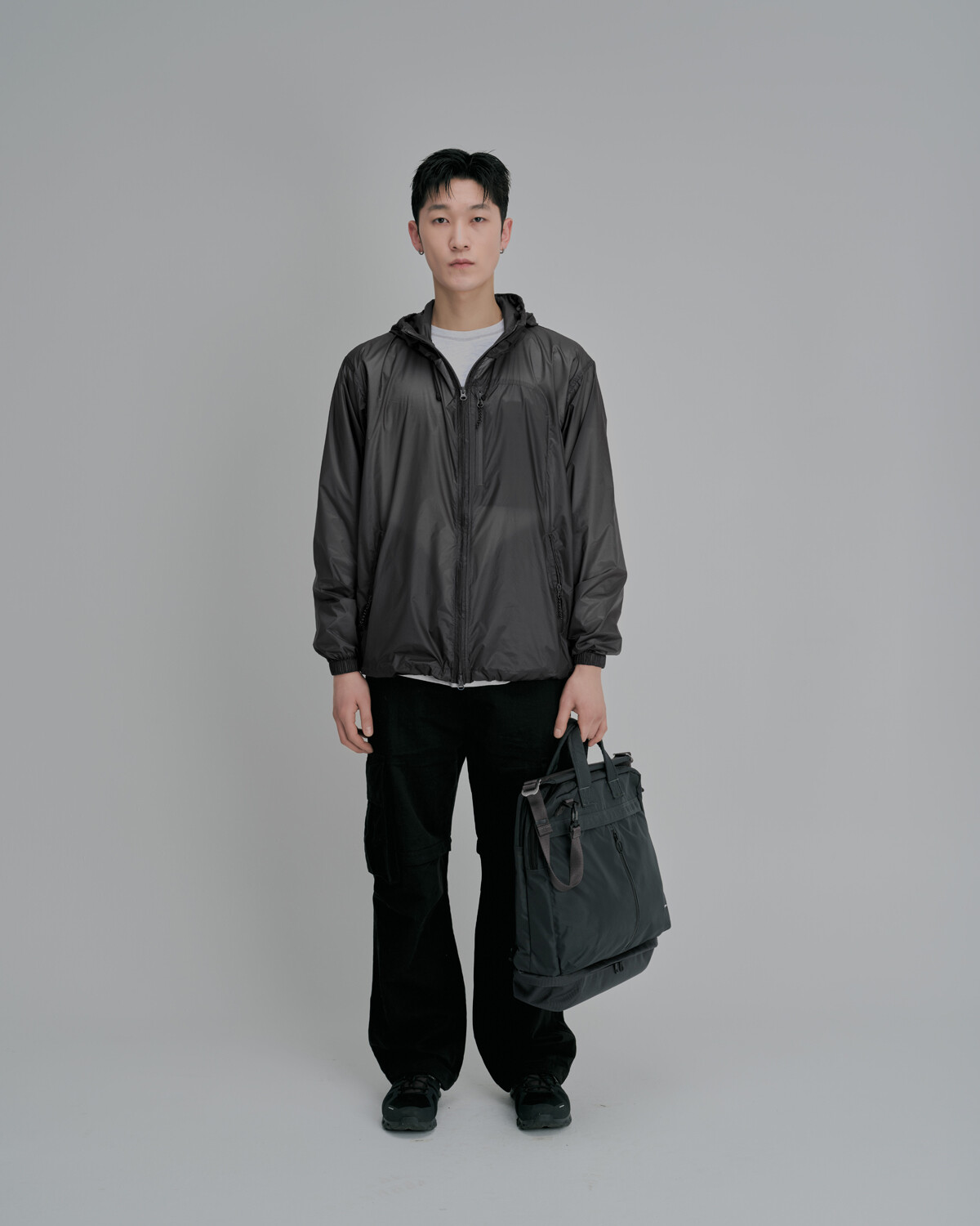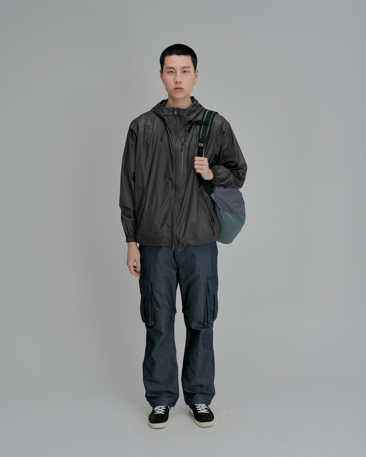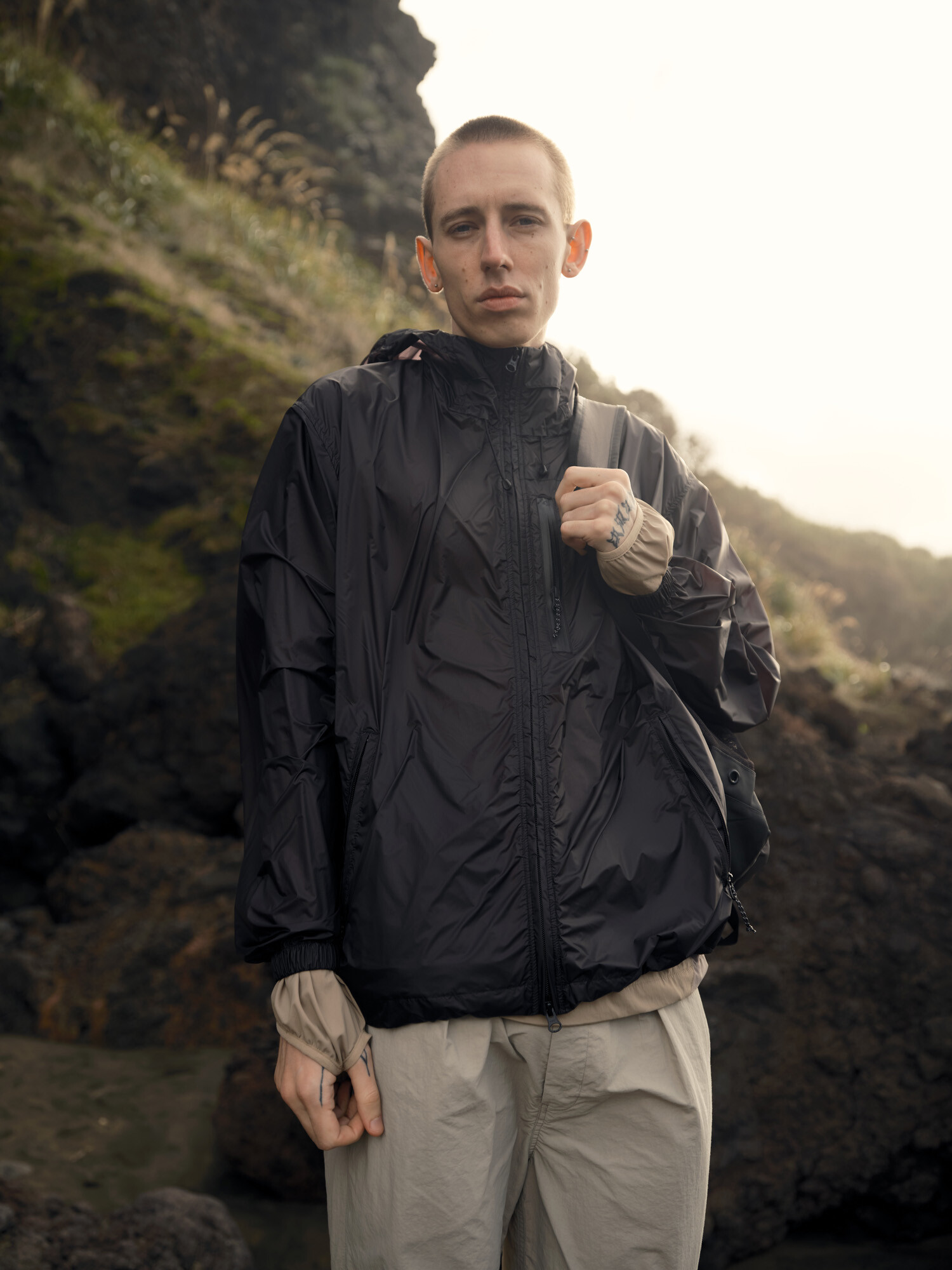: 이 윈드브레이커는 초경량 소재와 뛰어난 기능성을 갖춘 제품으로, 다양한 환경에서도 최적의 퍼포먼스를 제공합니다. 530T Ripstop 나일론 원단에 멤브레인 코팅을 적용하였고 초경량(65g/yd²) 소재로 제작되어 가볍지만 내구성이 뛰어납니다. 이러한 장점들로 인해 일상생활 뿐 아니라 아웃도어 활동에서도 착용하시기 좋습니다. 통솔 봉제 방식으로 고급스러운 마감을 적용했으며, 암홀 거젯 디테일을 추가해 활동성을 높였습니다. 후드 사이즈 조절 기능 + 히든 스토퍼 & 바텍 디테일을 적용해 실용성을 극대화했고 투웨이 지퍼 적용으로 기능성을 향상시키는 동시에, 후면 패커블 기능을 통해 휴대성을 높였습니다. 본 제품은 방수, 방풍, 발수력에 큰 장점이 있지만 코팅된 원단이기 때문에 사용 환경에 따라 적절한 이너웨어와 함께 착용하는 것을 추천합니다.