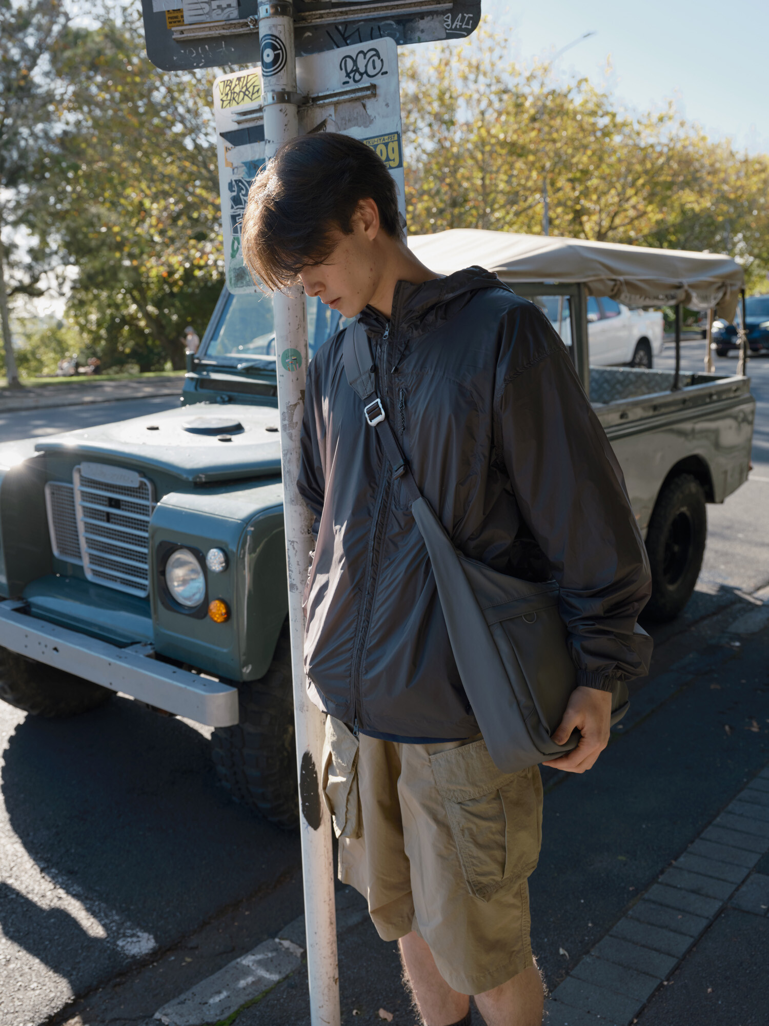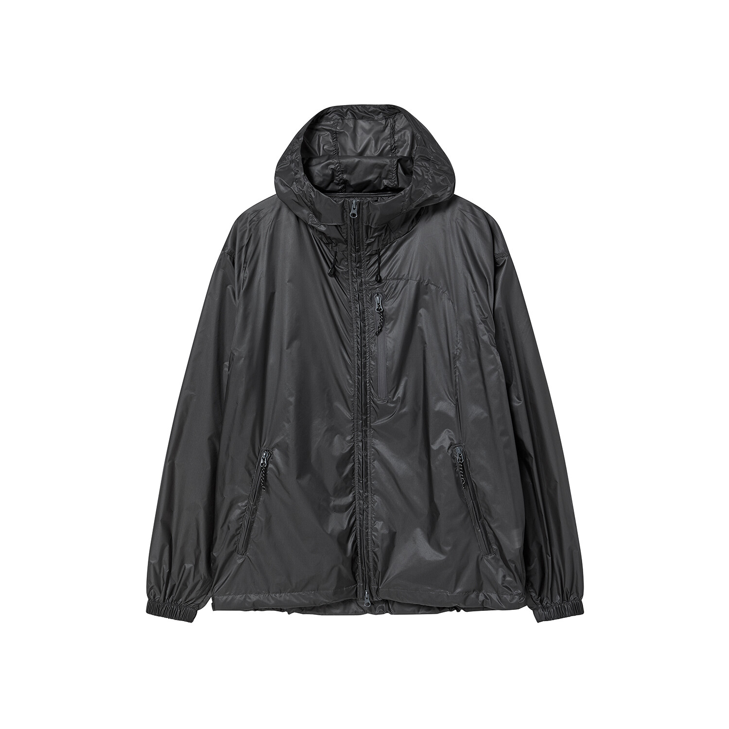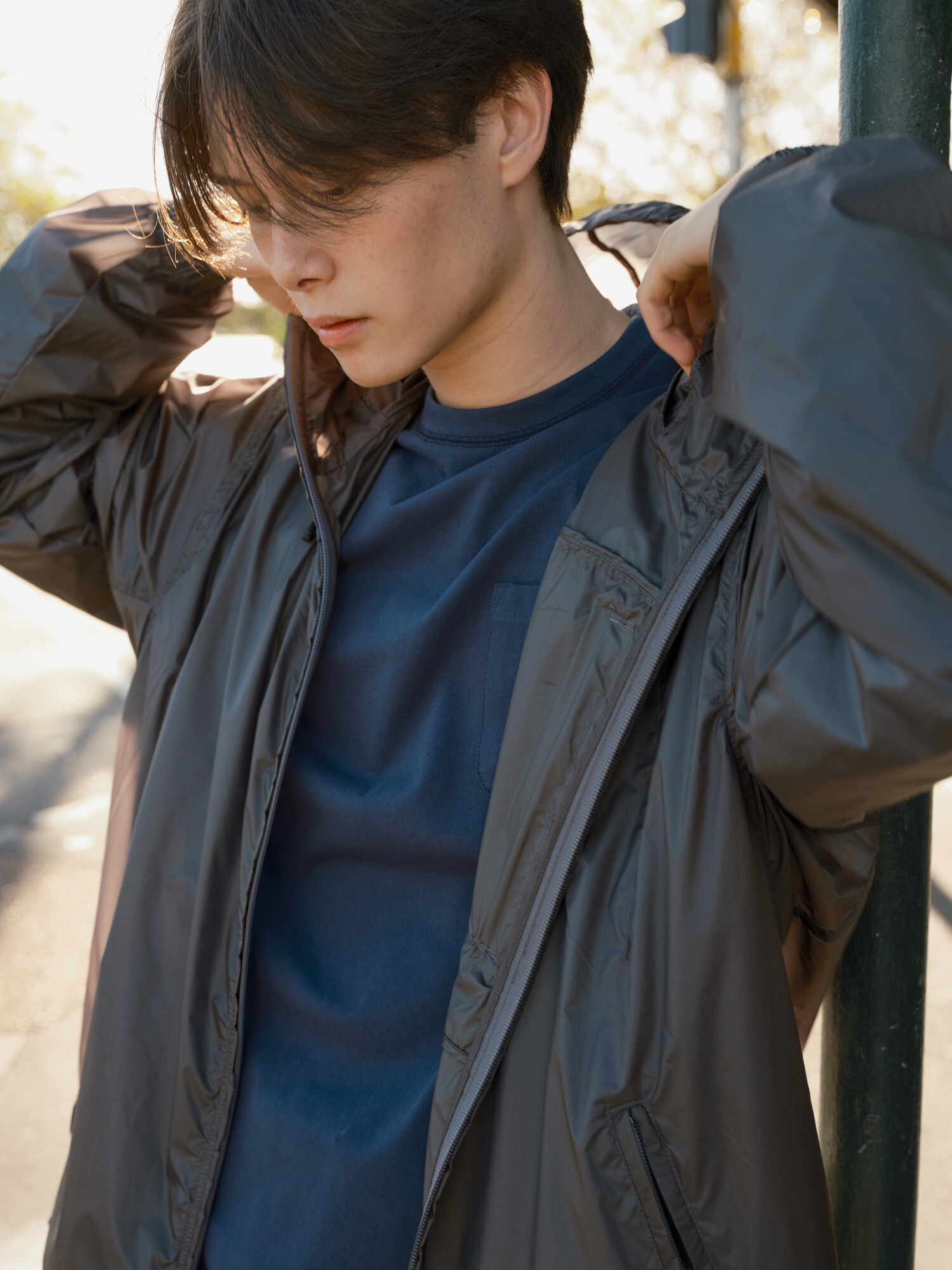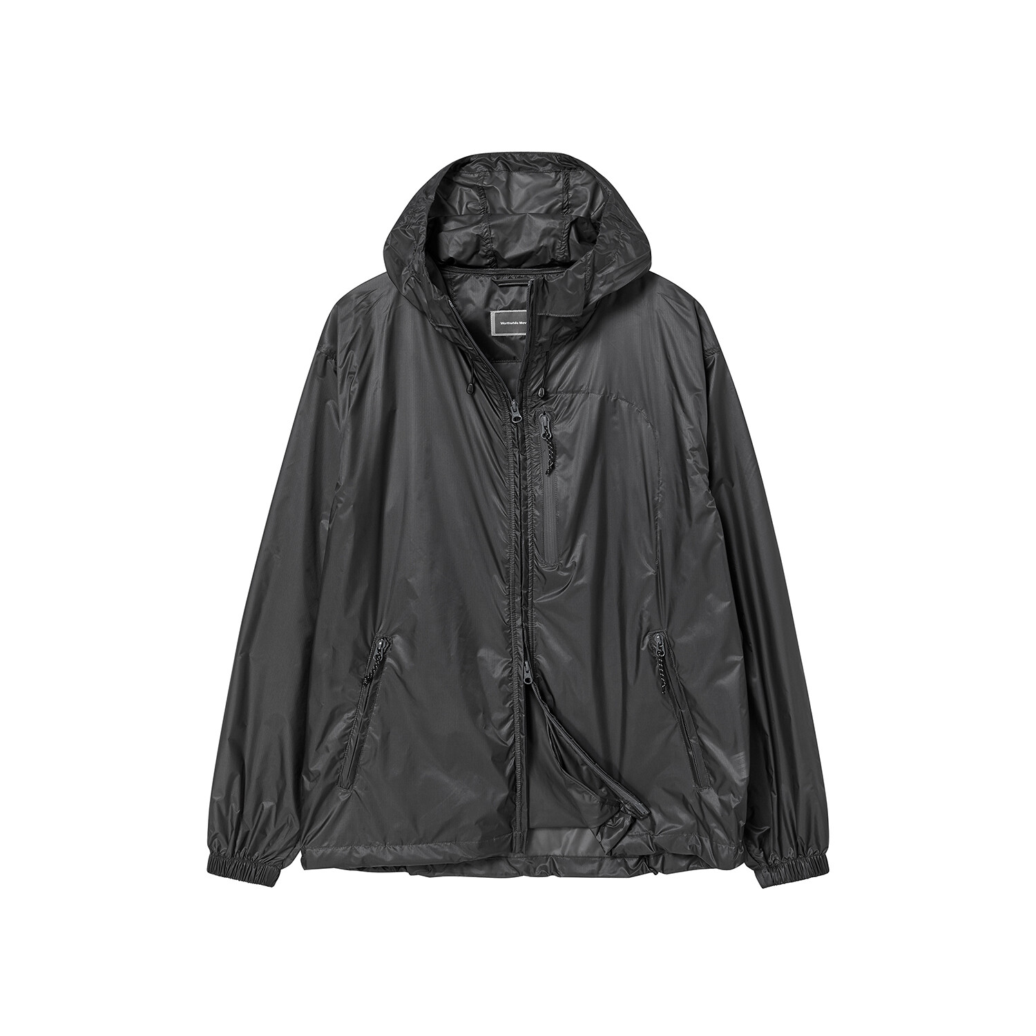 : 이 윈드브레이커는 초경량 소재와 뛰어난 기능성을 갖춘 제품으로, 다양한 환경에서도 최적의 퍼포먼스를 제공합니다. 530T Ripstop 나일론 원단에 멤브레인 코팅을 적용하였고 초경량(65g/yd²) 소재로 제작되어 가볍지만 내구성이 뛰어납니다. 이러한 장점들로 인해 일상생활 뿐 아니라 아웃도어 활동에서도 착용하시기 좋습니다. 통솔 봉제 방식으로 고급스러운 마감을 적용했으며, 암홀 거젯 디테일을 추가해 활동성을 높였습니다. 후드 사이즈 조절 기능 + 히든 스토퍼 & 바텍 디테일을 적용해 실용성을 극대화했고 투웨이 지퍼 적용으로 기능성을 향상시키는 동시에, 후면 패커블 기능을 통해 휴대성을 높였습니다. 본 제품은 방수, 방풍, 발수력에 큰 장점이 있지만 코팅된 원단이기 때문에 사용 환경에 따라 적절한 이너웨어와 함께 착용하는 것을 추천합니다.