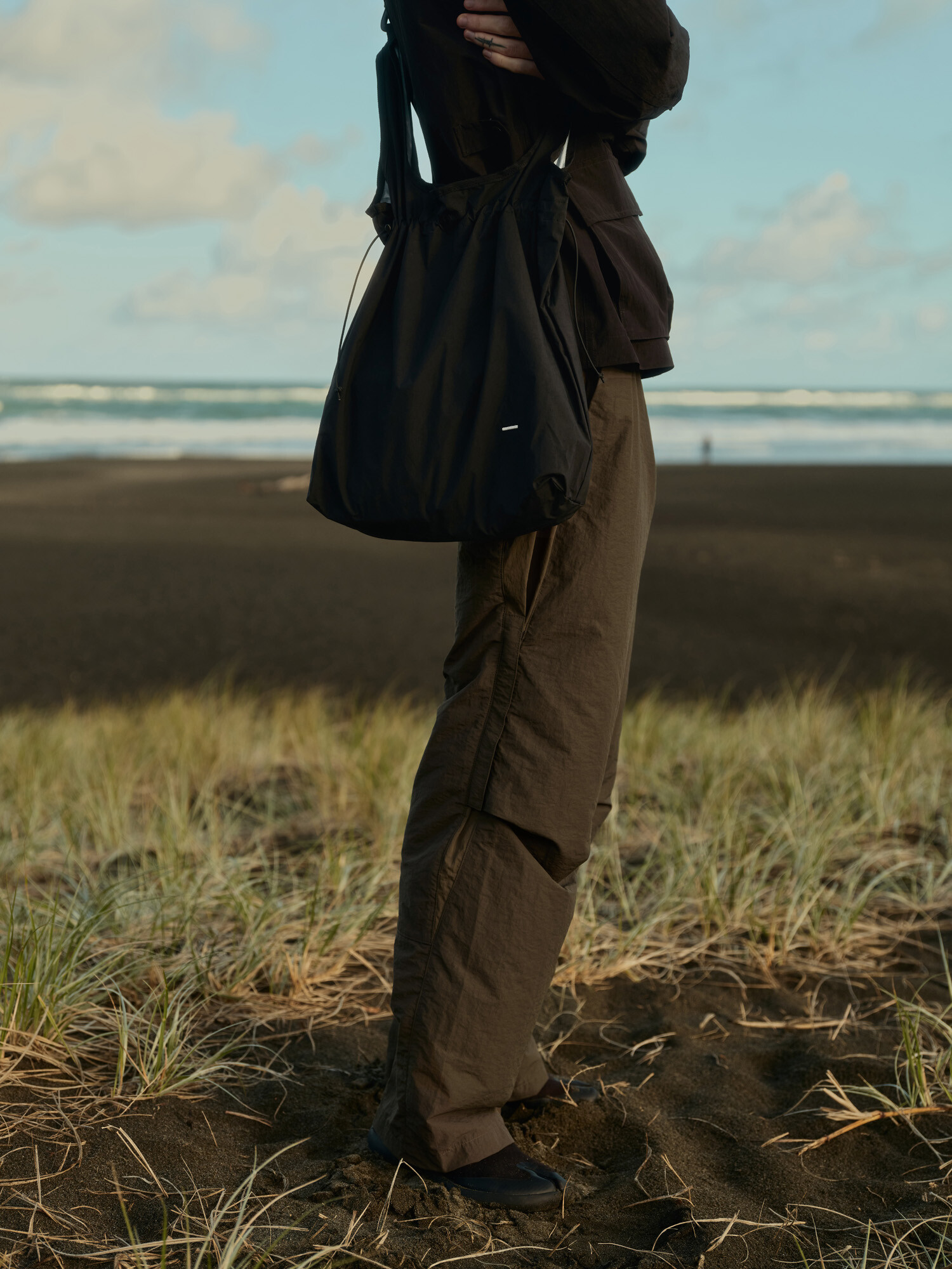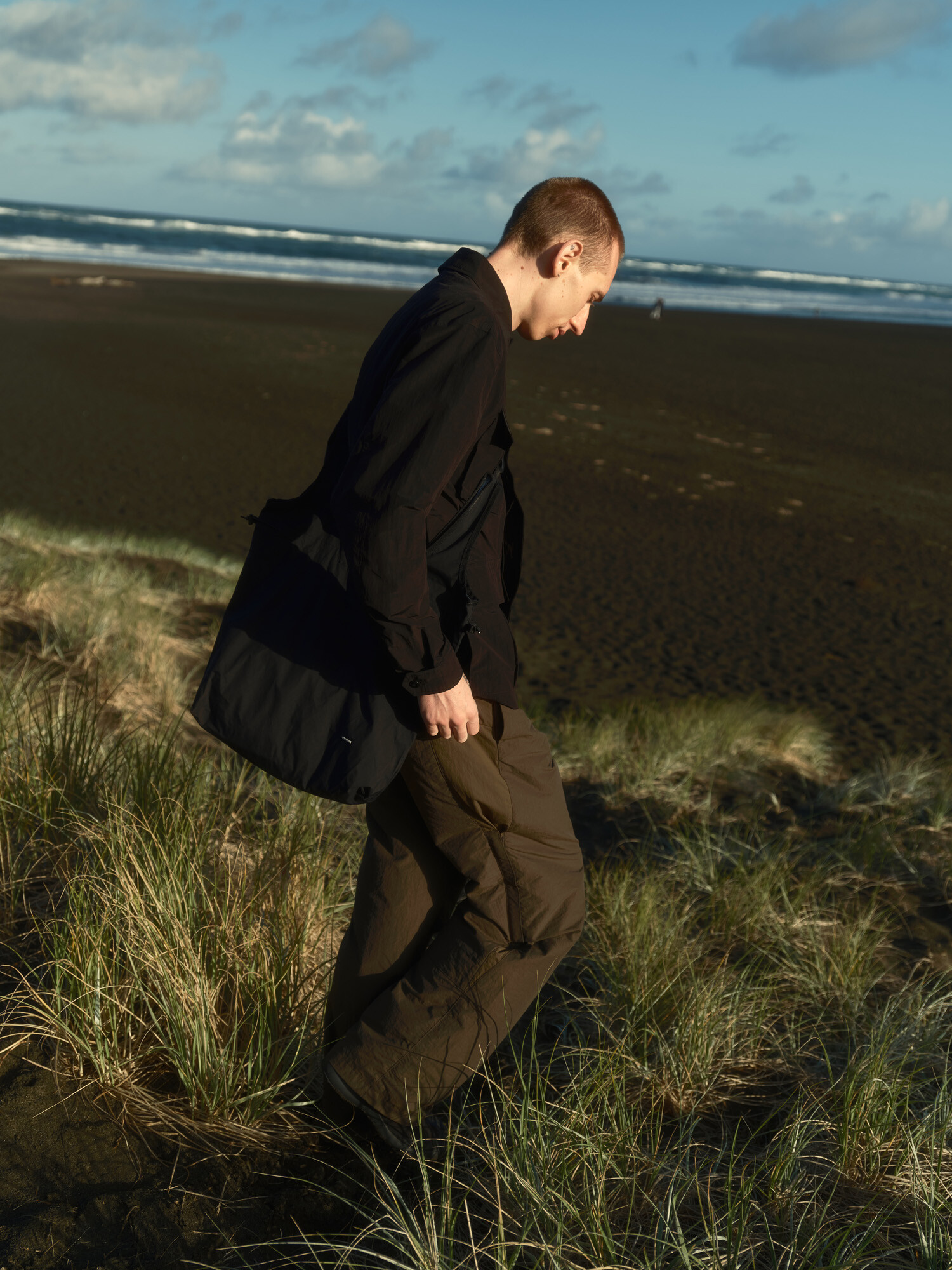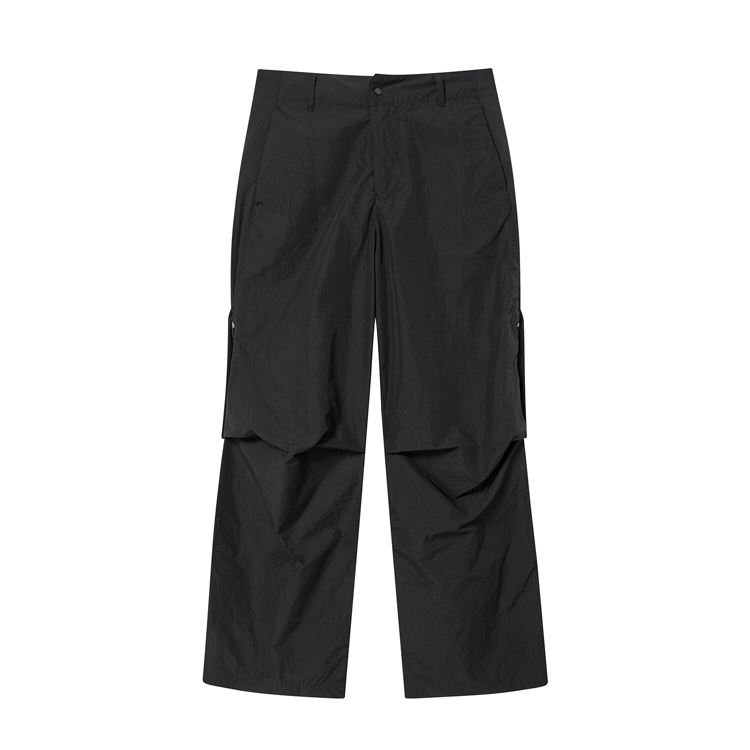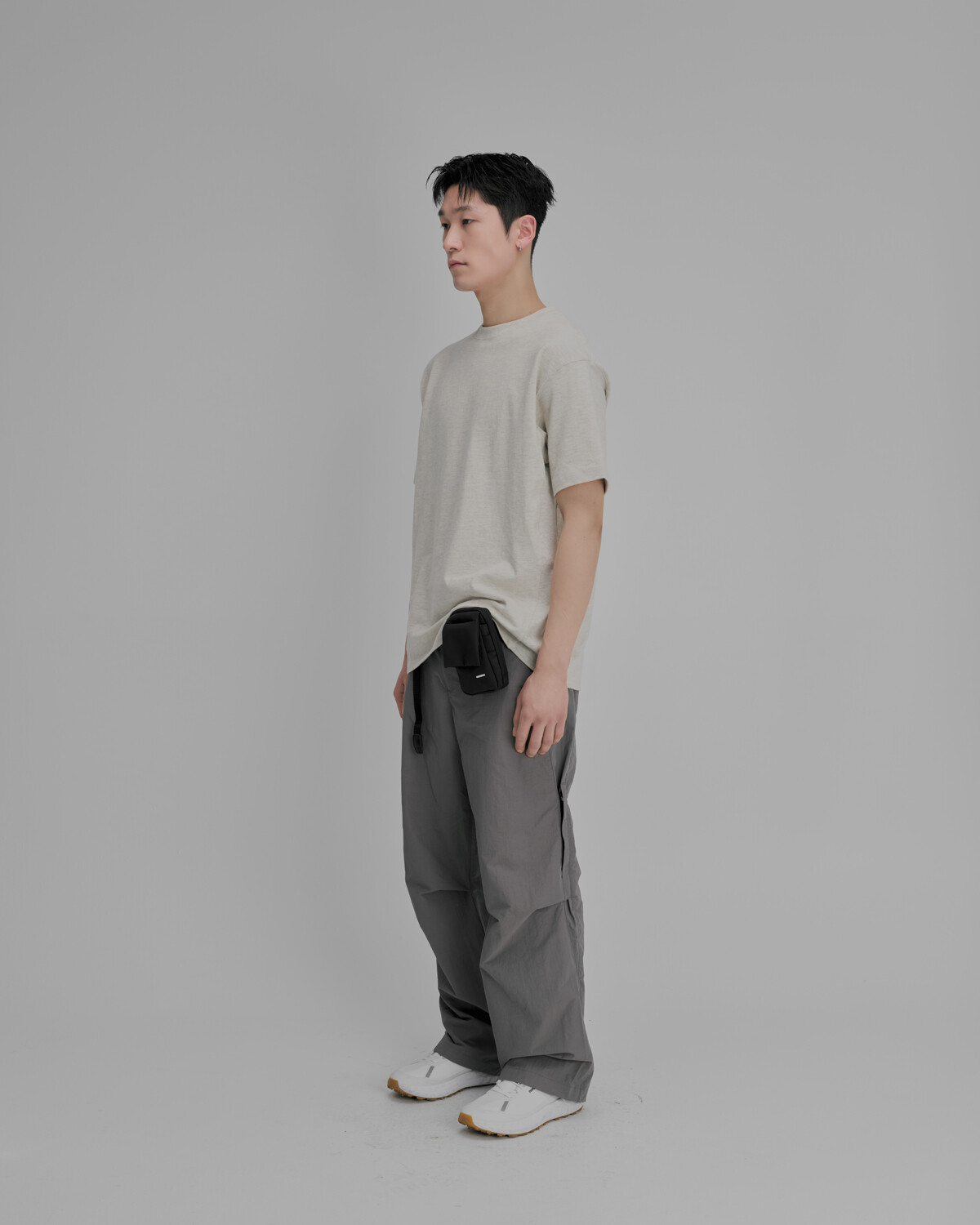 : 플레어드저스터 팬츠는 테크니컬한 디자인과기능성을 갖춘 현대적인 디자인의 제품으로 다양한 환경에서 활동성을 극대화하면서도 유니크한 실루엣을 연출할 수 있습니다. 메인 원단으로 사용된 나일론/코튼 혼방 소재는 각각의 장점을 극대화하여 내구성, 착용감, 경량성을 모두 갖추고 있는데 뛰어난 내구성 뿐 아니라 면과 같은 부드러운 촉감이 장점입니다. 이 제품의 가장 주요한 특징 중 하나는 플레어핏으로 변형되는 패턴과 디테일이 적용된 무릎 부분입니다. 무릎 아래 부분에 주름 디테일을 넣어 기본적으로는 비교적 풍성항 실루엣을 보여주지만 입체적인 절개라인에 YKK 지퍼를 배치하여 무릎 부분의 실루엣을 조절 및 플레어핏으로 변형시킬 수 있 는 위트있는 팬츠입니다. 또한, 플레어핏 지퍼는 외부에서 보이지 않도록 제원단 패널로 가려져 깔끔한 마무리와 동시에 부담스럽지 않은 디테일을 제공합니다. 슬라이더는 일반적인 제품과는 달리 YKK의 DSYG 모델을 사용하여 플랫하게 고정되며, 세미오토락 기능이 있어서 착용 중에 슬라이더가 쉽게 움직이지 않고 안정적으로 착용할 수 있습니다. 또한 컬러와 질감 면에서도 메인 원단과 배색 원단을 조화롭게 사용하여 미묘한 색감 차이와 질감의 대비를 주었는데요. 이러한 컬러 배색은 뒷면에서도 확인하실 수 있습니다. 뒷 주머니는 사선으로 배치하여 손을 넣는 상황에서 사용자의 편리함을 고려했습니다. 또한 콘솔지퍼와 바텍 마감으로 미니멀하고 견고한 마감 컨디션을 자랑합니다.