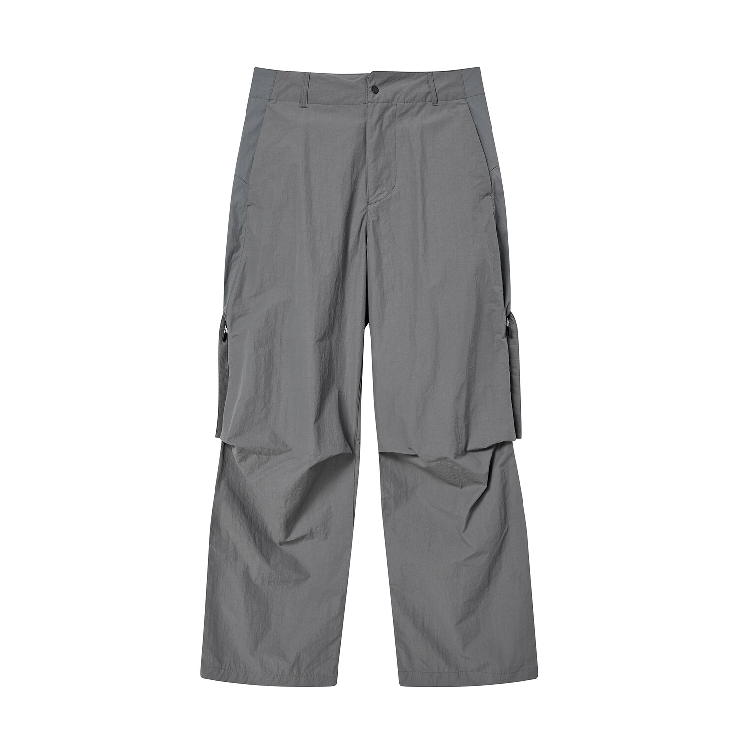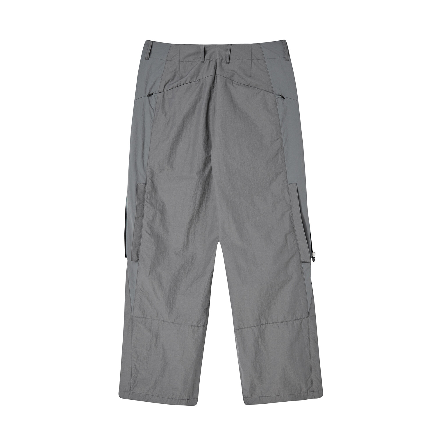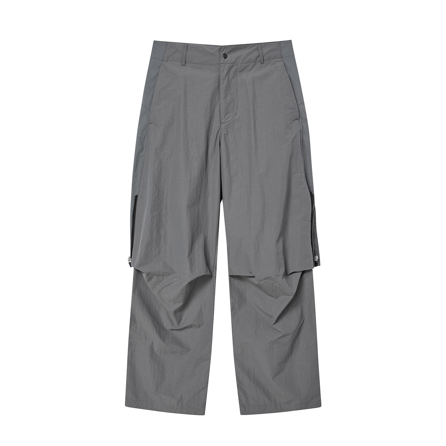 : 플레어드저스터 팬츠는 테크니컬한 디자인과기능성을 갖춘 현대적인 디자인의 제품으로 다양한 환경에서 활동성을 극대화하면서도 유니크한 실루엣을 연출할 수 있습니다. 메인 원단으로 사용된 나일론/코튼 혼방 소재는 각각의 장점을 극대화하여 내구성, 착용감, 경량성을 모두 갖추고 있는데 뛰어난 내구성 뿐 아니라 면과 같은 부드러운 촉감이 장점입니다. 이 제품의 가장 주요한 특징 중 하나는 플레어핏으로 변형되는 패턴과 디테일이 적용된 무릎 부분입니다. 무릎 아래 부분에 주름 디테일을 넣어 기본적으로는 비교적 풍성항 실루엣을 보여주지만 입체적인 절개라인에 YKK 지퍼를 배치하여 무릎 부분의 실루엣을 조절 및 플레어핏으로 변형시킬 수 있 는 위트있는 팬츠입니다. 또한, 플레어핏 지퍼는 외부에서 보이지 않도록 제원단 패널로 가려져 깔끔한 마무리와 동시에 부담스럽지 않은 디테일을 제공합니다. 슬라이더는 일반적인 제품과는 달리 YKK의 DSYG 모델을 사용하여 플랫하게 고정되며, 세미오토락 기능이 있어서 착용 중에 슬라이더가 쉽게 움직이지 않고 안정적으로 착용할 수 있습니다. 또한 컬러와 질감 면에서도 메인 원단과 배색 원단을 조화롭게 사용하여 미묘한 색감 차이와 질감의 대비를 주었는데요. 이러한 컬러 배색은 뒷면에서도 확인하실 수 있습니다. 뒷 주머니는 사선으로 배치하여 손을 넣는 상황에서 사용자의 편리함을 고려했습니다. 또한 콘솔지퍼와 바텍 마감으로 미니멀하고 견고한 마감 컨디션을 자랑합니다.