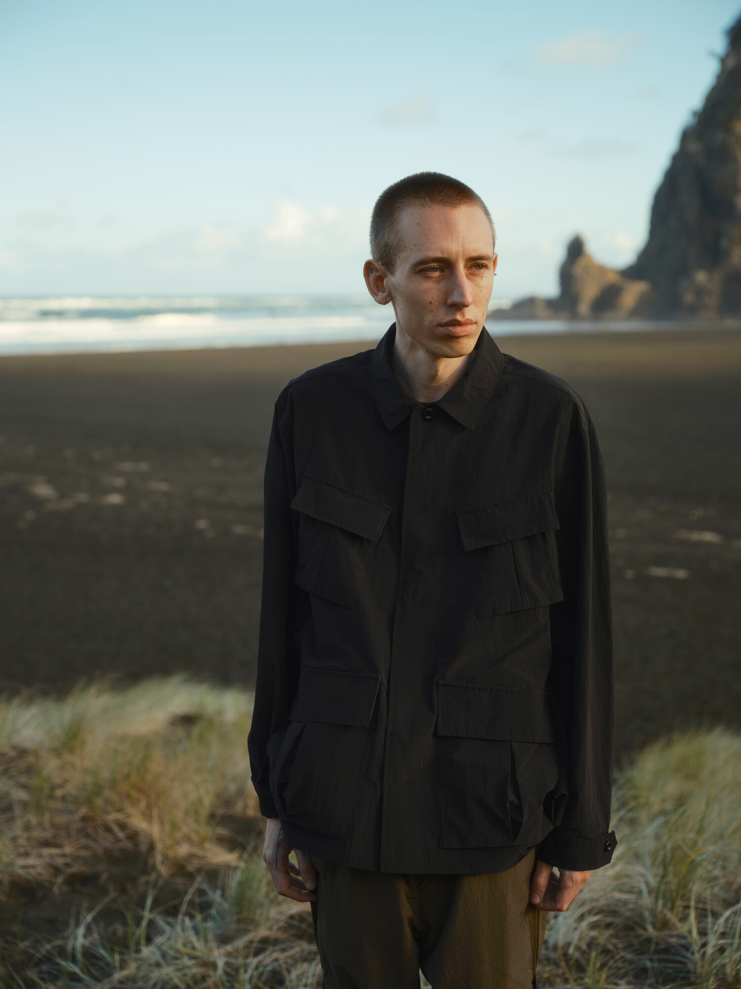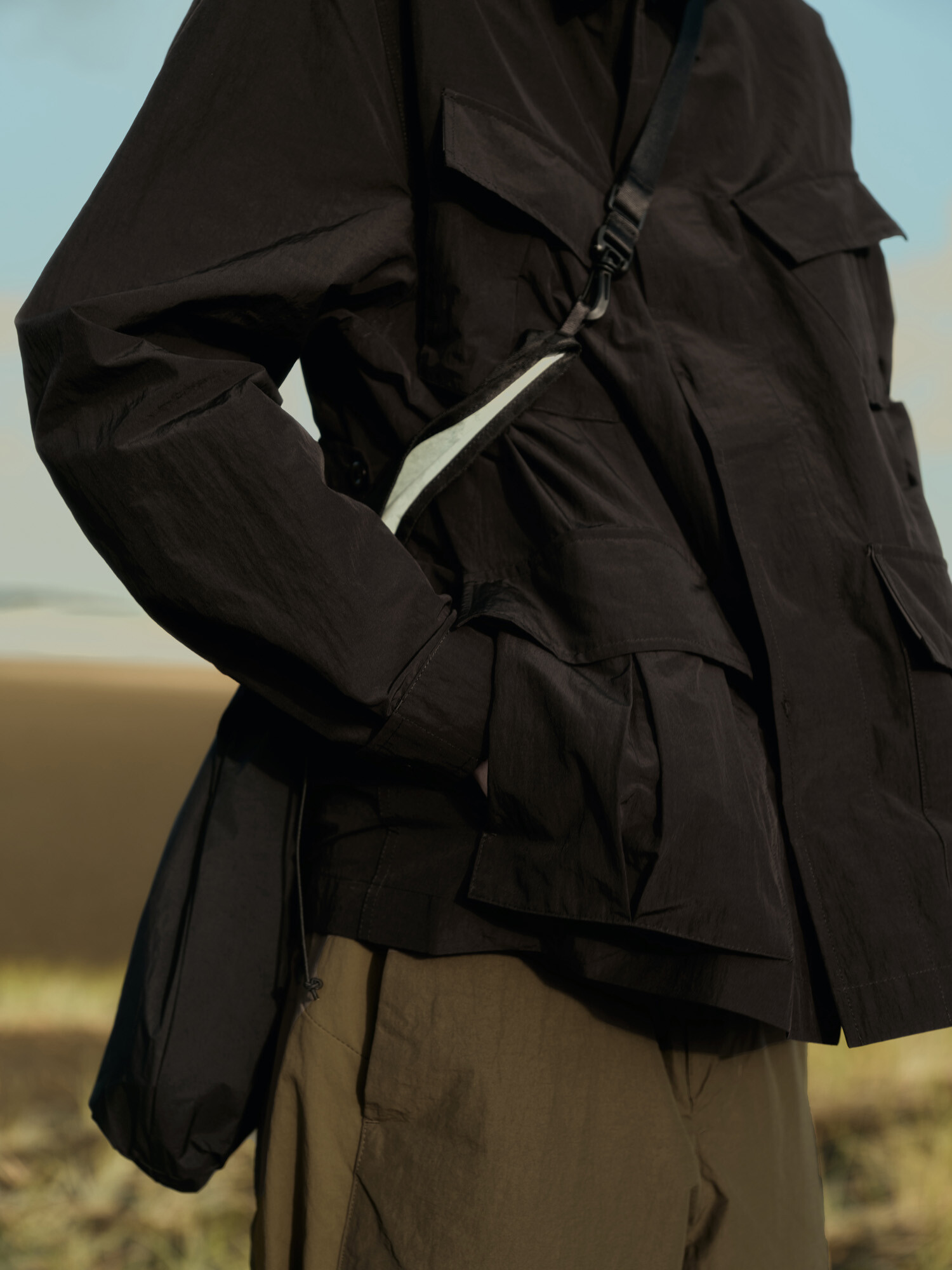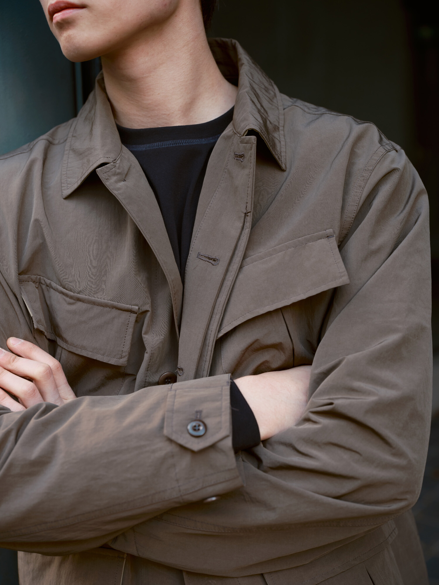 : 견장이 제거된 3세대 BDU(Battle Dress Uniform) 자켓을 모티브로 미군의 야전 전투복의 형태를 현대적이고 기능적인 모습으로 재해석했습니다. 소재 또한 나일론, 폴리에스터, 코튼 혼방 페브릭으로 변경하여 기본적인 BDU 실루엣을 유지하면서 가벼운 착용감과 높은 발수력으로 기능적인 부분을 더했습니다. 기본적인 구성은 클래식한 4포켓과 천연 너트 단추로 구성된 히든 버큰 클로저를 갖고 있습니다. 적당히 여유로운 레귤러 핏의 제품이며 포켓들은 모두 입체적인 구조를 갖고 있어 물건을 수납했을 때 더욱 풍성한 실루엣이 구현됩니다. 포켓의 플랩 내부는 나일론 배색 원단으로 보강되어 기능과 디자인적 요소를 모두 고려했습니다. 소매와 허리에 위치한 버튼과 비죠를 통해 실루엣을 간결하게 조절할 수 있습니다. 밀리터리 DNA를 갖고 있지만 일상에서 편하게 입기 좋은 기능적인 데일리 웨어로 추천드립니다.