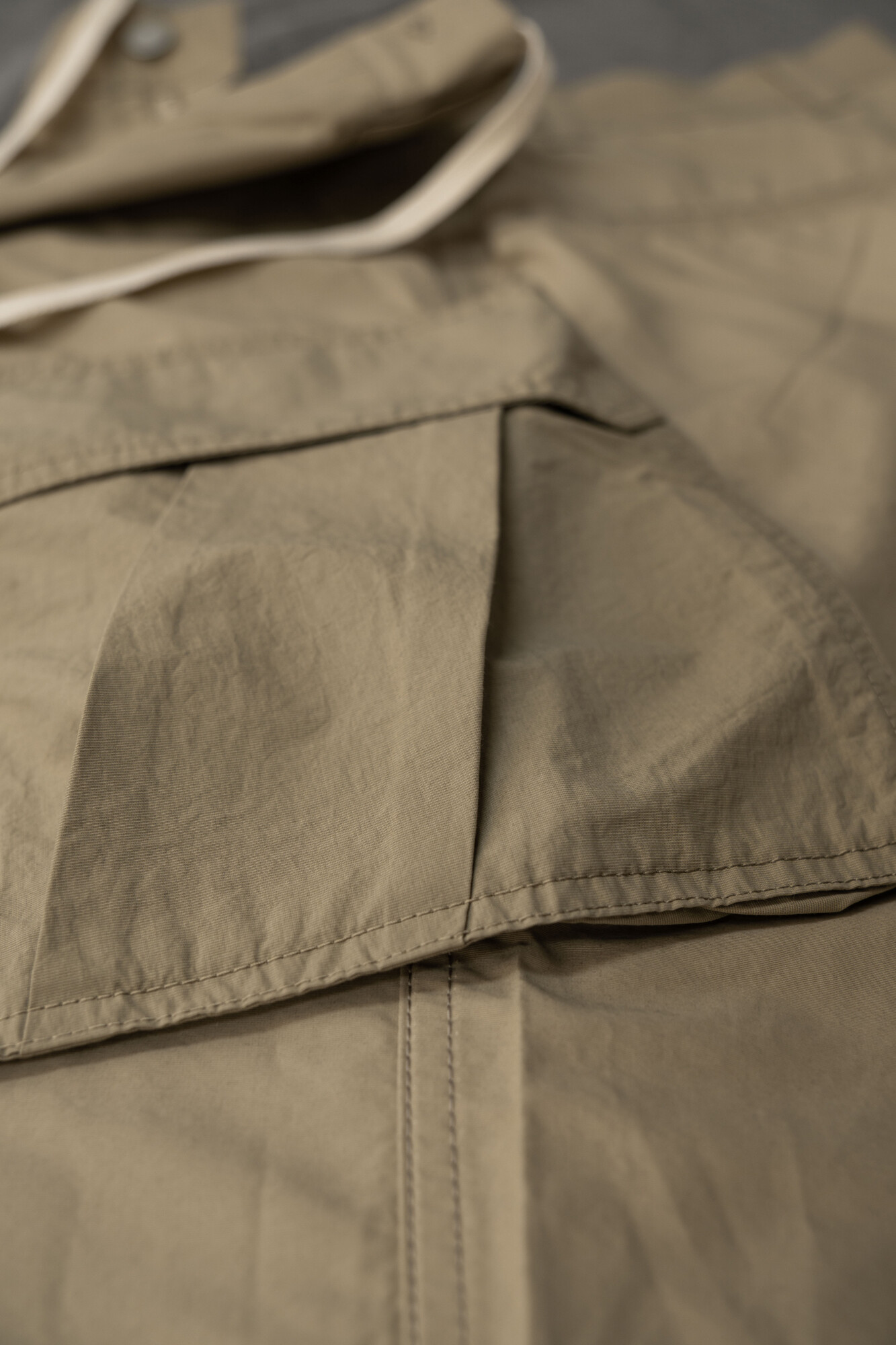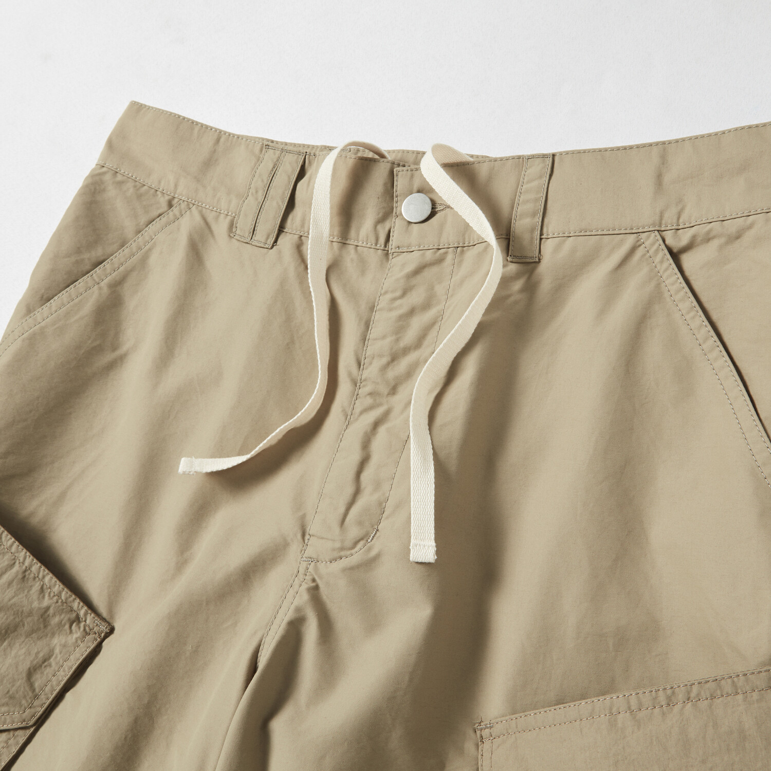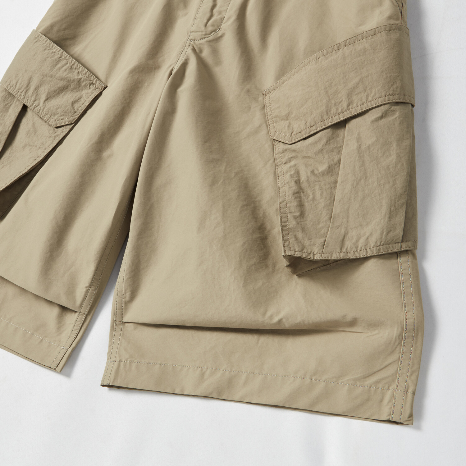 버뮤다 카고 팬츠는 여유로운 실루엣과 실용적인 디테일을 갖춘 유틸리티 무드의 캐주얼 아이템입니다. 패턴 설계 단계에서 테크니컬한 요소들을 밀도있게 기획한 디자인으로, 다양한 활동에 유연하게 대응할 수 있도록 설계되었습니다. 무릎의 플리츠 디테일, 넉넉한 실루엣과 총장 그리고 허벅지 너비와 힙둘레 등 전반적인 사이즈를 부담스럽지 않지만 여유롭게 제작하여 착용자에게 보다 자유로운 움직임을 제공합니다. 메인 원단으로 사용된 나일론/코튼 혼방소재는 가볍고 쾌적한 착용감을 제공하면서도, 마찰에 강한 나일론 특유의 내구성과 면의 부드러운 감촉이 공존합니다. 여기에 가먼트 워싱을 더해 자연스럽고 입체적인 표면감을 살렸습니다.