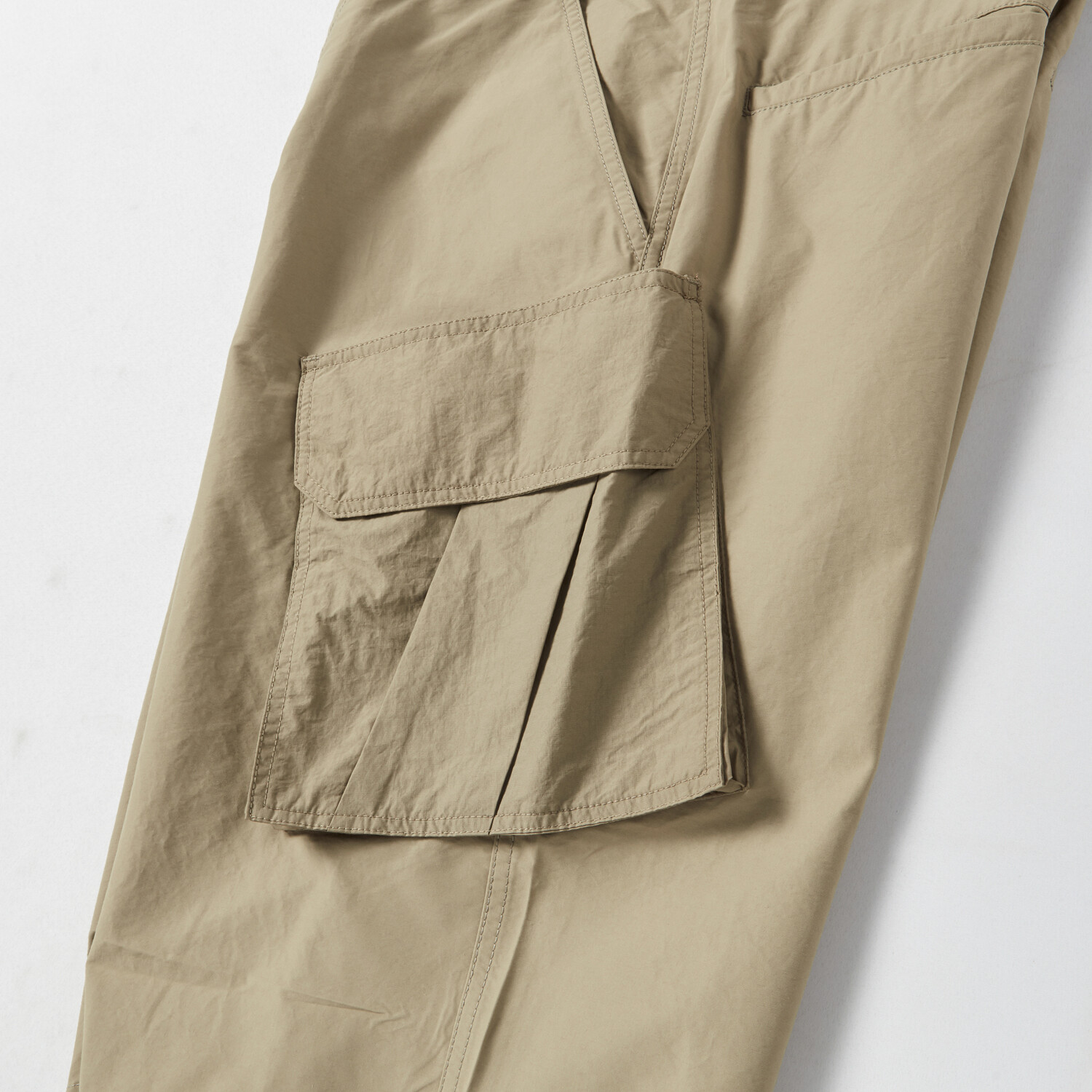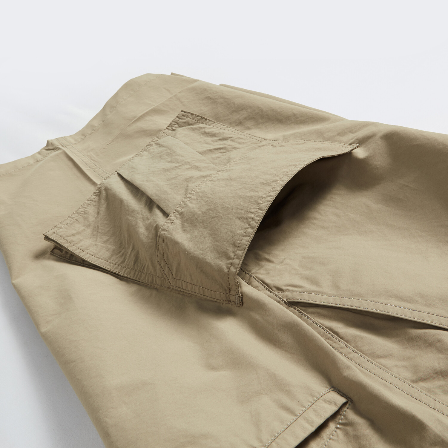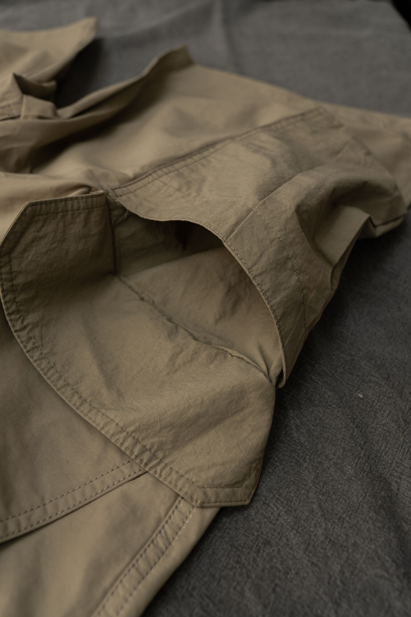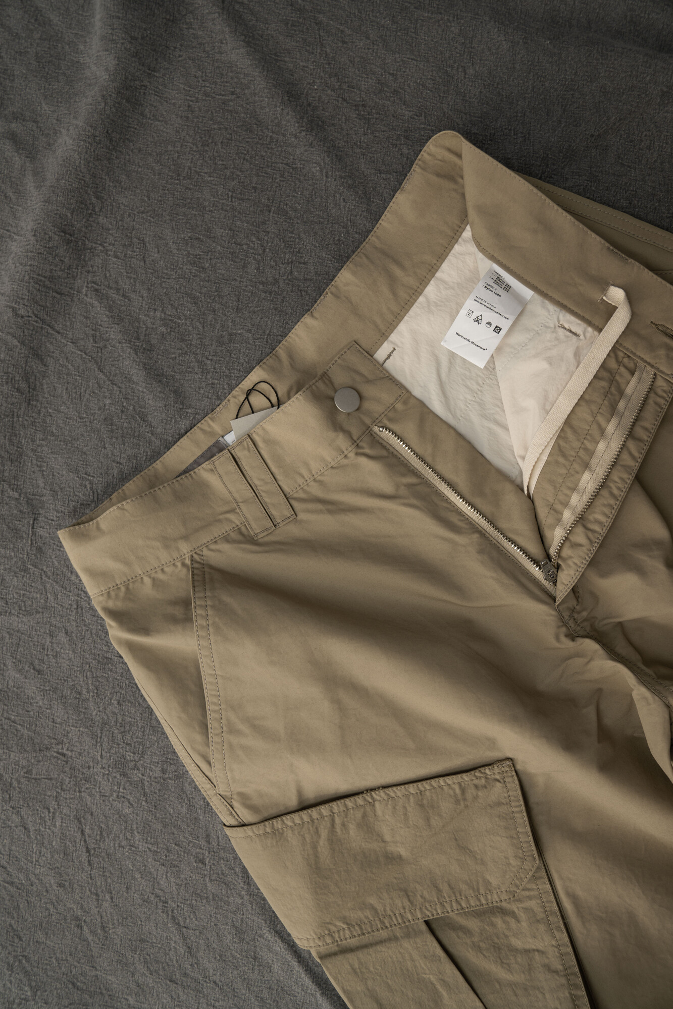 버뮤다 카고 팬츠는 여유로운 실루엣과 실용적인 디테일을 갖춘 유틸리티 무드의 캐주얼 아이템입니다. 패턴 설계 단계에서 테크니컬한 요소들을 밀도있게 기획한 디자인으로, 다양한 활동에 유연하게 대응할 수 있도록 설계되었습니다. 무릎의 플리츠 디테일, 넉넉한 실루엣과 총장 그리고 허벅지 너비와 힙둘레 등 전반적인 사이즈를 부담스럽지 않지만 여유롭게 제작하여 착용자에게 보다 자유로운 움직임을 제공합니다. 메인 원단으로 사용된 나일론/코튼 혼방소재는 가볍고 쾌적한 착용감을 제공하면서도, 마찰에 강한 나일론 특유의 내구성과 면의 부드러운 감촉이 공존합니다. 여기에 가먼트 워싱을 더해 자연스럽고 입체적인 표면감을 살렸습니다.