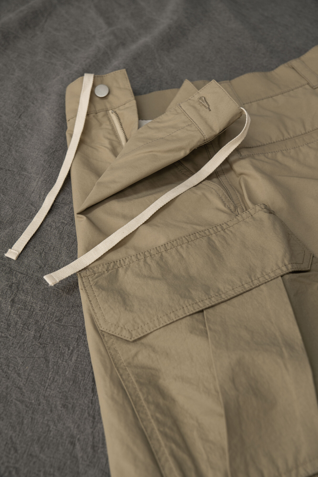 허리 라인은 스트링을 통해 자유롭게 조절할 수 있도록 구성되어 편안한 착용감을 유지하며, 기호에 맞게 스트링을 빼서 스타일에 맞게 연출하실 수 도 있습니다. 보통의 팬츠보다 넓게 제작한 벨트 루프는 다양한 벨트 착용을 고려한 실용적인 설계임과 동시에 입체적인 포켓이 특징인 해당 팬츠의 기능적인 분위기를 통일시키는 요소입니다. 특히 우측의 이중 벨트 루프 디테일은 키링 등의 액세서리 착용을 고려해 디자인되었습니다.