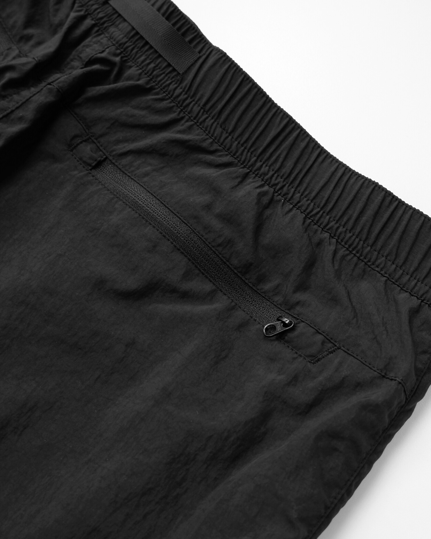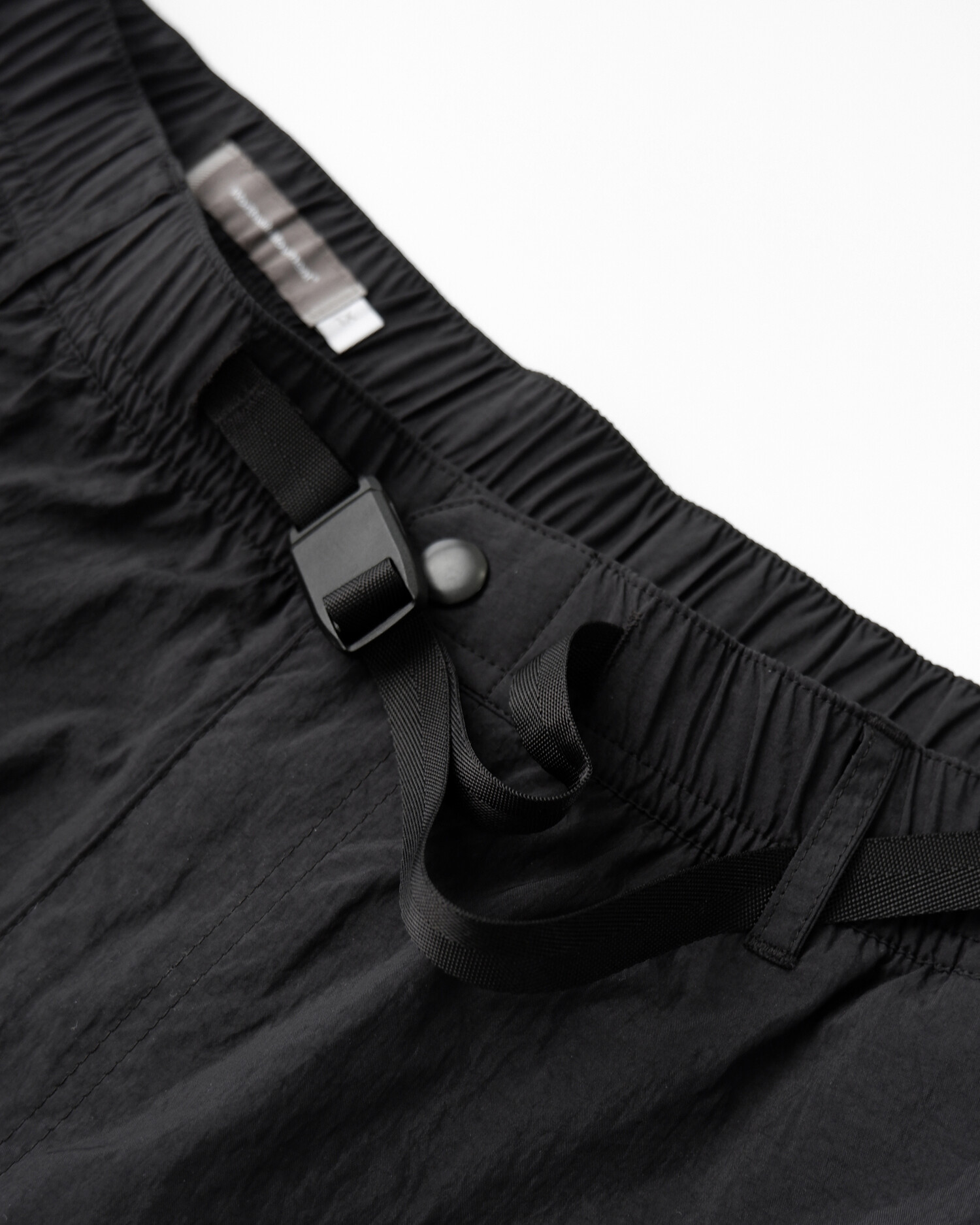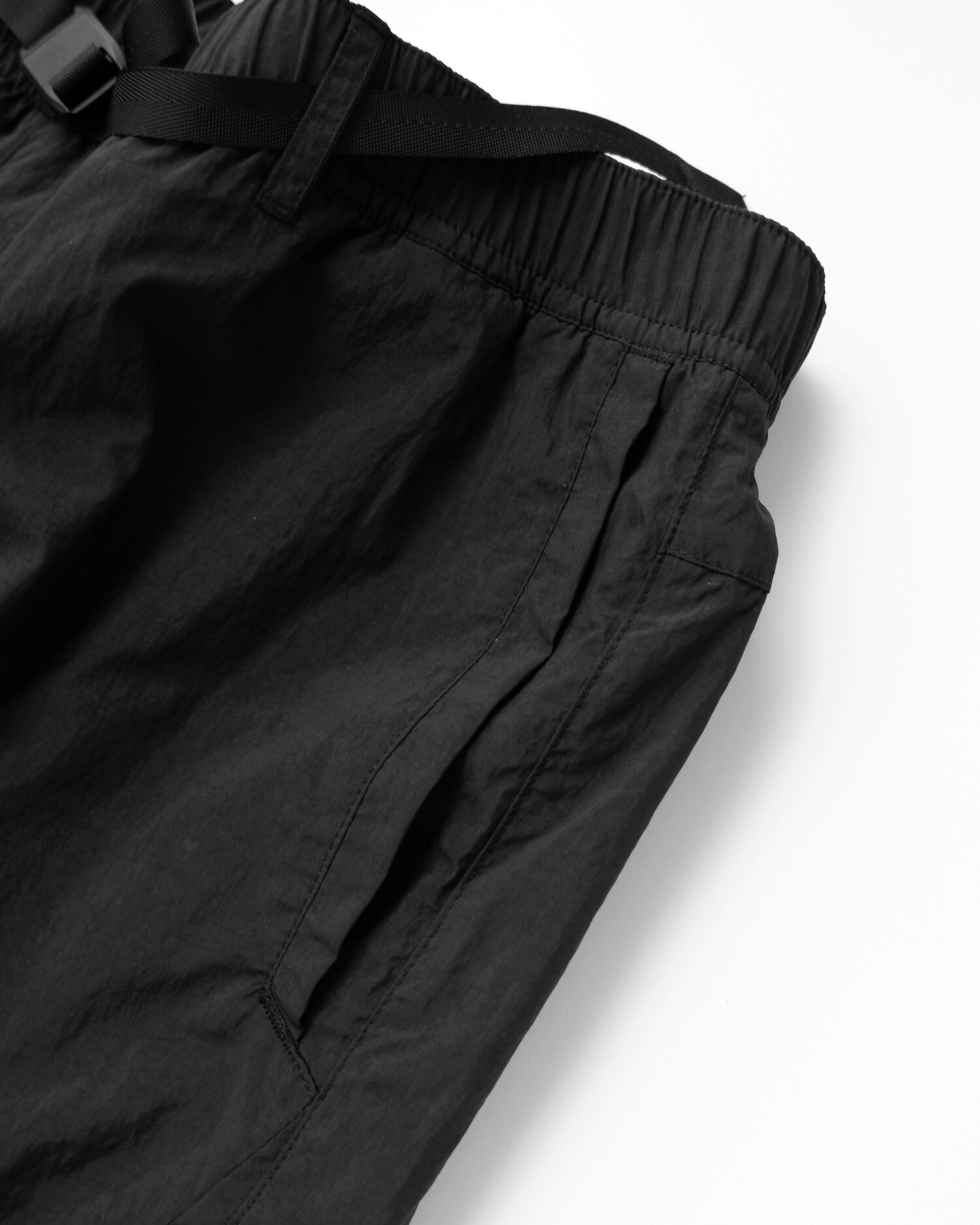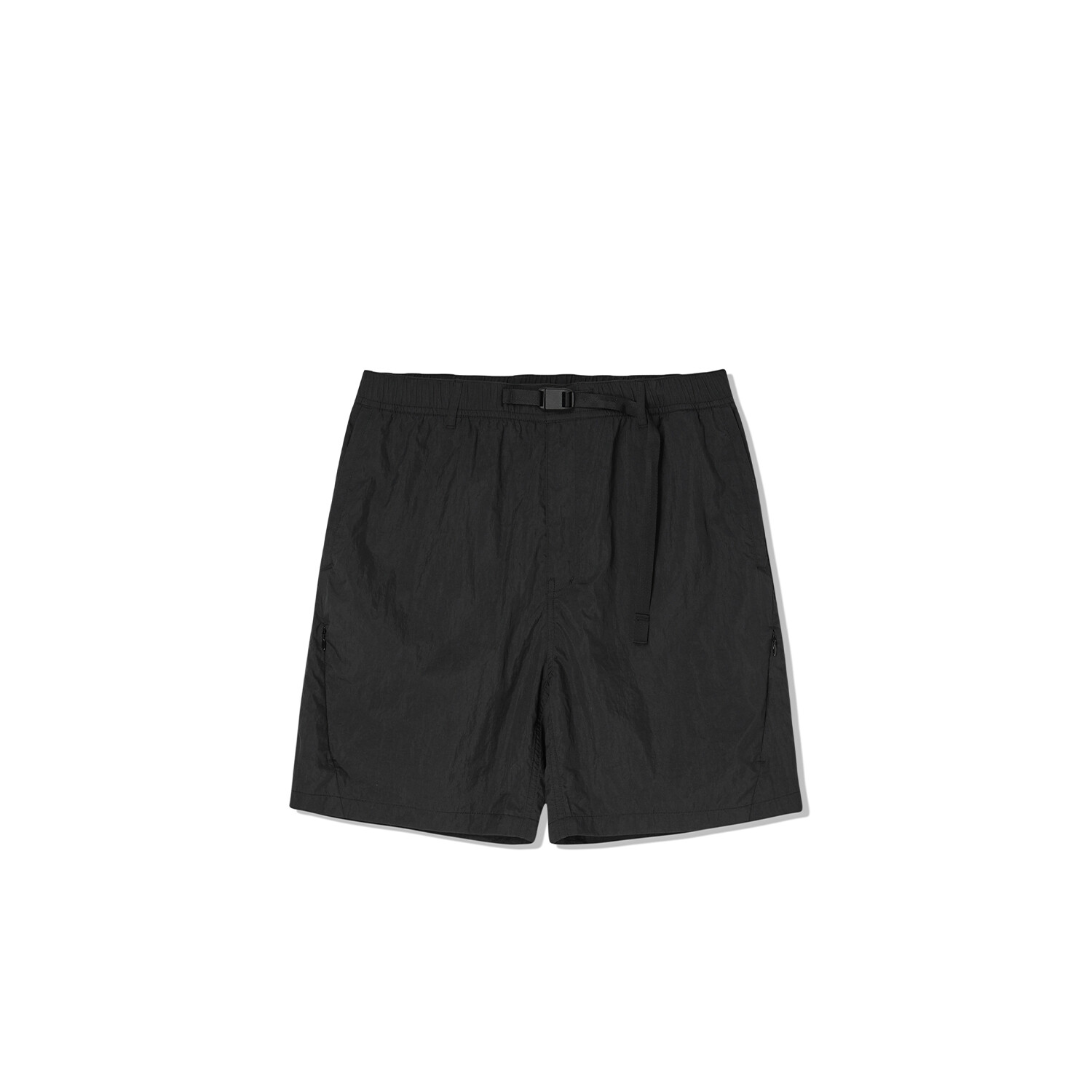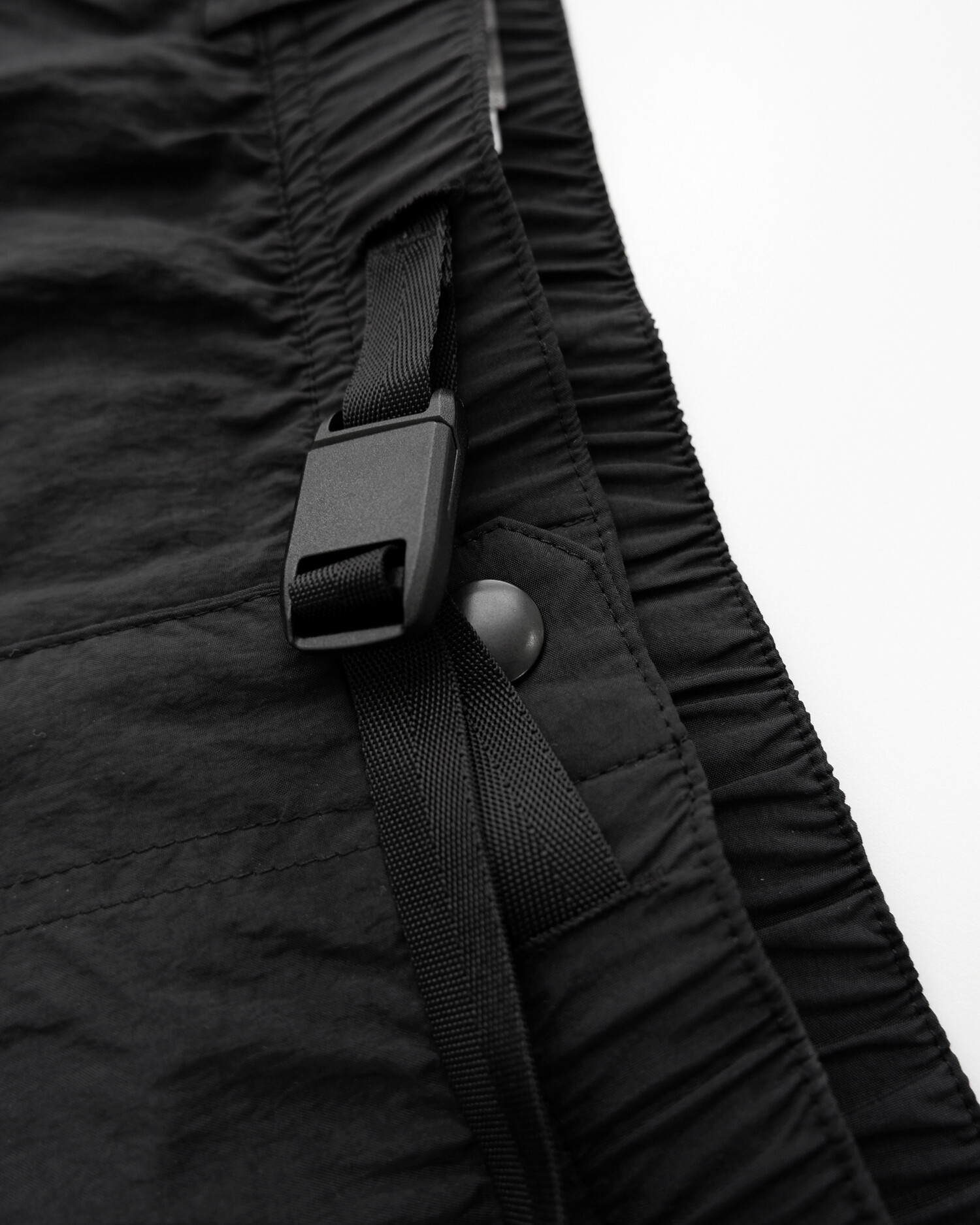 : 경쾌한 기장감에 시원한 감촉이 곧바로 피부에 느껴지는 짧은 반바지는 여름철 가장 필요한 아이템이 아닐까 합니다. ‘유틸리티 쇼츠’는 발수 가공된 얇고 가벼운 나일론 패브릭에 쿨 메쉬를 레이어링해서 2중 구조로 제작한 반바지입니다. 좋은 발수력과 쿨한 터치감으로 여름 뿐 아니라 늦봄부터 초가을까지 쭉 입기 좋은 제품인데요. 와샤 가공까지 진행된 원단이어서 가까이 보았을 때 불규칙적이고 미세한 주름과 바스락거리는 터치감이 매력적입니다. 유틸리티 쇼츠의 허리에는 E밴드와 V직 웨빙 그리고 마그네틱 버클을 적용하여 간편하고 빠르게 사이즈 조절이 가능하도록 하였고, 밴딩 구조 특성상 편안한 피팅감을 제공합니다. 바지의 포켓과 벤틸레이션 그리고 절개 구조들은 여러 직선들로 이루어져 있는데 정면과 옆면에서 봤을 때 그 독특한 구조와 매력이 잘 느껴집니다. 메쉬가 레이어드된 반바지의 특성상 벤틸레이션은 일부 역할은 수행할 수 있지만 정확히는 기능적 역할보다 디자인적 배치를 염두해둔 디테일이며 포켓의 입구 사선 절개와 통일성을 이루기 위함입니다. 따라서 벤틸레이션 지퍼는 기호에 맞게 자유롭게 연출해주시기를 바랍니다. 꼼꼼한 봉재와 더불어 보강이 필요한 부분들에는 바텍으로 단단히 고정하였습니다. 잘 만들어진 가볍고 시원한 나일론 쇼츠를 찾는 분들께 추천드립니다.