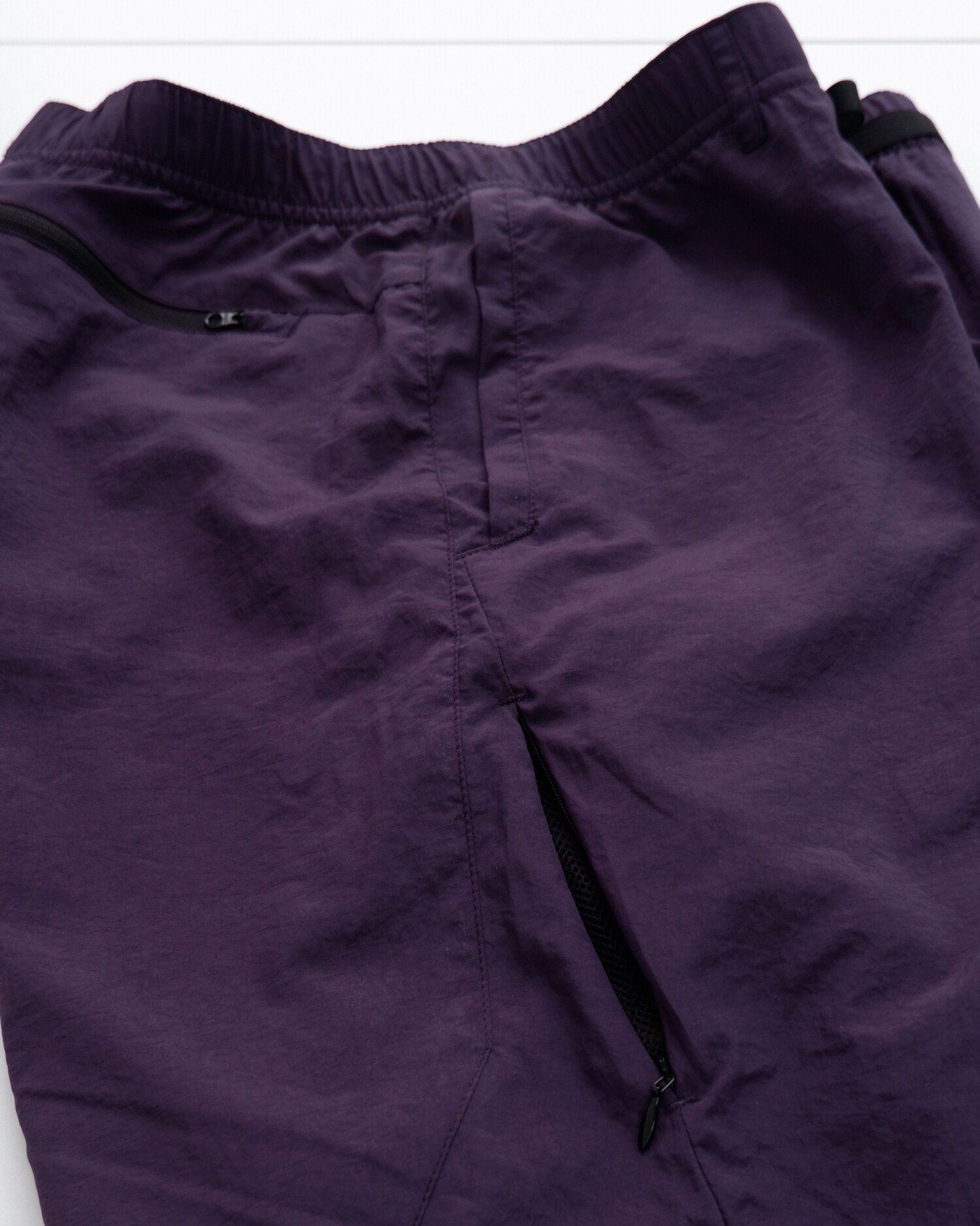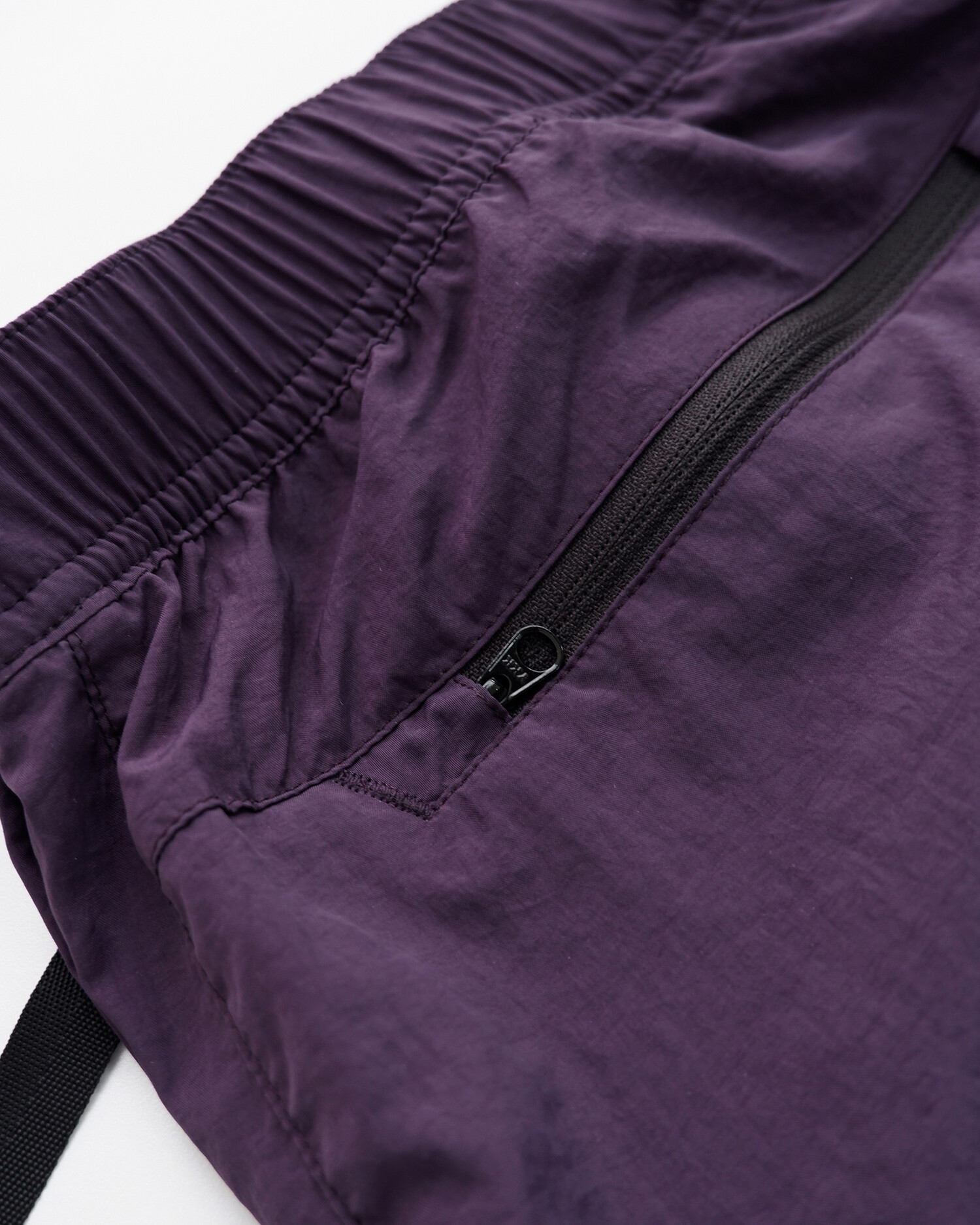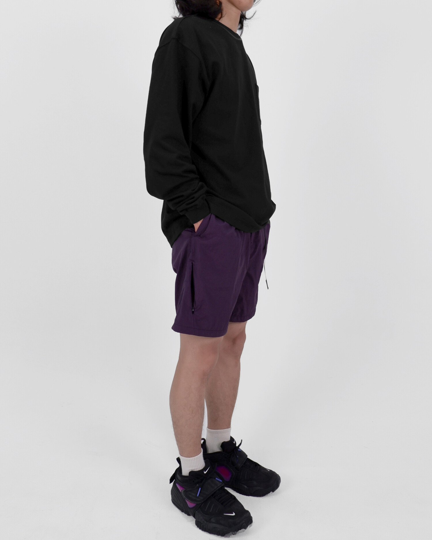 : 경쾌한 기장감에 시원한 감촉이 곧바로 피부에 느껴지는 짧은 반바지는 여름철 가장 필요한 아이템이 아닐까 합니다. ‘유틸리티 쇼츠’는 발수 가공된 얇고 가벼운 나일론 패브릭에 쿨 메쉬를 레이어링해서 2중 구조로 제작한 반바지입니다. 좋은 발수력과 쿨한 터치감으로 여름 뿐 아니라 늦봄부터 초가을까지 쭉 입기 좋은 제품인데요. 와샤 가공까지 진행된 원단이어서 가까이 보았을 때 불규칙적이고 미세한 주름과 바스락거리는 터치감이 매력적입니다. 유틸리티 쇼츠의 허리에는 E밴드와 V직 웨빙 그리고 마그네틱 버클을 적용하여 간편하고 빠르게 사이즈 조절이 가능하도록 하였고, 밴딩 구조 특성상 편안한 피팅감을 제공합니다. 바지의 포켓과 벤틸레이션 그리고 절개 구조들은 여러 직선들로 이루어져 있는데 정면과 옆면에서 봤을 때 그 독특한 구조와 매력이 잘 느껴집니다. 메쉬가 레이어드된 반바지의 특성상 벤틸레이션은 일부 역할은 수행할 수 있지만 정확히는 기능적 역할보다 디자인적 배치를 염두해둔 디테일이며 포켓의 입구 사선 절개와 통일성을 이루기 위함입니다. 따라서 벤틸레이션 지퍼는 기호에 맞게 자유롭게 연출해주시기를 바랍니다. 꼼꼼한 봉재와 더불어 보강이 필요한 부분들에는 바텍으로 단단히 고정하였습니다. 잘 만들어진 가볍고 시원한 나일론 쇼츠를 찾는 분들께 추천드립니다.