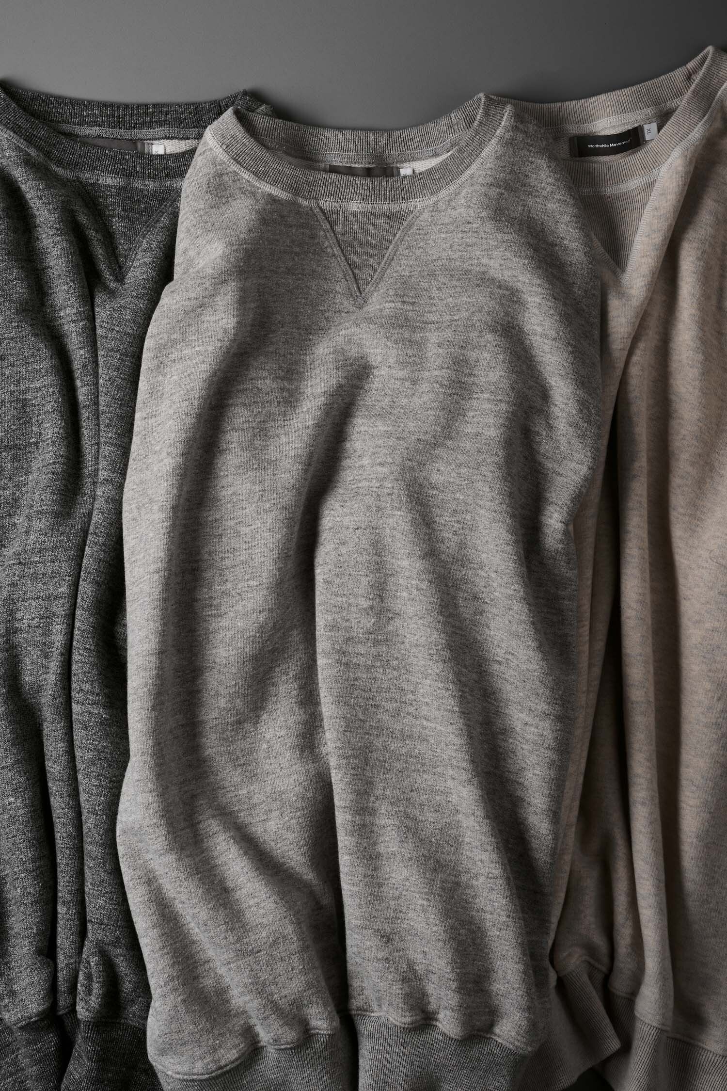 : 어슬레틱 스웻셔츠는 미국 아이비리그 대학생들과 운동 선수들이 입었던 과거 빈티지 스웻셔츠를 디자인 베이스로 현대적인 느낌을 가미한 제품입니다. 비교적 짧은 기장감과 여유있는 실루엣이 특징이며 밑단의 립 양 측면에는 과감하고 입체감이 있는 라인으로 절개를 넣어서 리브의 디자인을 새롭게 했습니다. 이 스웻셔츠는 굉장히 포근하고 부드러운 터치, 그리고 가벼운 무게가 장점으로 천연소재를 중심으로 캐주얼한 저지 원단을 제작하는 일본 DOCOBO사의 테리 소재 수피마 면 원단을 사용했습니다. DOCOBO 사는 USA 코튼과 아메리칸 드라이 시리즈를 중심으로 고품질의 스웻 원단을 제작하는 하는 것으로 유명하며 특히 이 원단은 실 자체가 갖고 있는 자연스러운 뭉침과 얼룩을 살려 부드러운 느낌의 테리와 리브로 완성한 소재입니다. 여러 차례의 워싱 테스트를 통해 축률 데이터를 완성하여 제작한 제품으로 편하게 그리고 오랫동안 즐겨주시기를 바랍니다.