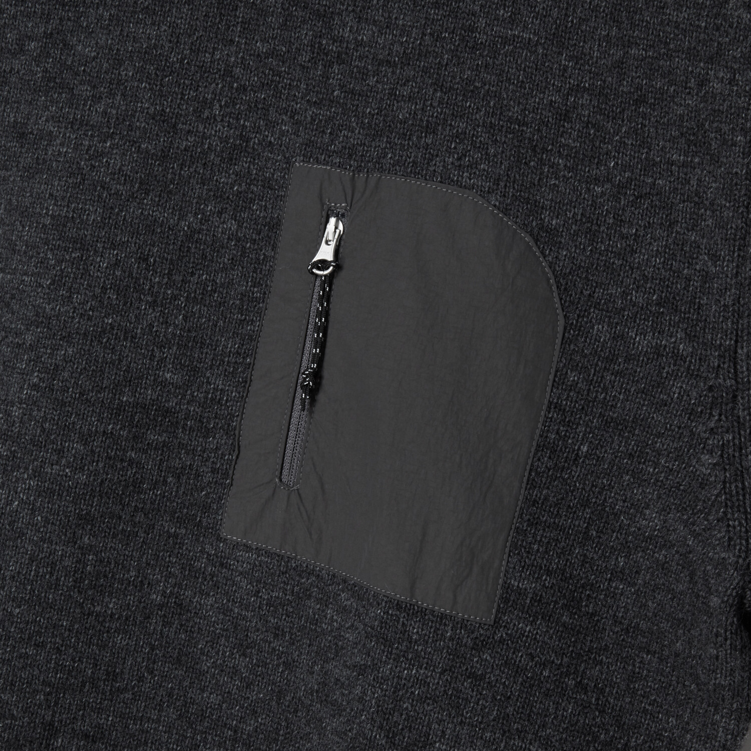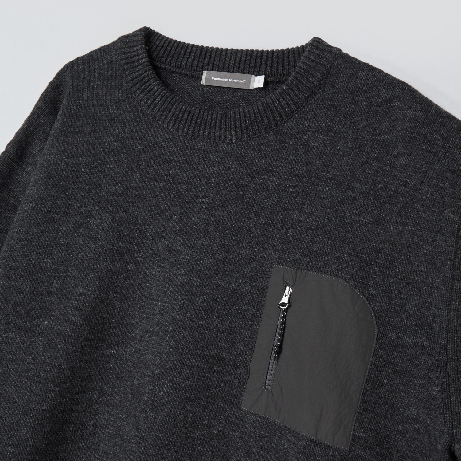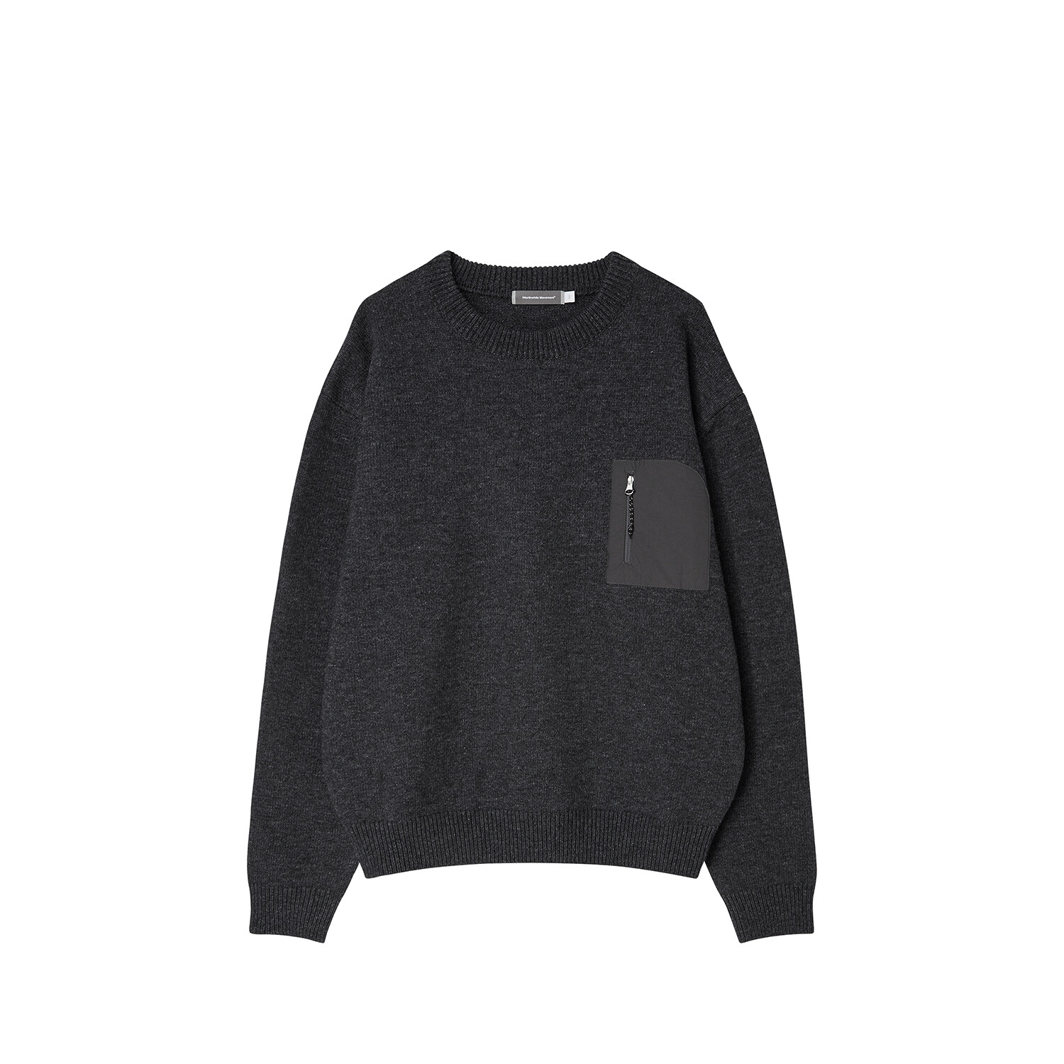 : 부드러운 파인 울 터치를 느끼실 수 있는 니트로 나일론 및 폴리에스터가 적절히 혼용되어 관리 측면에서는 실용적인 제품입니다. 7게이지 2합으로 짜여진 싱글 조직 크루넥으로 가을~겨울까지 활용 가능한 적절한 두께감을 갖고 있습니다. 적절하게 잡아주는 밑단과 여유로운 피팅감이 단품이나 아우터 속 이너까지 여러 포지션으로 활용하실 수 있습니다. 가장 큰 특징인 나일론 소재의 포켓에는 YKK 지퍼와 풀러를 배치하여 니트이지만 나일론 소재의 아이템들과의 조합도 자연스러운 분위기를 만들어 줍니다.