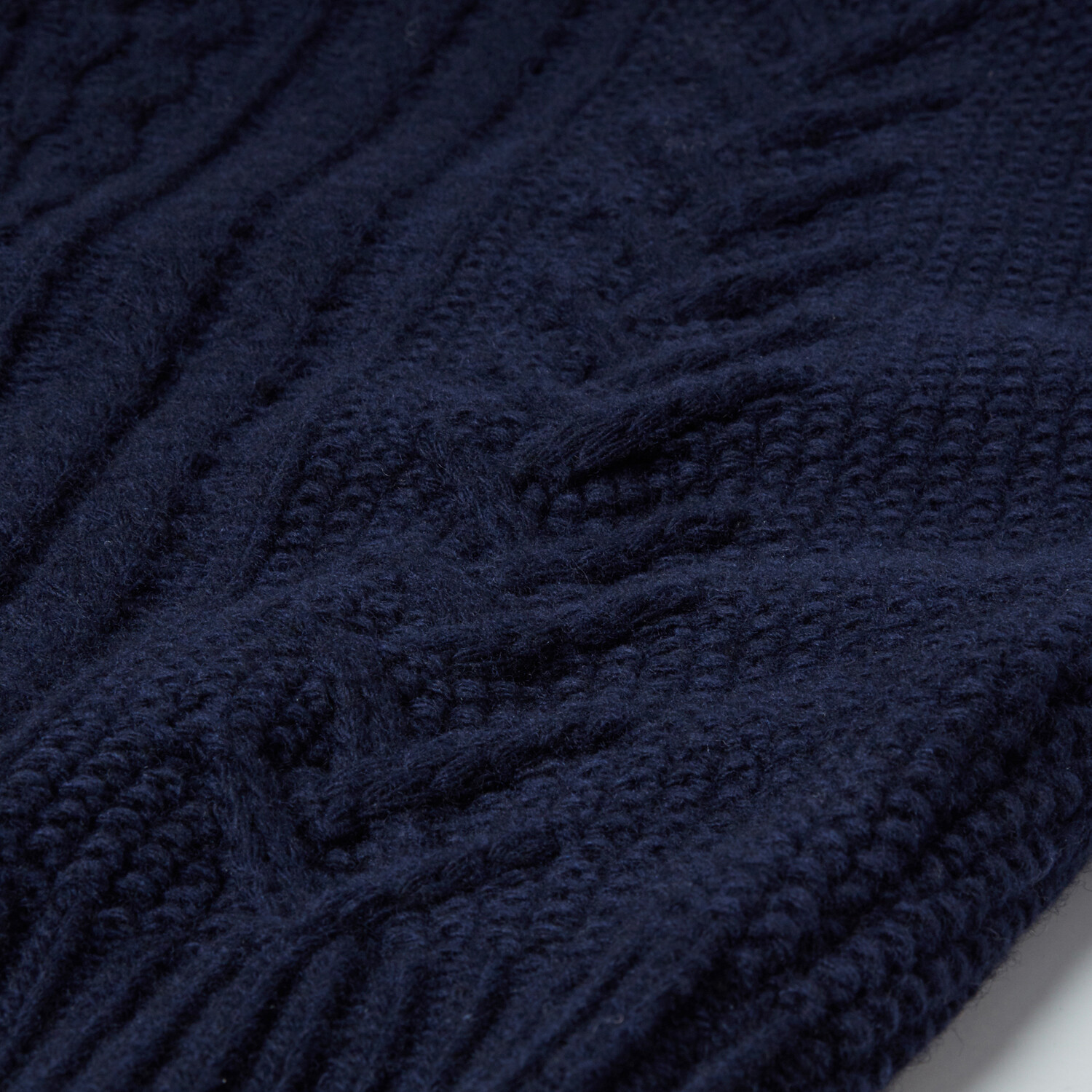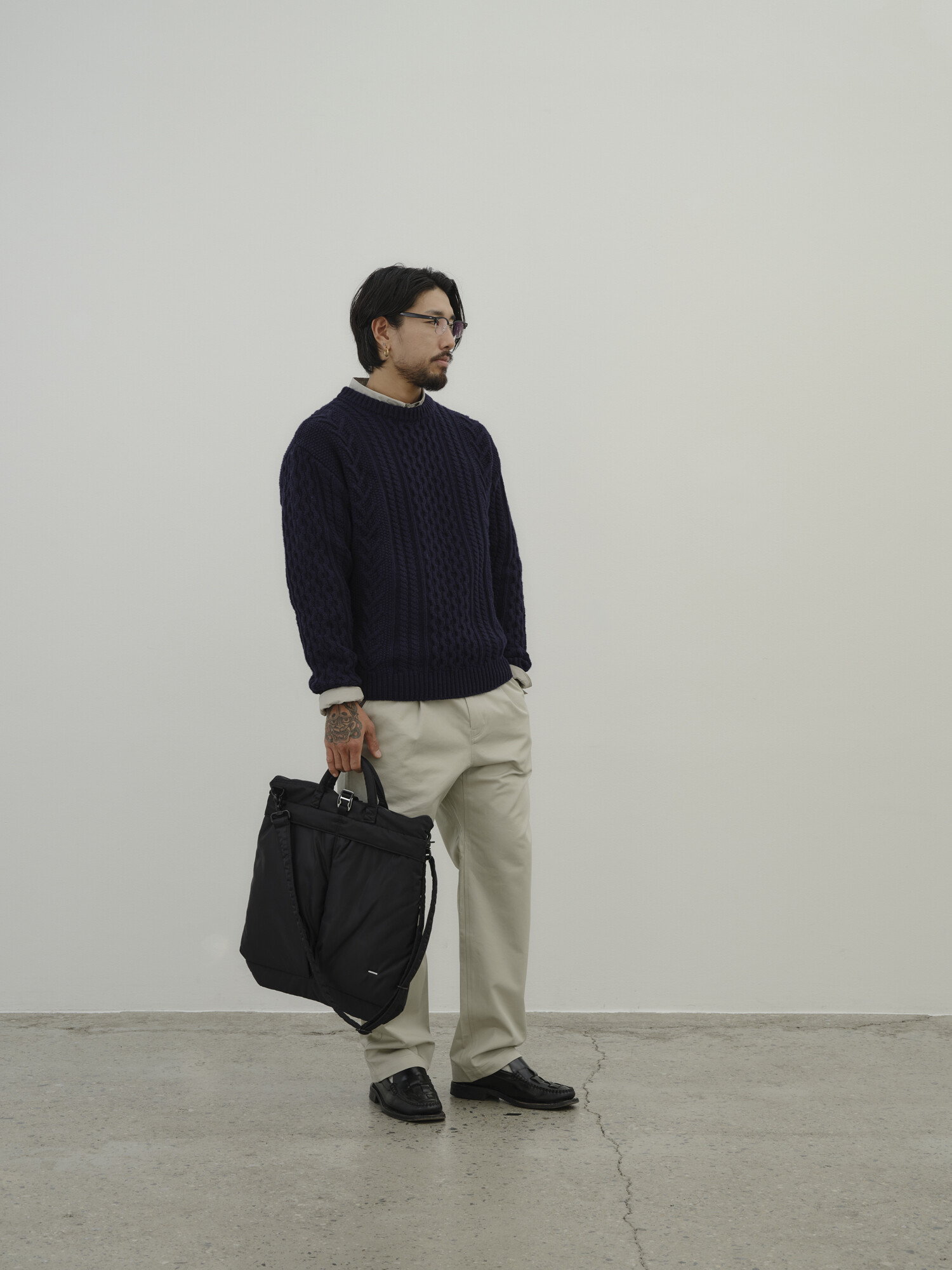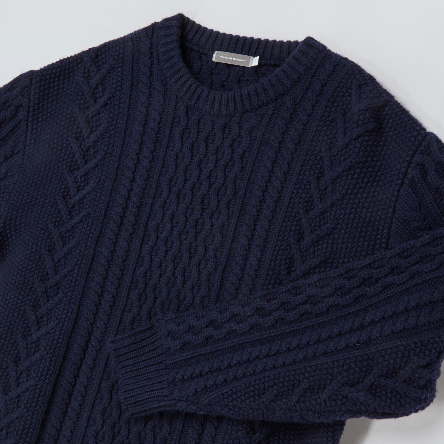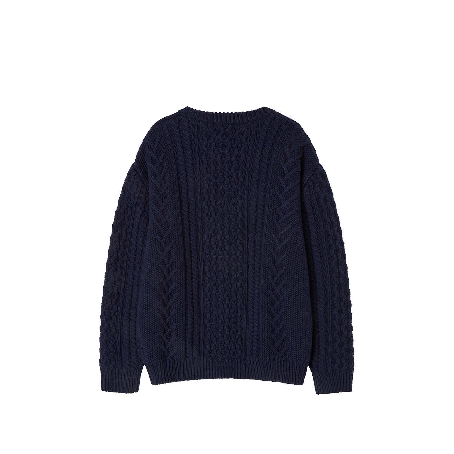 : 파인 울 기반의 F/W시즌용 원사가 사용된 중량감이 있고 두터운 로우 게이지 스웨터입니다. 지난 시즌과 다르게 새로운 케이블 짜임이 적용되었으며 클래식한 패턴으로 피셔맨 스웨터 고유의 느낌을 살렸습니다. 볼륨감 있고 묵직한 조직이 돋보이며 보온성이 뛰어납니다. 고급스러운 성형 편직 및 헤라시, 고급 사시봉제로 마감된 고품질 니트웨어 입니다.