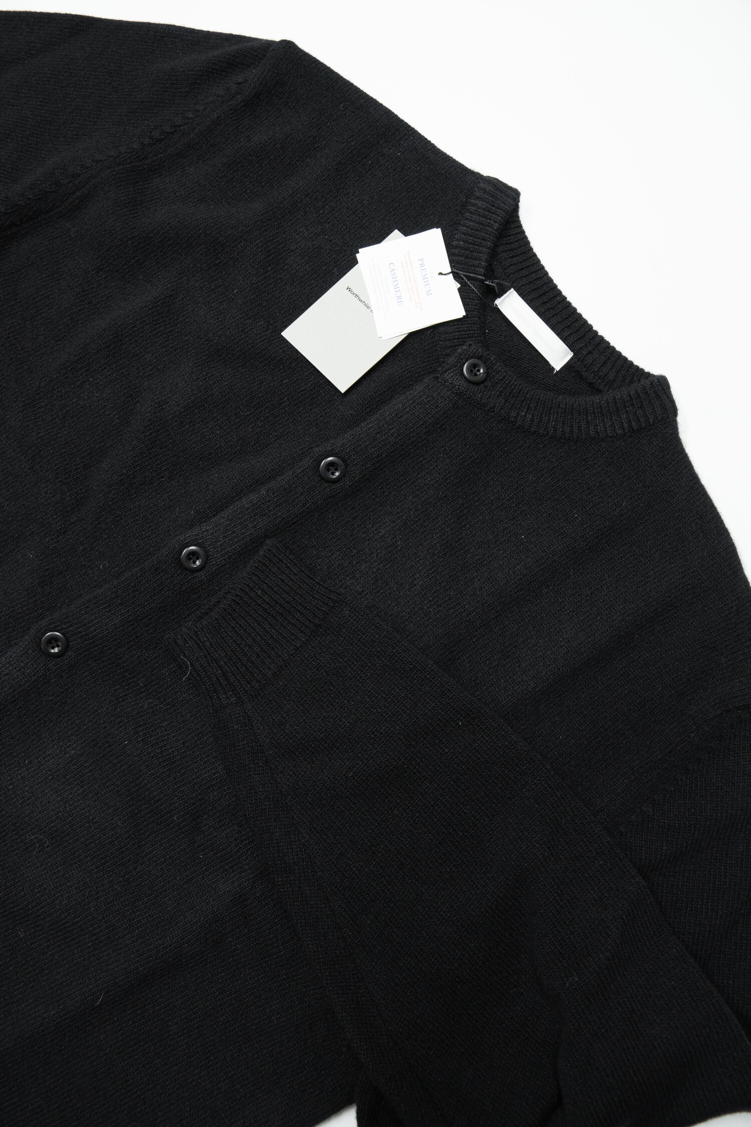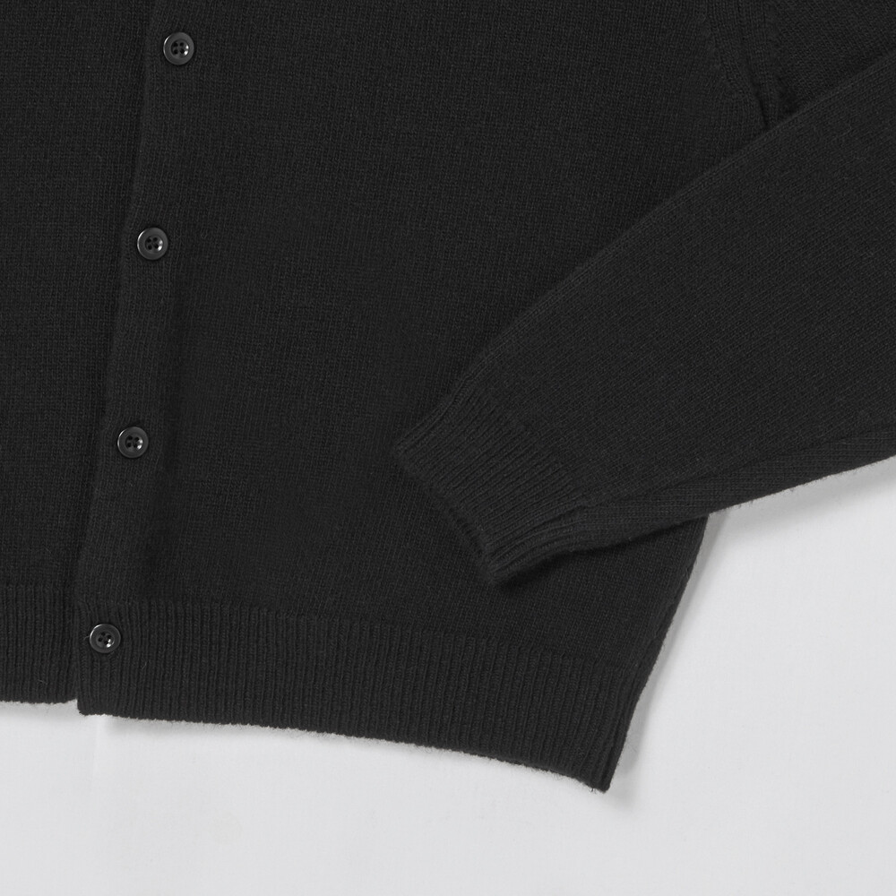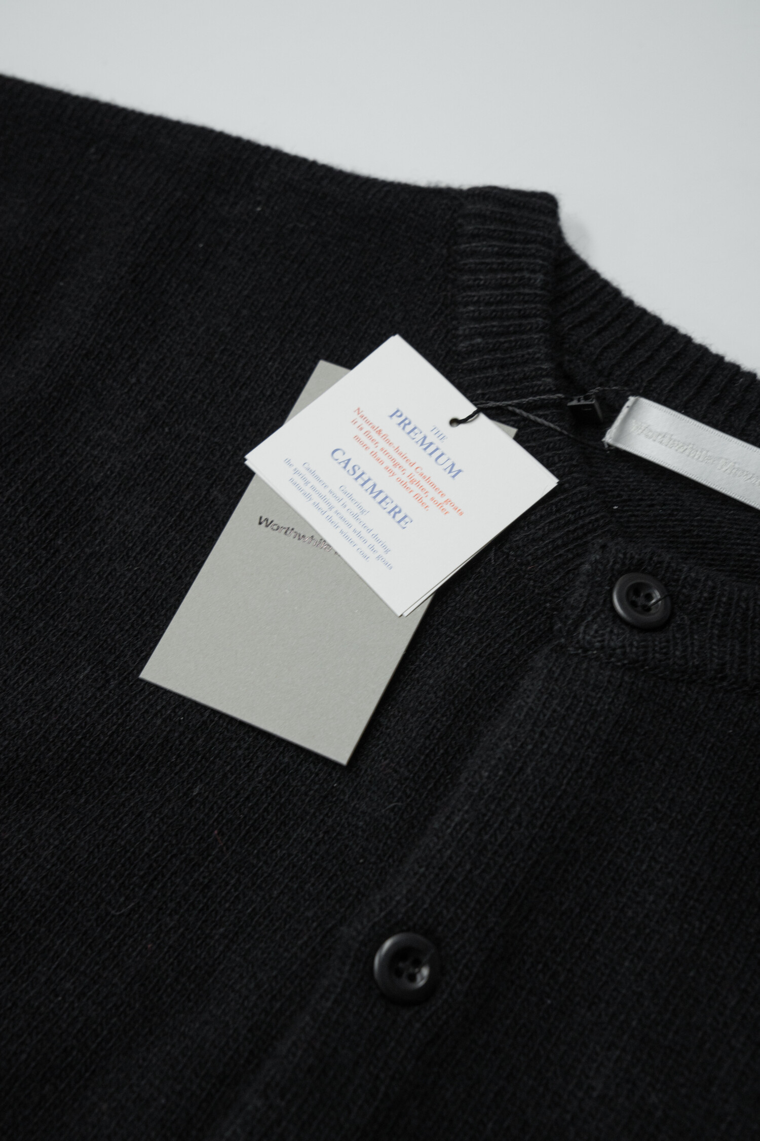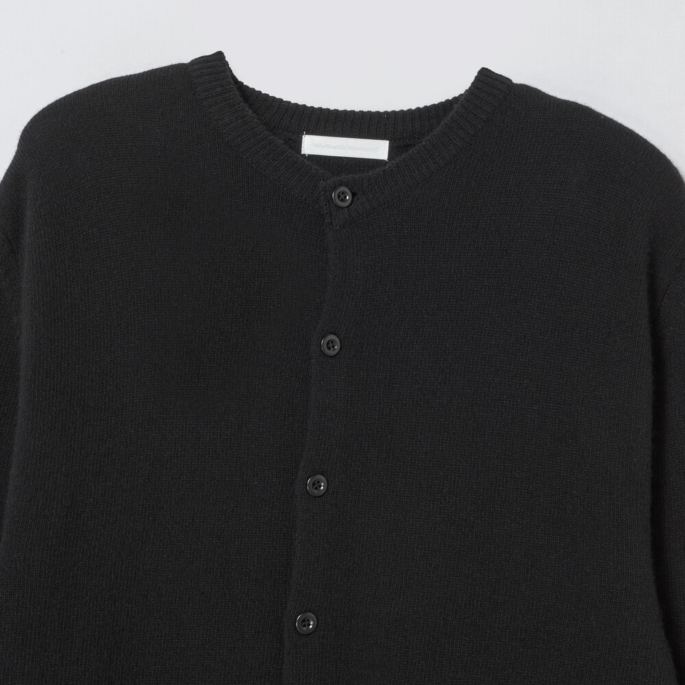 : 고급 테일러드 수트 원단이나 하이엔드 니트웨어에 사용되는 프리미엄 울 소재와 섬세한 광택과 독보적인 촉감을 갖고 있는 캐시미어로 편직한 스탠다드한 핏의 라운드 넥 가디건입니다. 캐시미어와 타즈매니아 울로 구성된 최고급 원사를 사용하여 프리미엄한 베이직 웨어를 만들었습니다. 타즈매니아 울 (Tasmanian Wool)은 세계 최상급 메리노 울 중 하나로, 오직 호주 타즈매니아 섬에서만 생산됩니다. 극도로 미세한 섬유 직경으로 이루어져 있어 압도적인 부드러움을 자랑하며 가볍고 통기성이 뛰어나며, 동시에 탁월한 보온성을 지닌 것이 특징입니다. 알맞은 크기의 천연 너트 단추는 원사 컬러에 맞게 직접 염색하여 사용하였고, 12게이지 1합의 짜임으로 적당한 두께를 갖고 있어 간절기 아우터 혹은 혹한기 이너로 활용하시기 좋습니다. 어깨의 뒷 면에는 3줄의 짜임을 넣어 라인을 강조하는 동시에 브랜드에서 추구하는 위트있는 구조적 디자인을 보여줍니다.