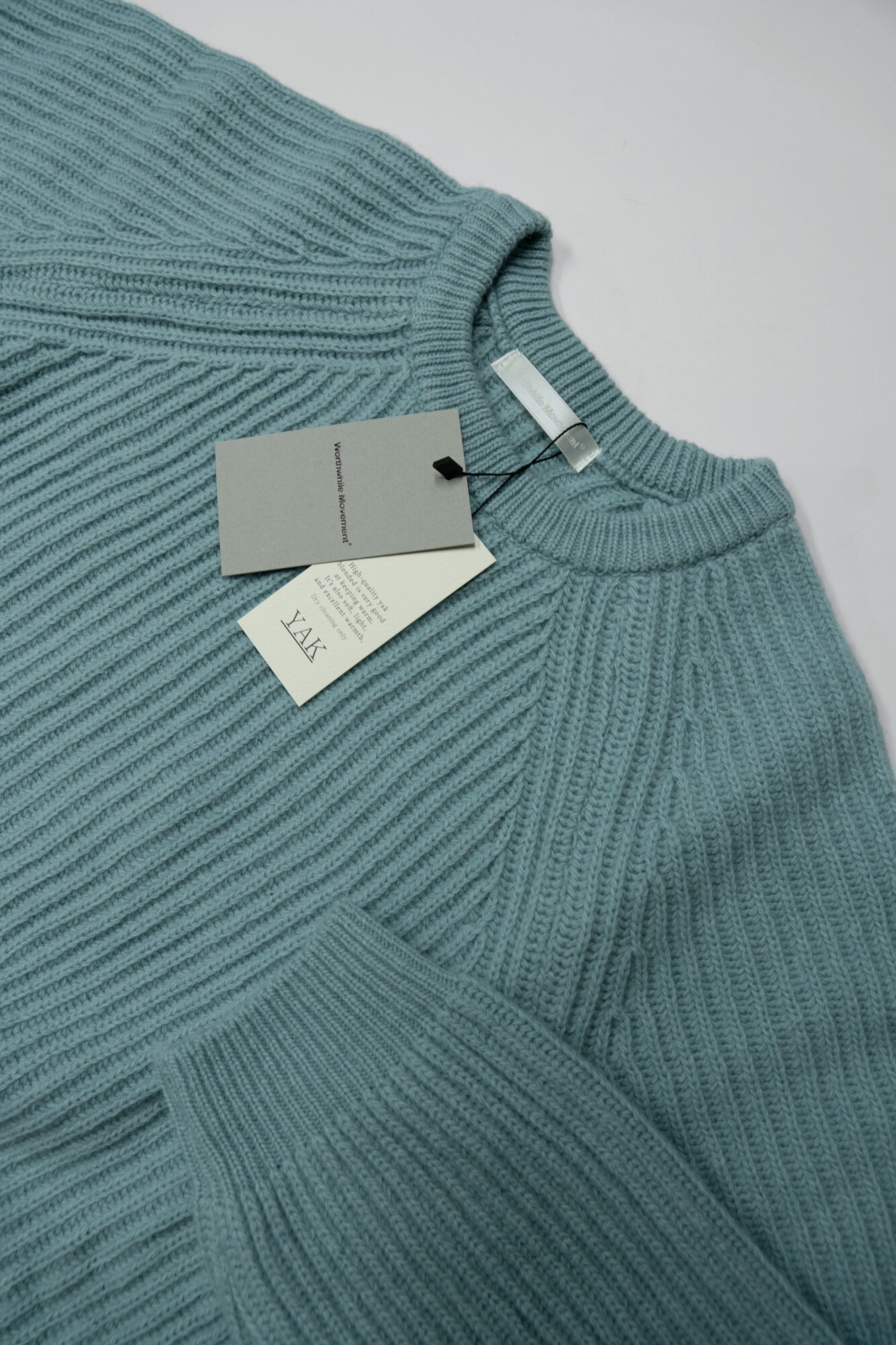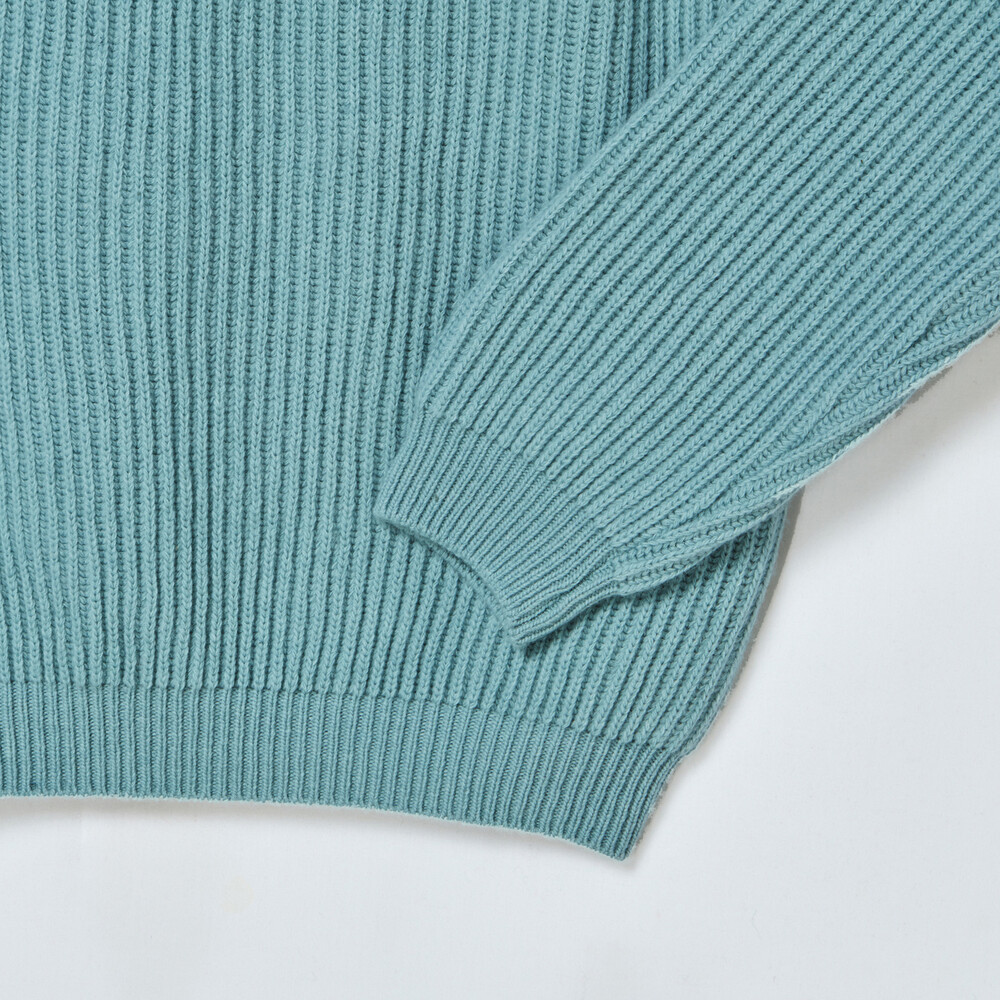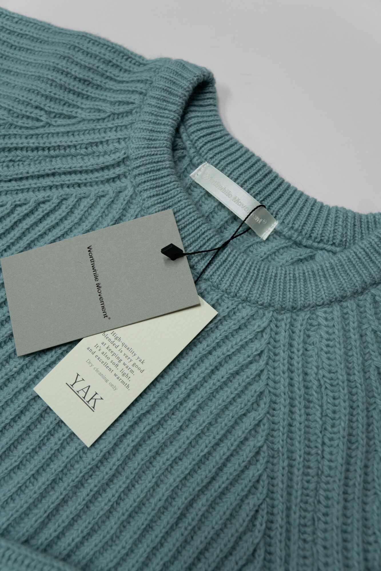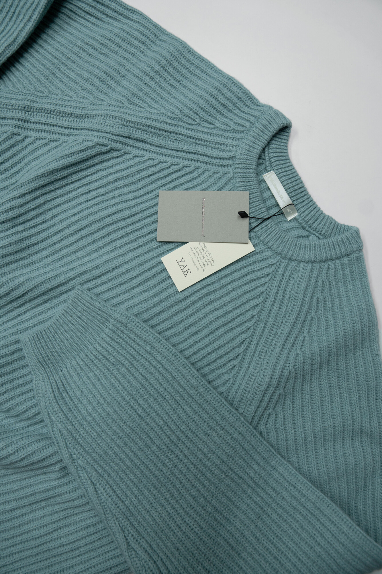 : 티베트 고원, 몽골, 네팔 등 고산지대 야크의 속털에서 채취한 야크 울과 메리노 울이 70% 구성된 리브드 스웨터입니다. 매년 디벨롭해서 출시하는 시그니처 제품이며, 올해는 조금 더 크롭한 기장감으로 연출하여 경쾌한 실루엣이 연출되니다. 볼륨감이 있는 스웨터이지만 가볍고 보온성이 우수한 것이 장점입니다. 특히 혹독한 기후에서 자라 압도적인 보온성과 자연스러운 탄성을 가진 야크 울은 일반적인 울보다 촉감이 부드럽고 캐시미어와 유사한 질감을 갖고 있어 피부가 민감하신 분들도 충분히 착용하실 수 있습니다. 7게이지 2합으로 적당히 두툼한 두께의 스웨터이기 때문에 한겨울까지 충분히 활용하실 수 있습니다.