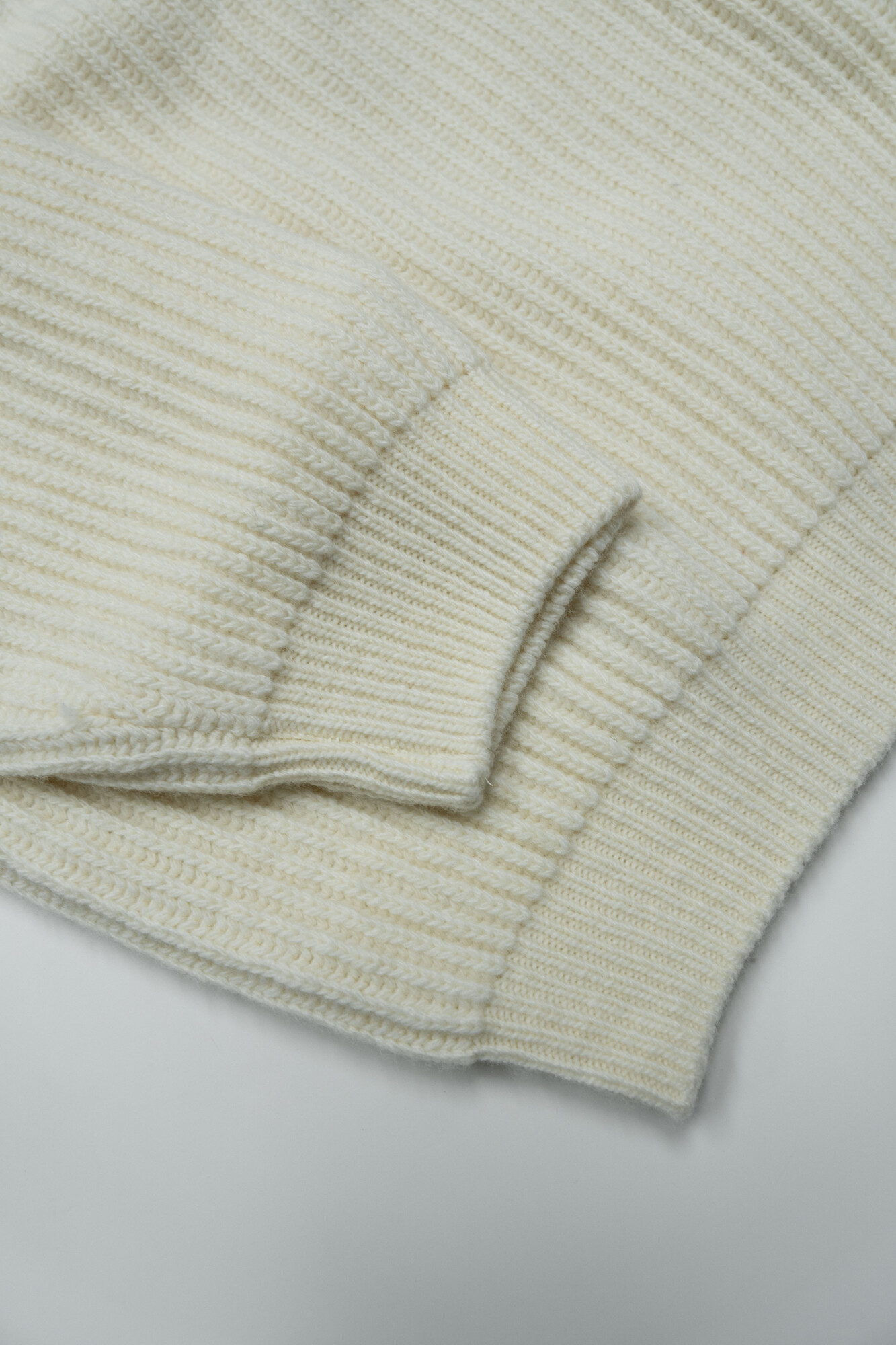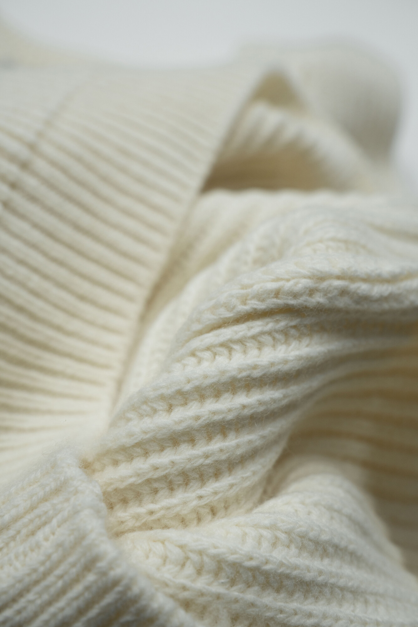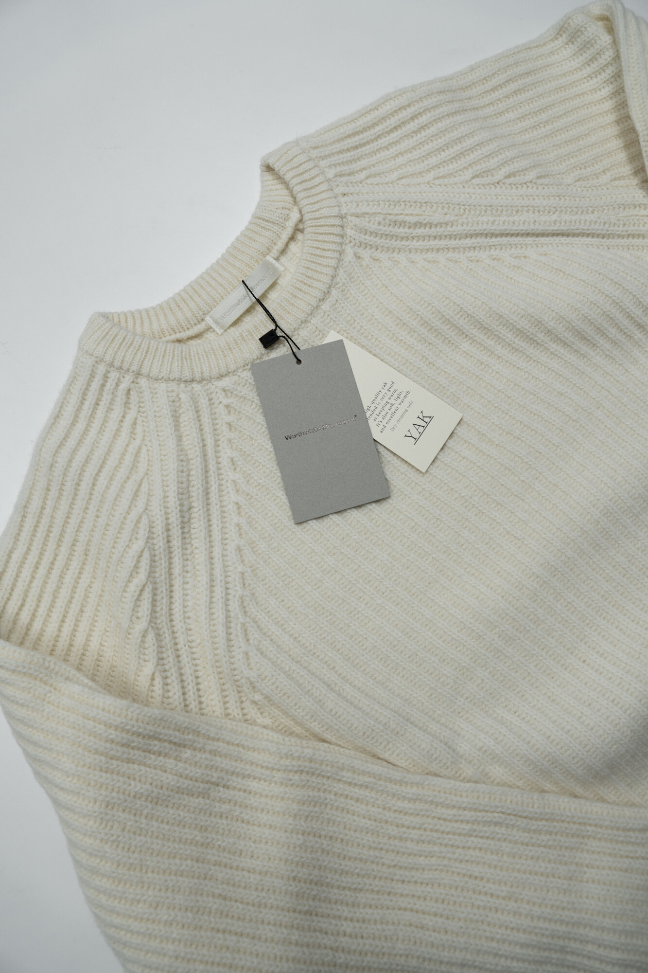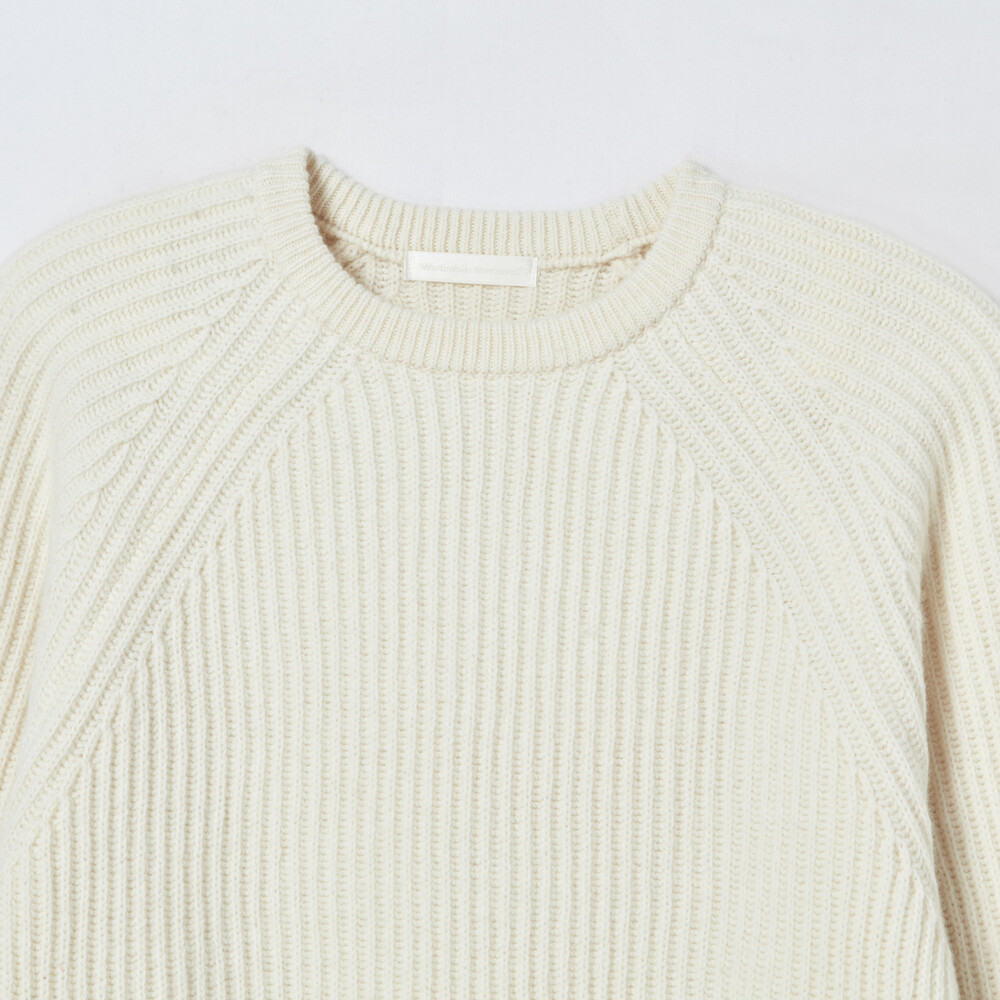 : 티베트 고원, 몽골, 네팔 등 고산지대 야크의 속털에서 채취한 야크 울과 메리노 울이 70% 구성된 리브드 스웨터입니다. 매년 디벨롭해서 출시하는 시그니처 제품이며, 올해는 조금 더 크롭한 기장감으로 연출하여 경쾌한 실루엣이 연출되니다. 볼륨감이 있는 스웨터이지만 가볍고 보온성이 우수한 것이 장점입니다. 특히 혹독한 기후에서 자라 압도적인 보온성과 자연스러운 탄성을 가진 야크 울은 일반적인 울보다 촉감이 부드럽고 캐시미어와 유사한 질감을 갖고 있어 피부가 민감하신 분들도 충분히 착용하실 수 있습니다. 7게이지 2합으로 적당히 두툼한 두께의 스웨터이기 때문에 한겨울까지 충분히 활용하실 수 있습니다.