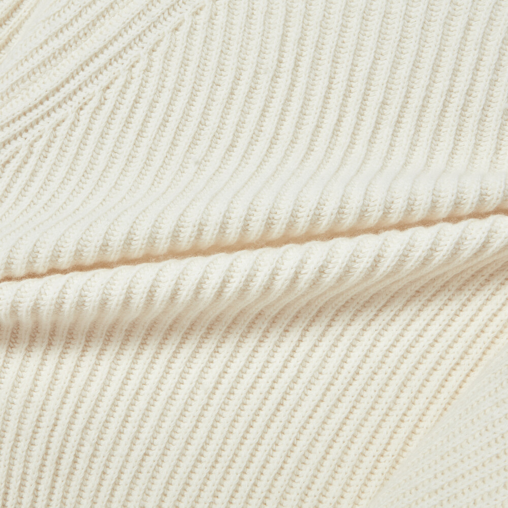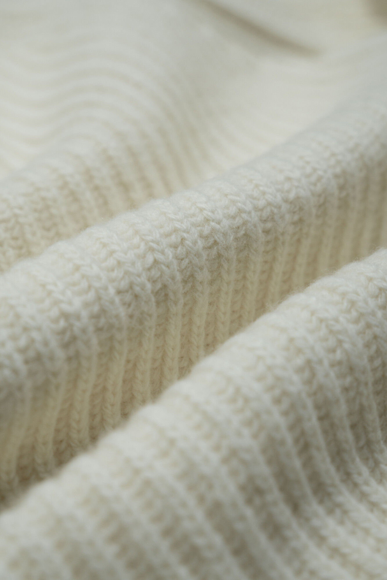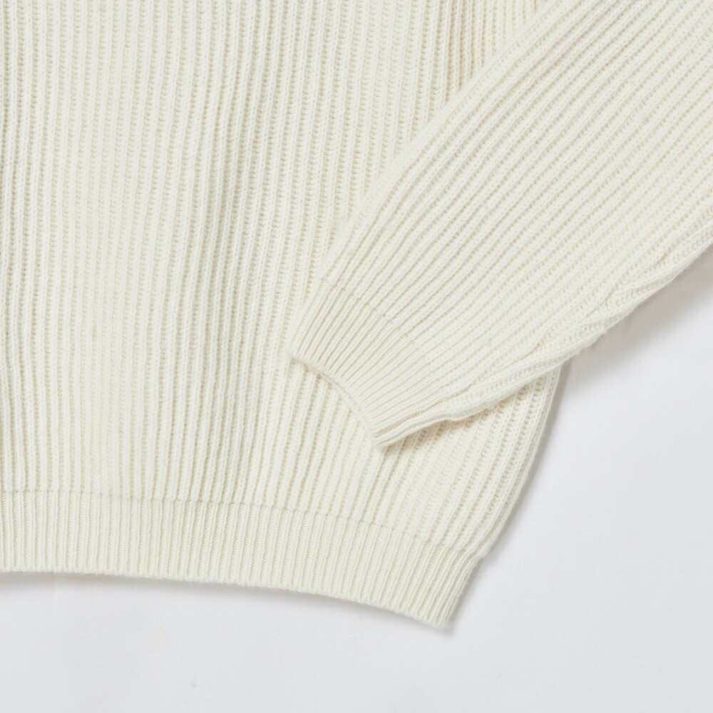 제작 방식에서는 편직물을 단순히 커팅하는 방식이 아닌, 편직과정에서 필요한 형태(어깨선, 암홀, 넥라인 등)를 미리 성형하면서 뜨는 성형편직 (Fully Fashioned Knitting) 을 통해 제작하여 몸에 자연스럽게 맞는 실루엣과 매끄러운 라인을 확인하실 수 있습니다. 또한 시접 부분은 사시 기계를 통해 코와 코를 맞닿아 연결하는 사시 봉제를 적용한 고급 니트웨어입니다. 유행을 타지 않고, 오랜 시간 입어도 변형이 적은 좋은 니트가 주는 가치를 느껴보시기 바랍니다.
