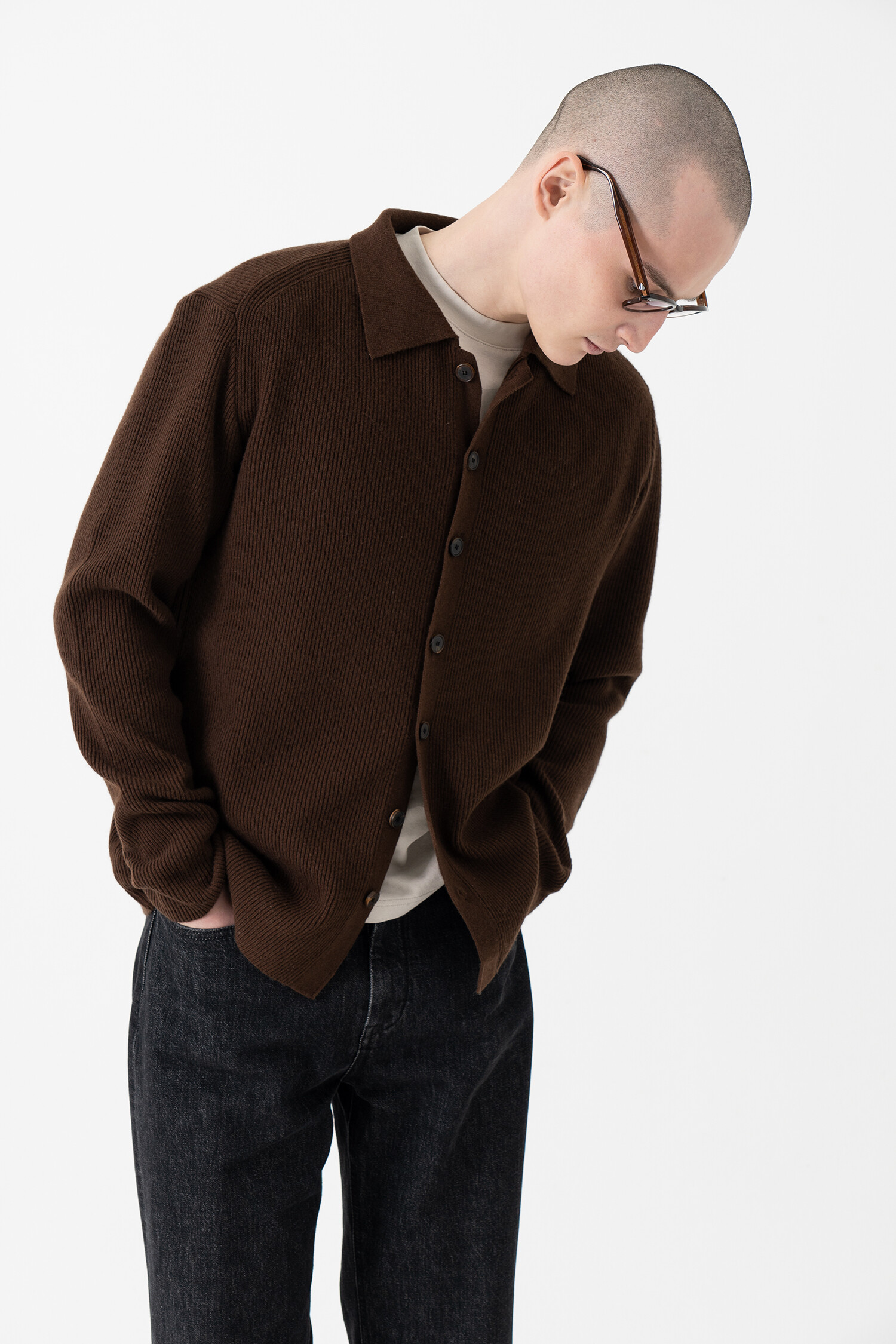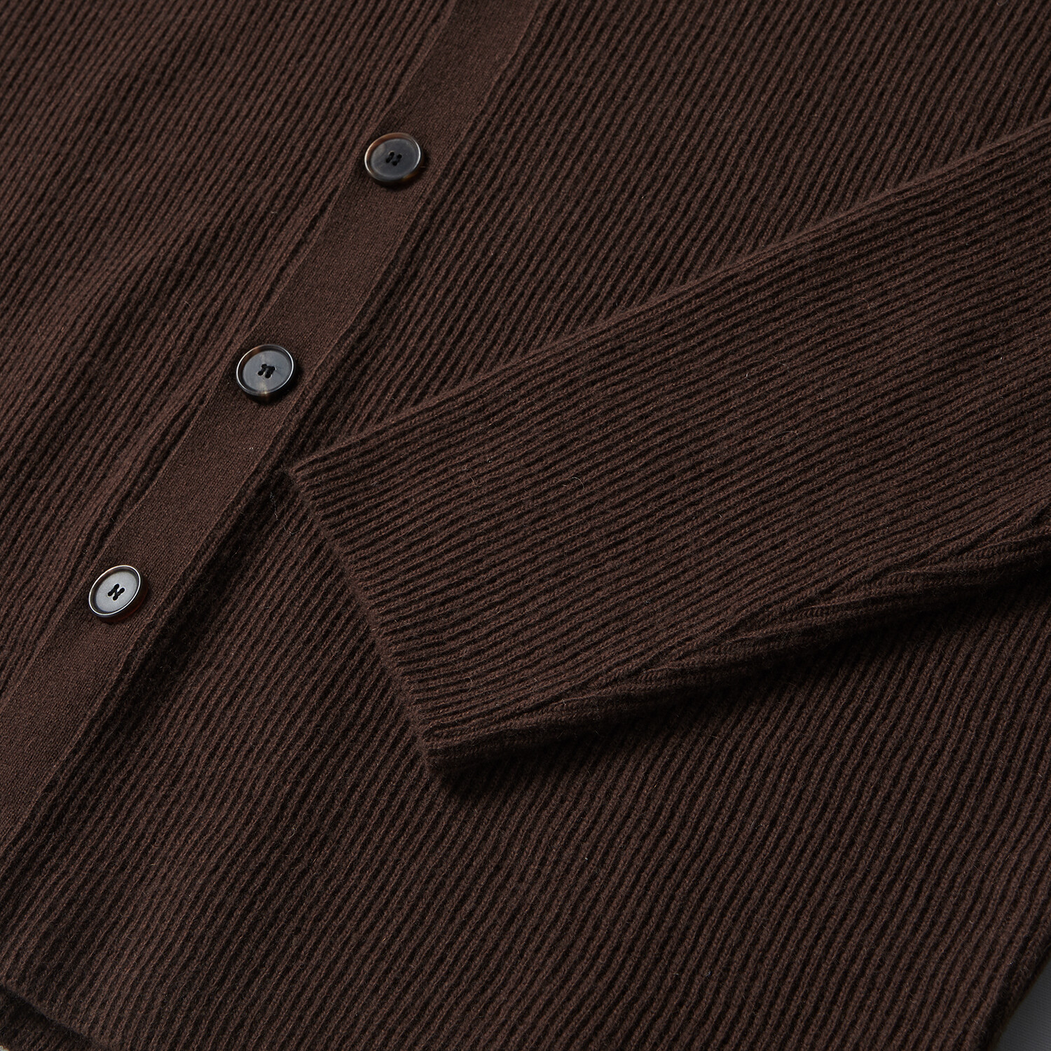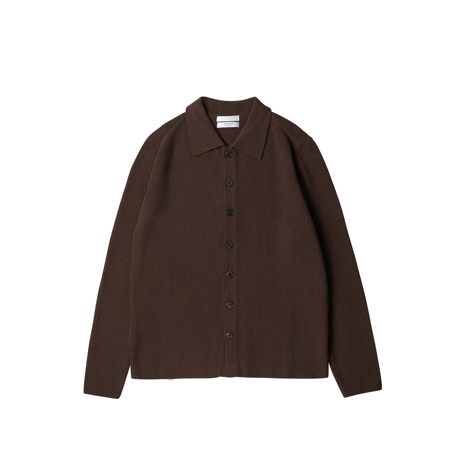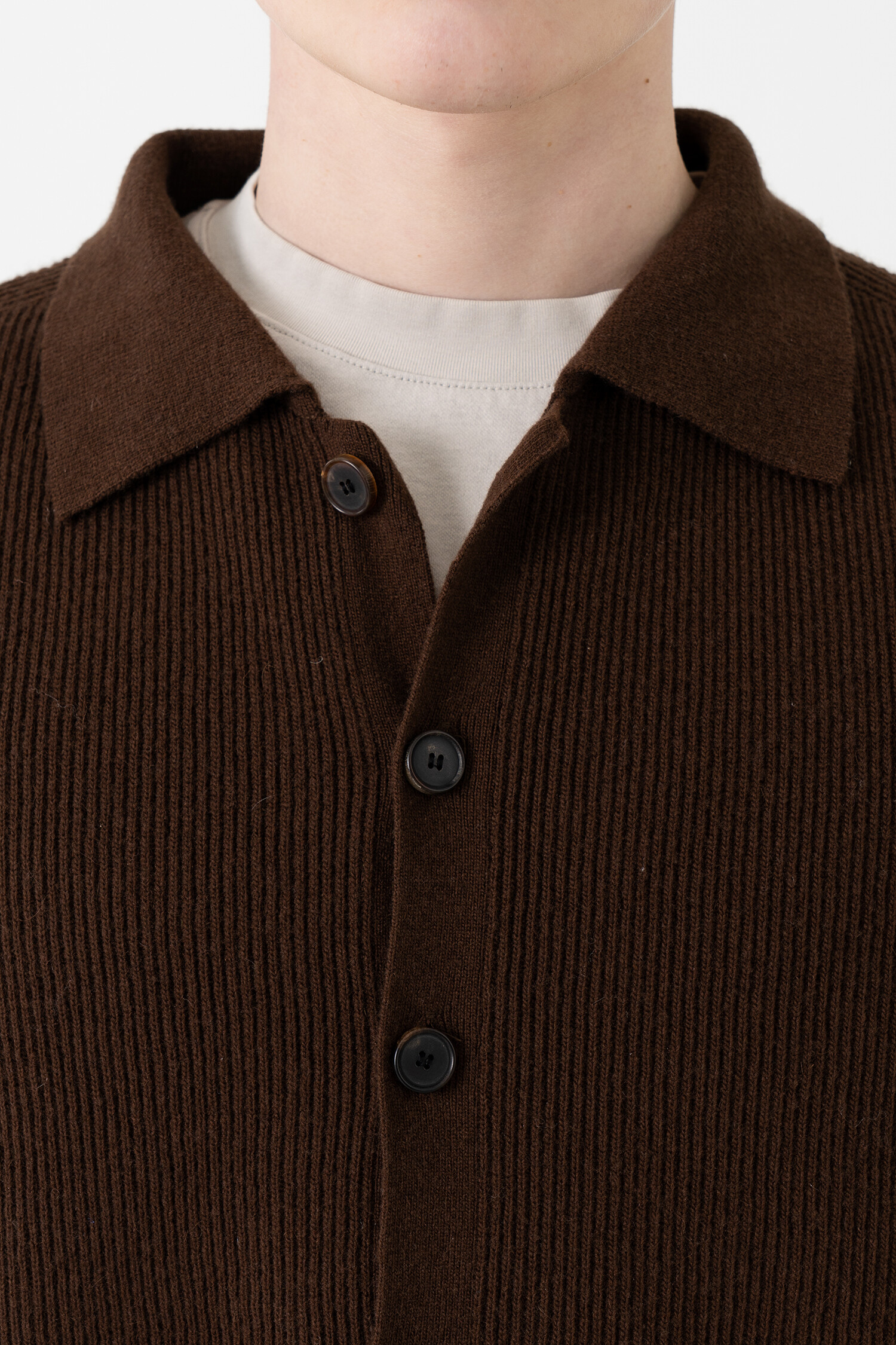 SHOULDER RIB COLLAR CARDIGAN (Dark brown)