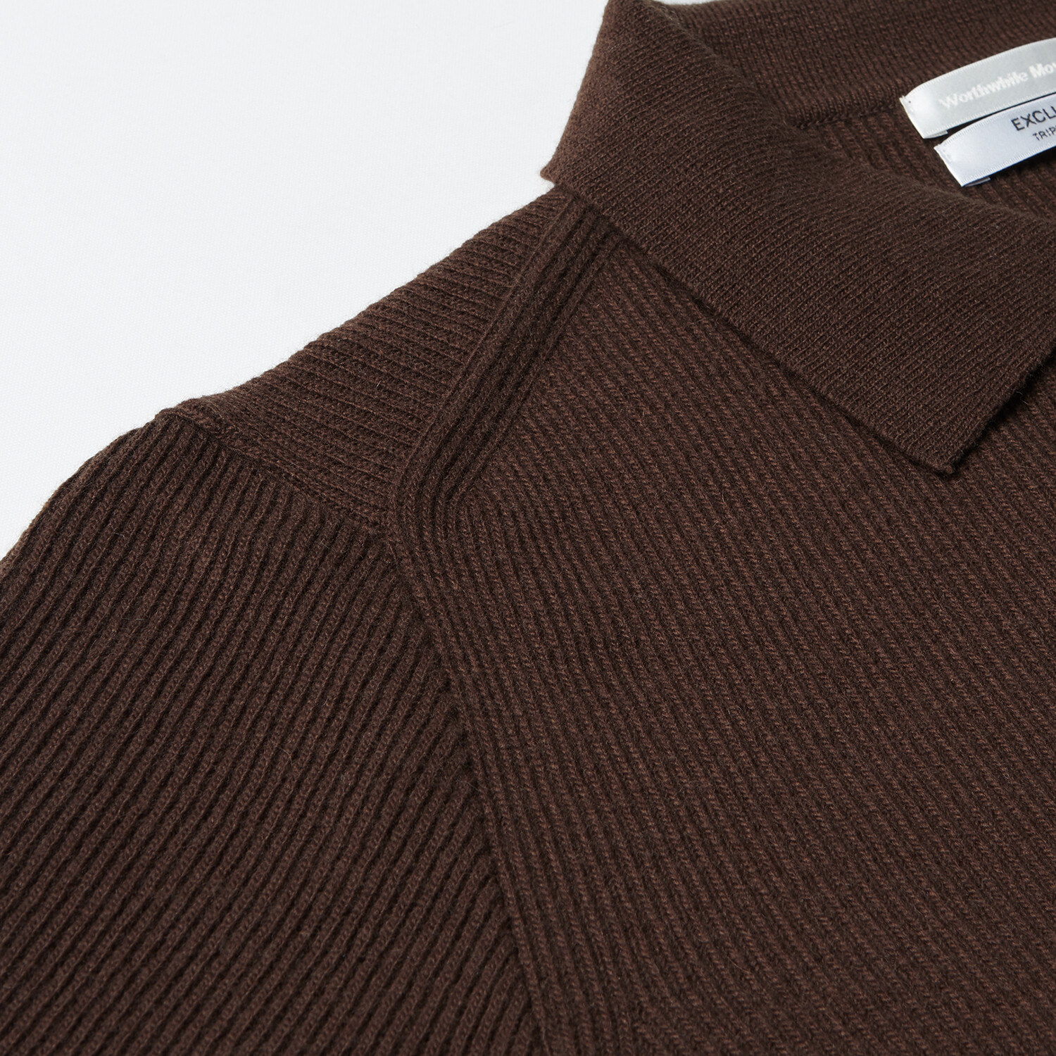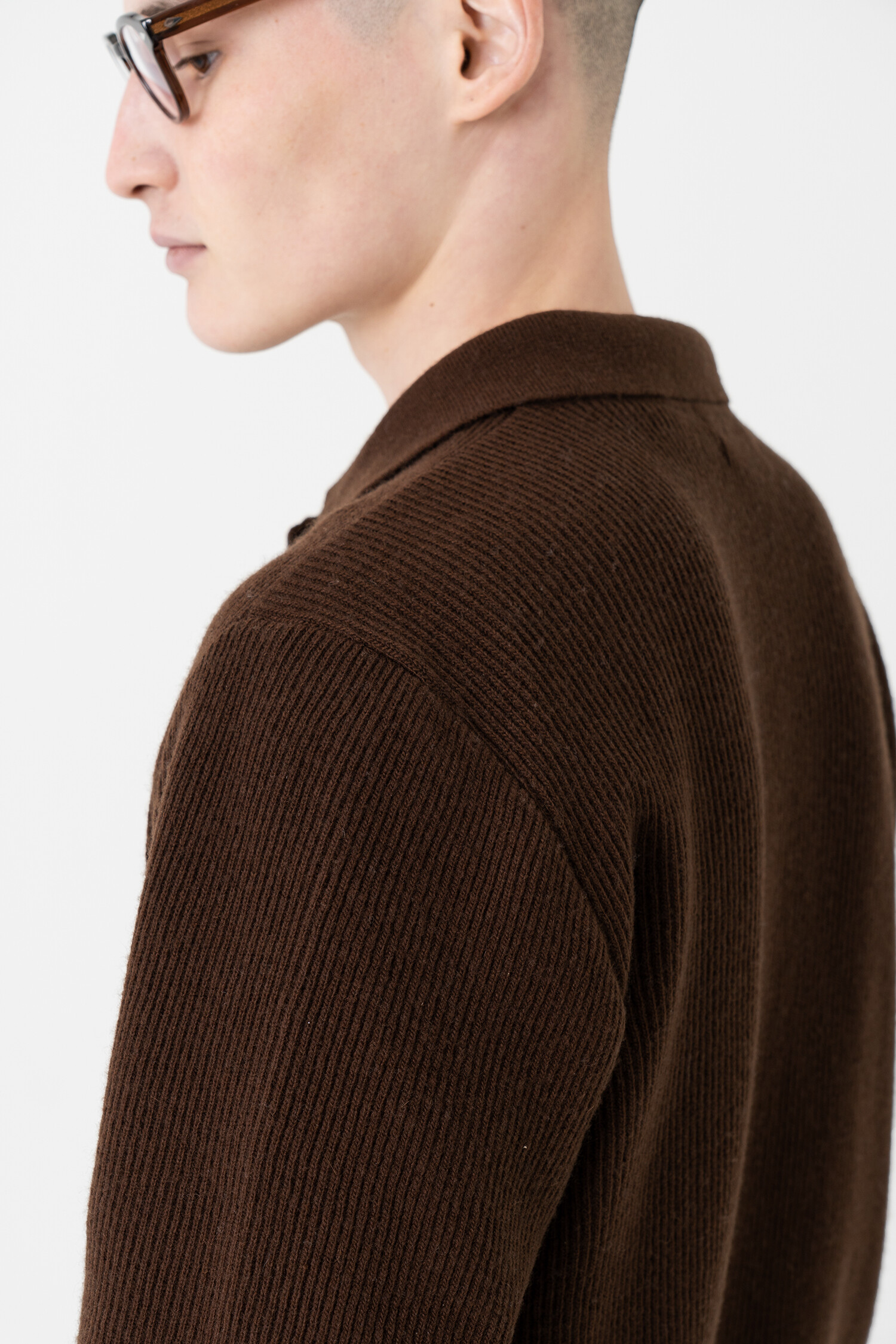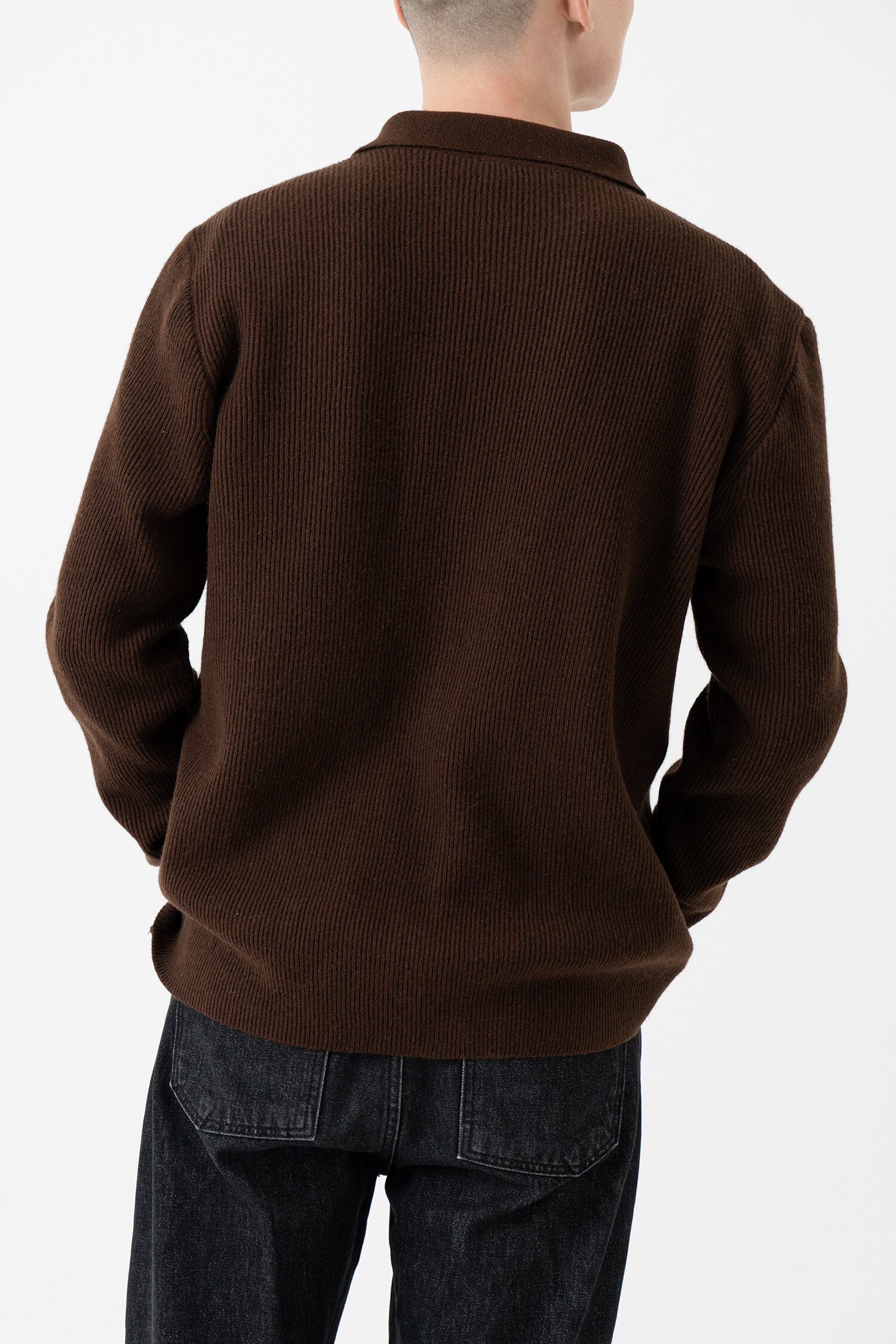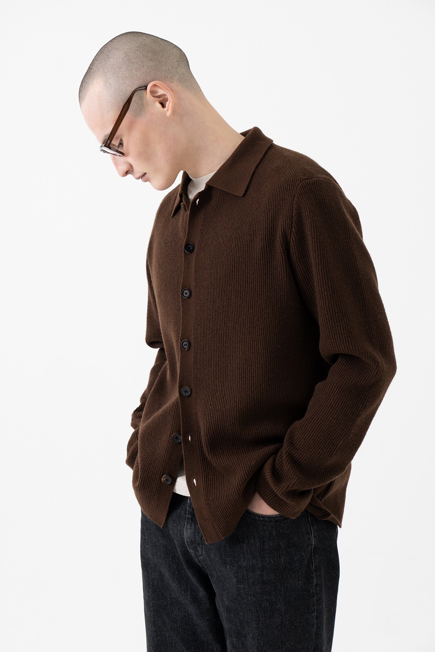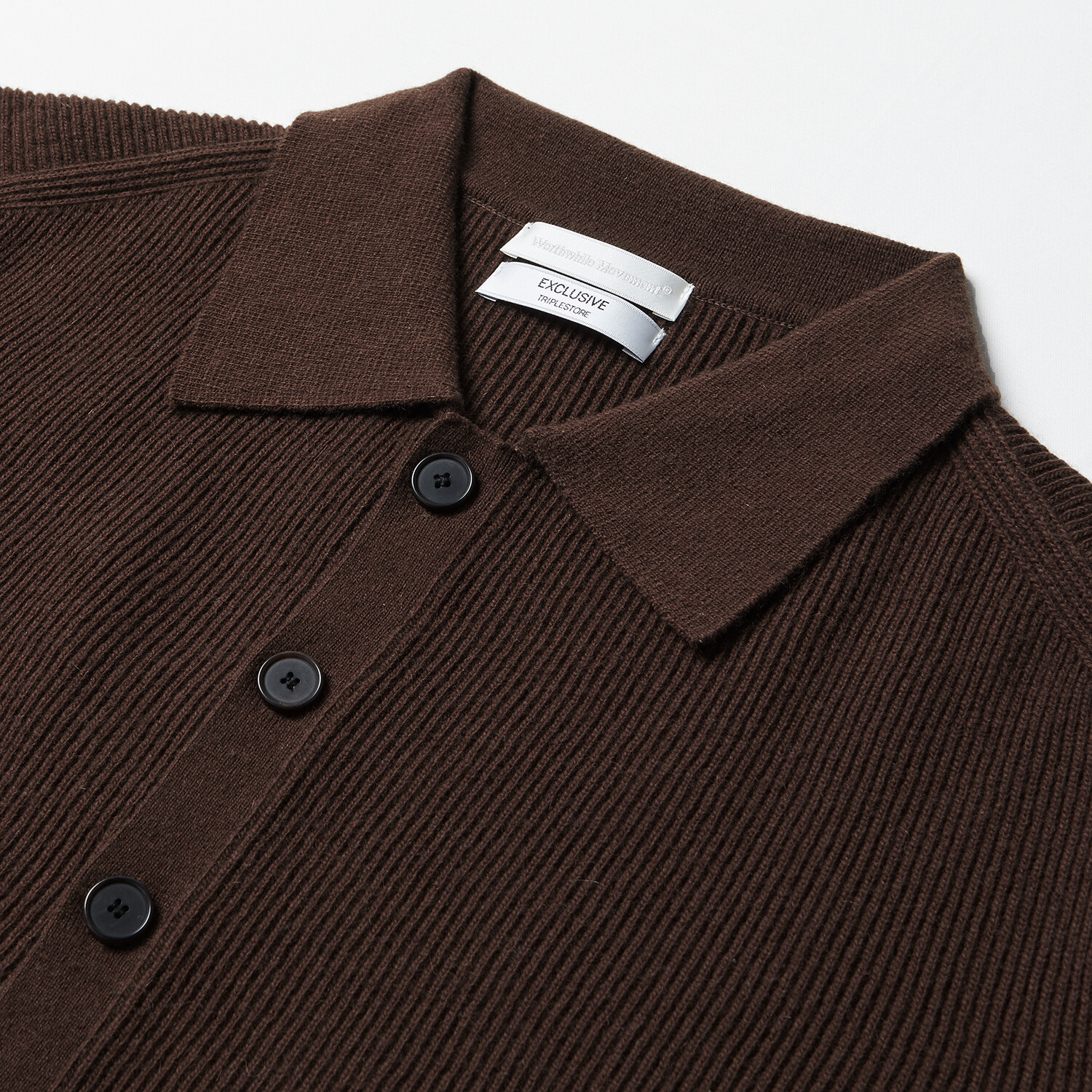 SHOULDER RIB COLLAR CARDIGAN (Dark brown)