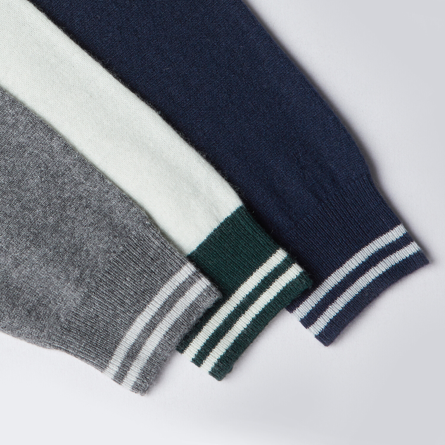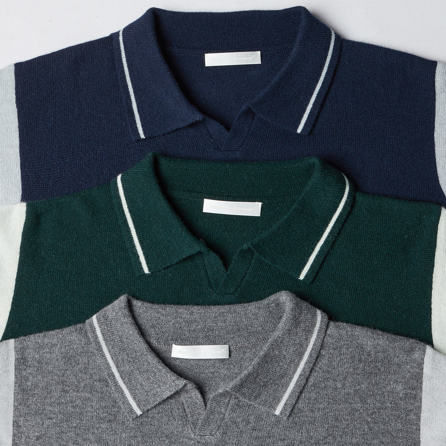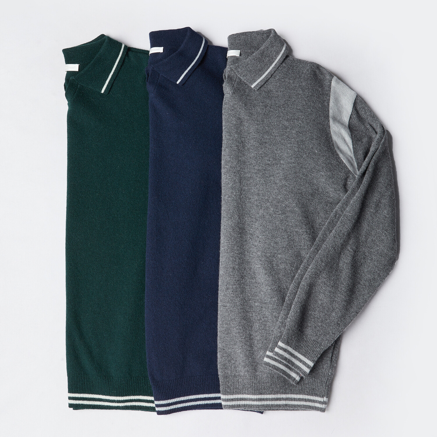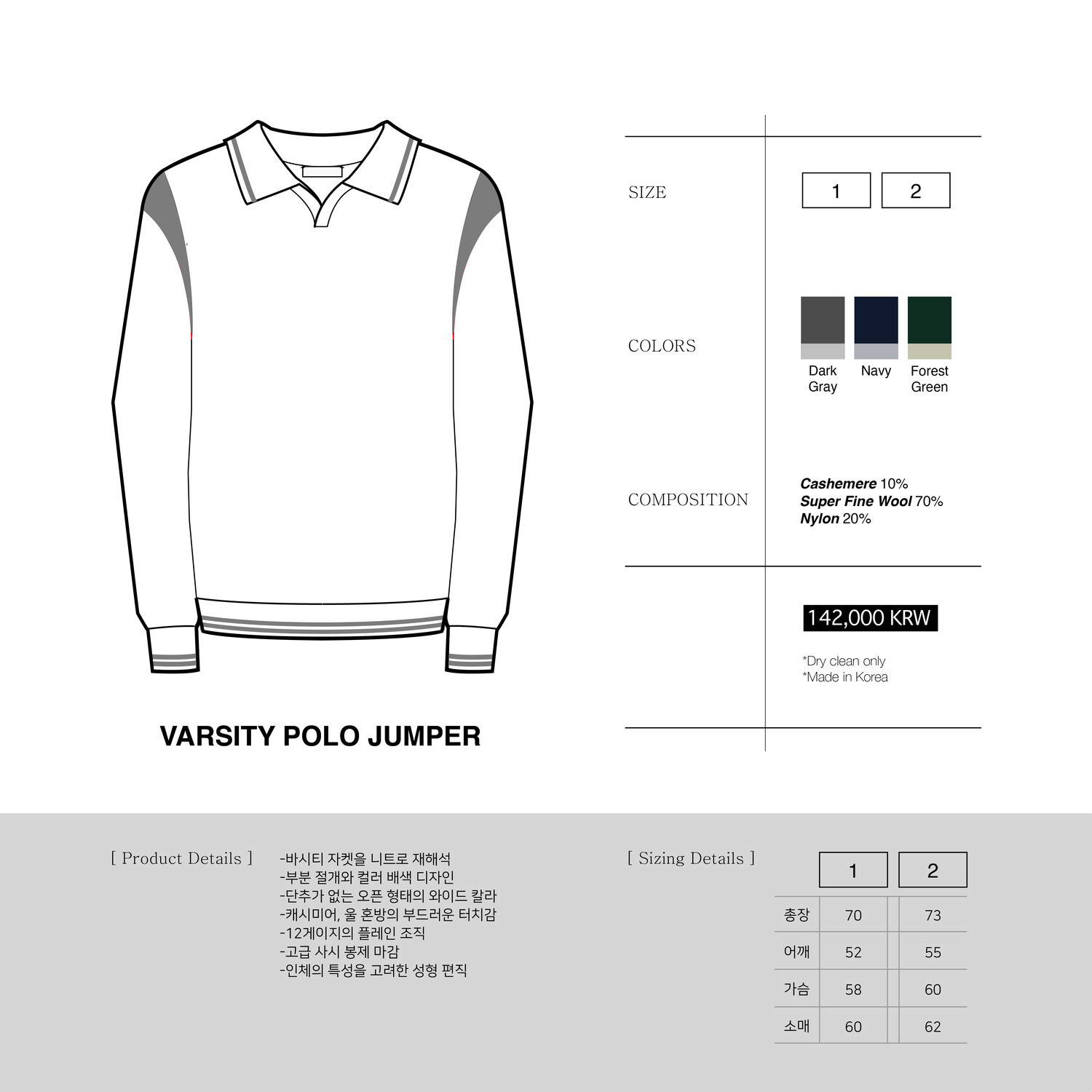 ▶ 스타디움 점퍼는 원래 스포츠 선수들이 경기장 내에서 입던 유니폼 중 하나였습니다. 대학교의 야구 대표팀에서 처음 착용하면서 그 학교의 이니셜을 패치로 달아서 입기 시작했고 대학교(University)를 딴 ‘바시티 자켓(Varsity Jacket)’이라고도 불리게 되었습니다. 일반적으로 목과 손목, 허리둘레에 립 밴드가 있고 스트라이프 패턴이 들어가 있거나 어깨에 절개를 만들어 가죽 소재로 변경하기도 합니다. 또한 몸판에는 각종 문자나 패치가 있습니다. 바시티 폴로 점퍼는 이러한 바시티 자켓을 폴로 셔츠 형태의 니트로 재해석한 디자인입니다. 불필요한 자수나 패치 등은 제거하고 바시티 자켓의 외형적인 특징과 절개, 직관적인 라인들만 살렸으며 특히 컬러 배색을 통해 그 느낌을 현대적이고 무겁지 않게 풀어냈습니다. 캐시미어와 슈퍼 파인 울이 혼방된 원사로 제작하여 터치감이 우수하고 적당한 두께감으로 초가을부터 봄까지 폭넓게 활용 가능합니다. 단추가 없는 오픈 형태의 와이드 칼라로 이너를 레이어링해서 착용하셔도 좋고 단품으로 입으시기에도도 훌륭한 제품입니다. 12게이지, 싱글조직으로 설계되었으며 인체의 특성을 고려한 성형편직과 고급 사시봉제로 마감했습니다.