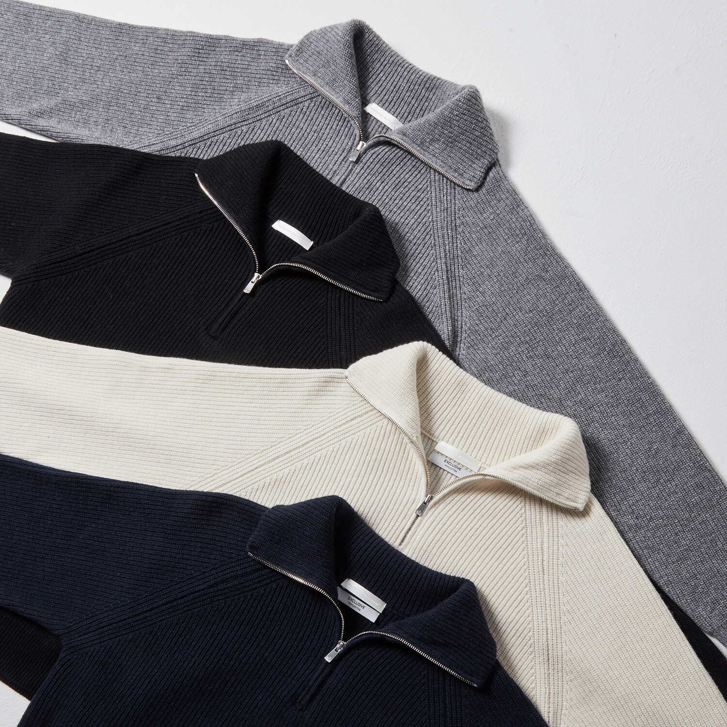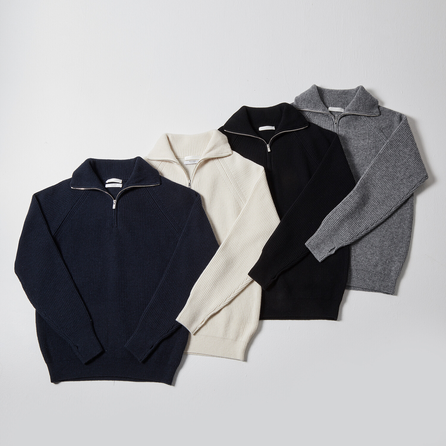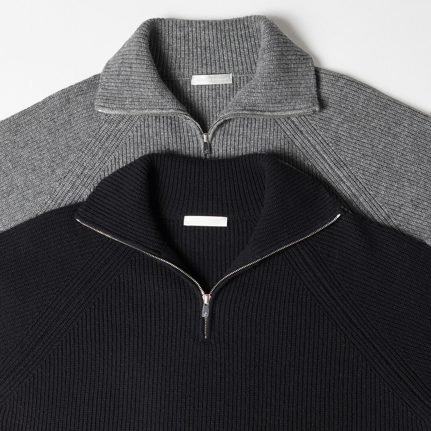 ▶ 스탠다드한 타입의 하프 집업 스타일로 군더더기 없이 성숙한 스타일의 제품이며 래글런 슬리브와 구조적인 립 라인이 돋보입니다. 소매에 있는 핑거홀을 통해 워머로서 활용하실 수 있고 손가락을 빼지 않고 착용하신다면 약 5cm 정도를 롤업하여 입어도도 좋습니다. 캐시미어와 슈퍼 파인 울 베이스의 하이 퀄리티 원사를 사용하여 털 뭉침이나 날림이 덜하고 맨살에 입어도 부드럽고 편안한 터치감을 느끼실 수 있습니다. 전체적인 실루엣은 넉넉하게 유지하면서 길지 않은 기장감으로 이너를 레이어드 하기에도 좋고 다양한 팬츠와의 조합도 훌륭합니다. 적절한 두께감을 갖고 있는 니트웨어로 이너와 아우터로 모두 착용 가능하며 간절기에는 티셔츠나 셔츠 위 아우터로, 혹한기에는 패딩이나 코트의 이너로 활용하면 좋습니다. 또한 지퍼를 끝까지 잠궜을 때 높게 올라오는 네크라인과 지퍼를 내렸을 때 만들어지는 와이드한 칼라 모양을 통해 다양한 스타일링이 가능합니다. 지퍼는 고가의 YKK의 프리미엄 'EXCELLA®'를 사용하여 부드럽고 편안한 사용감을 느끼실 수 있습니다. 오랜시간 곁에 두고 착용할 수 있는 니트입니다.