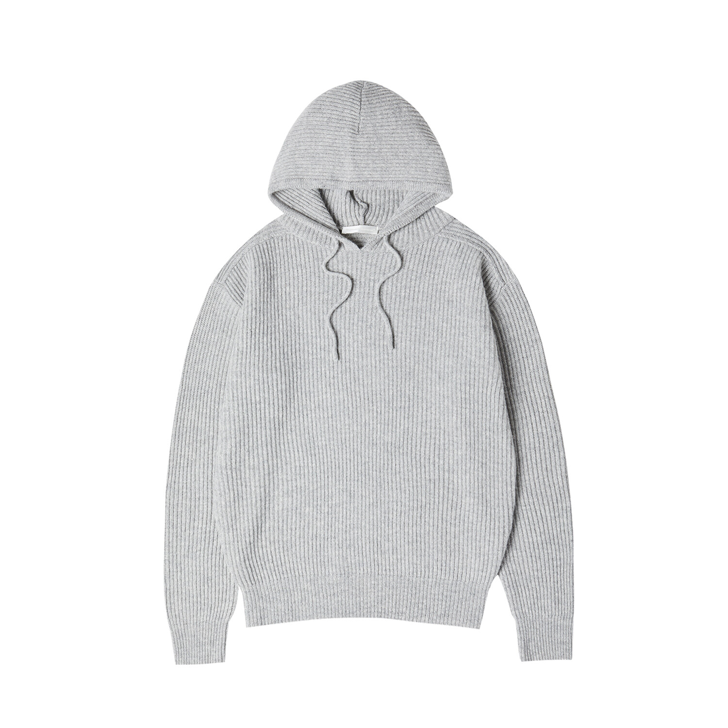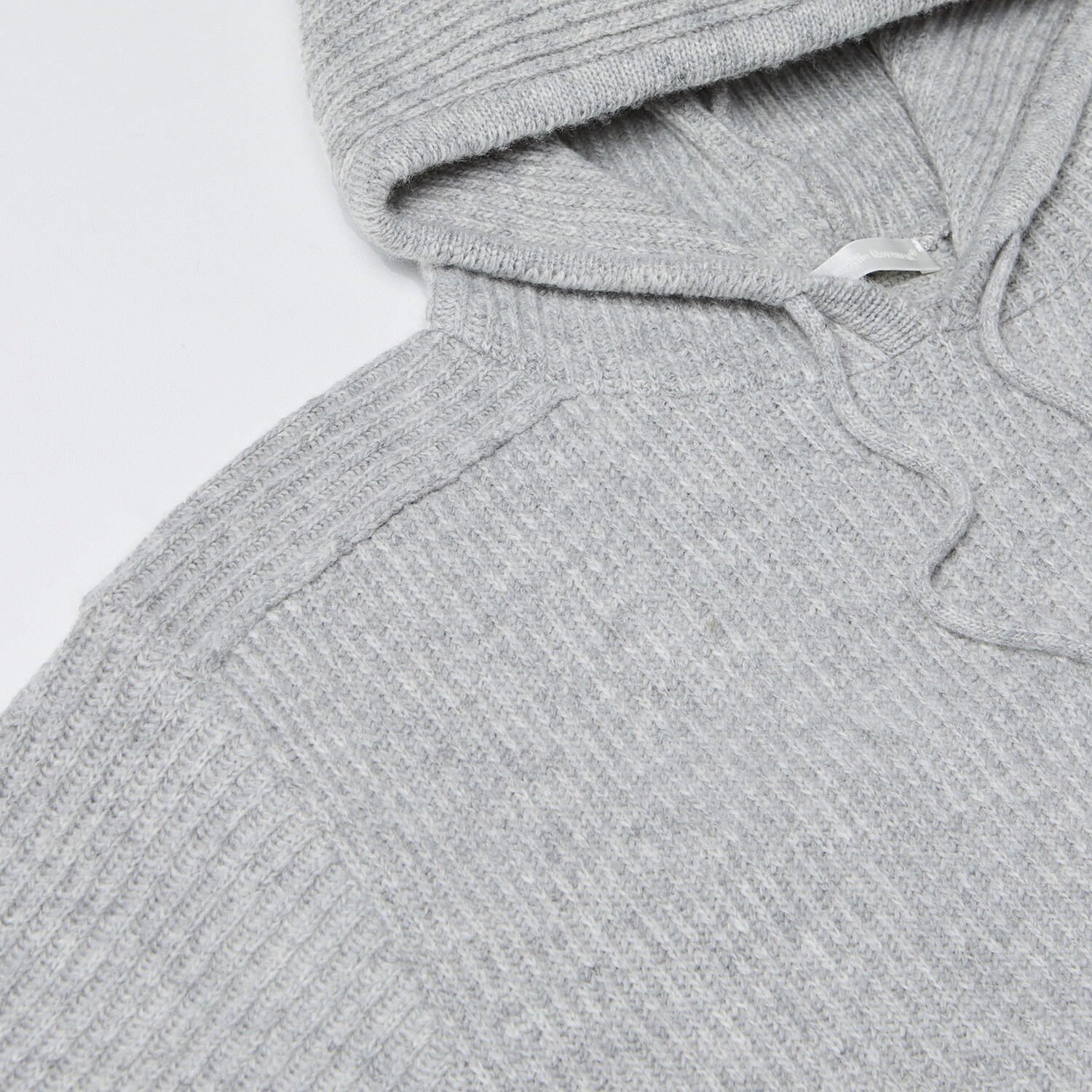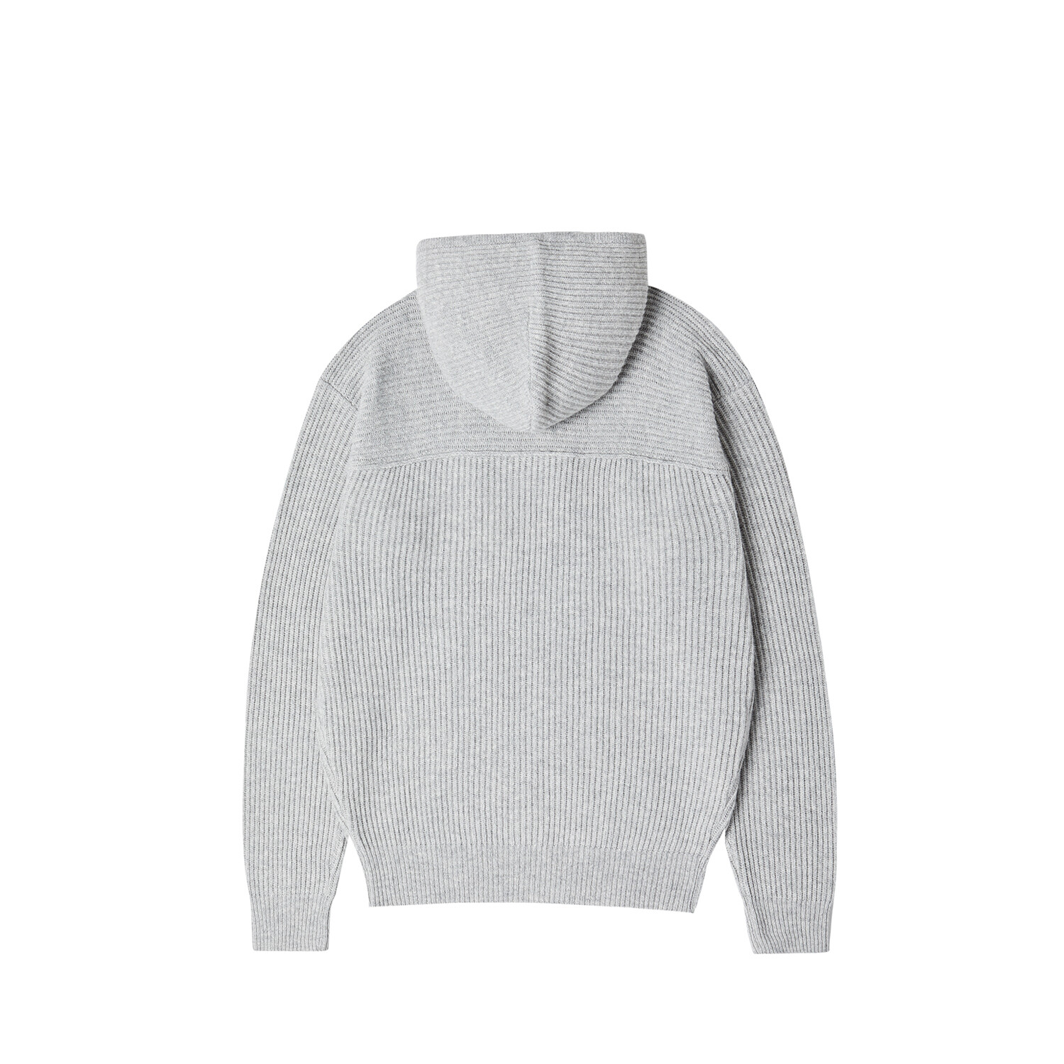 RIBBED YOKE KNIT HOODIE (Light gray)