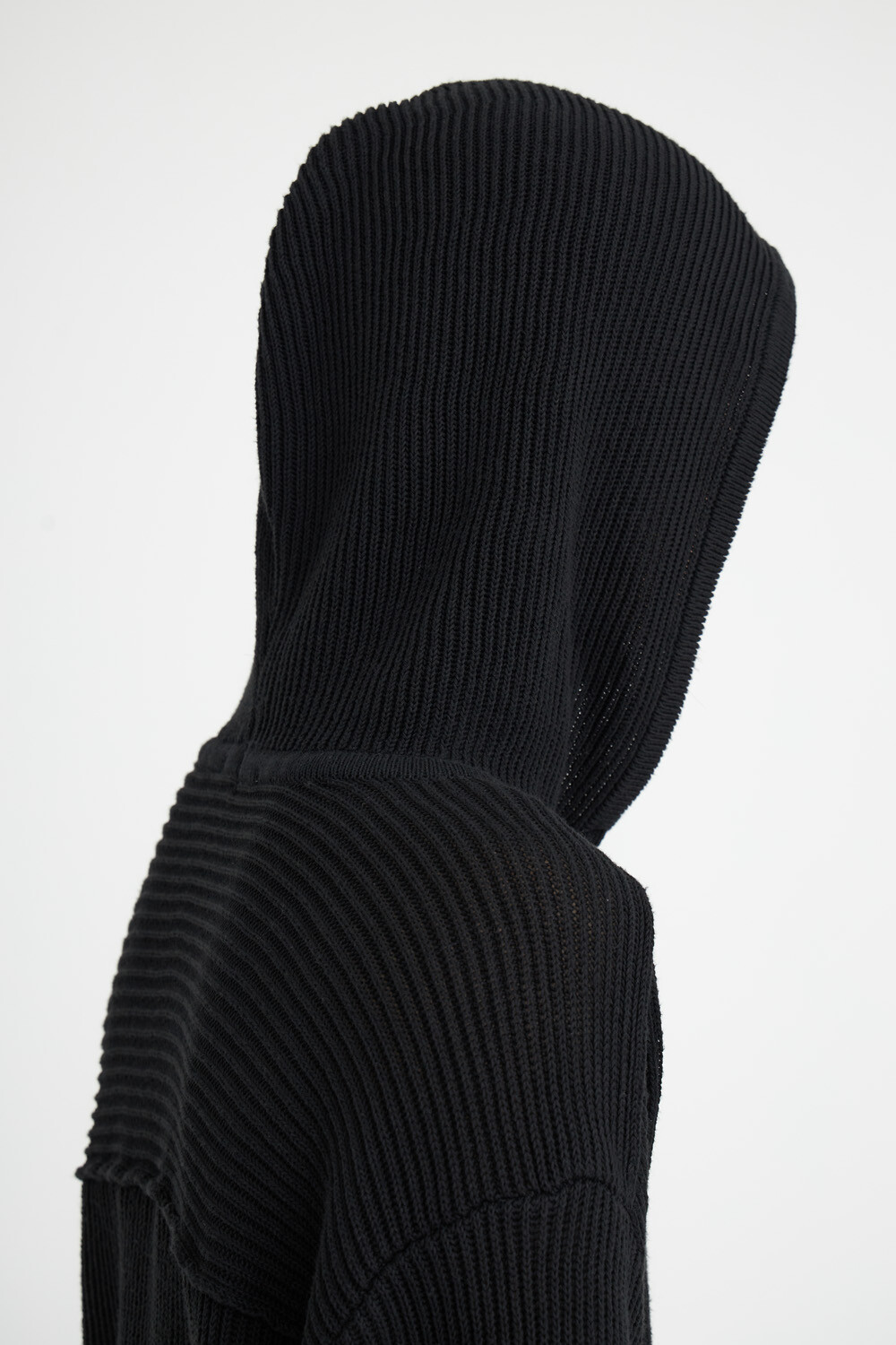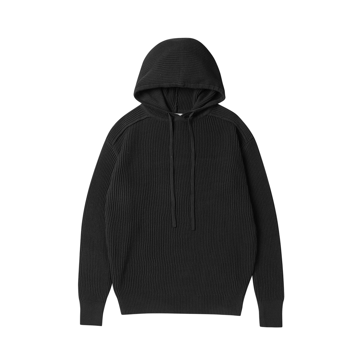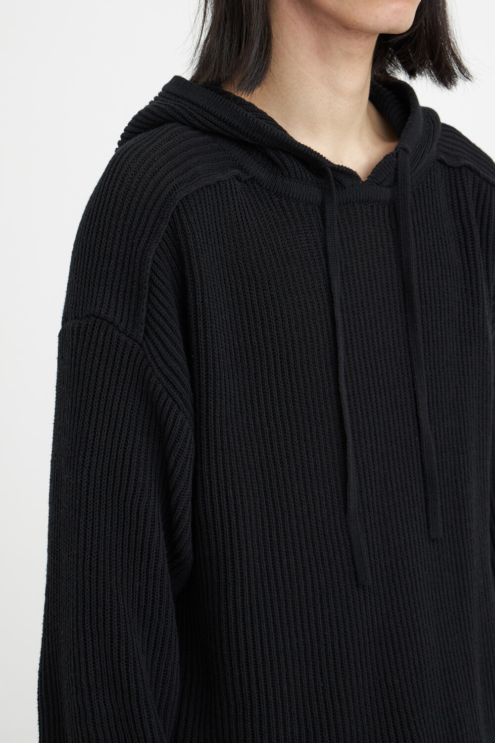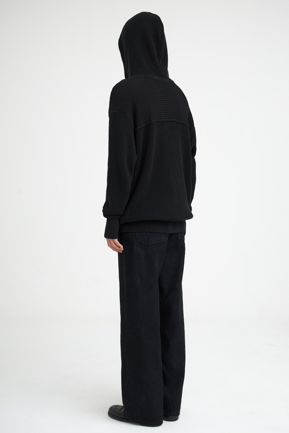 RIBBED YOKE KNIT HOODIE 2.0 (Black)