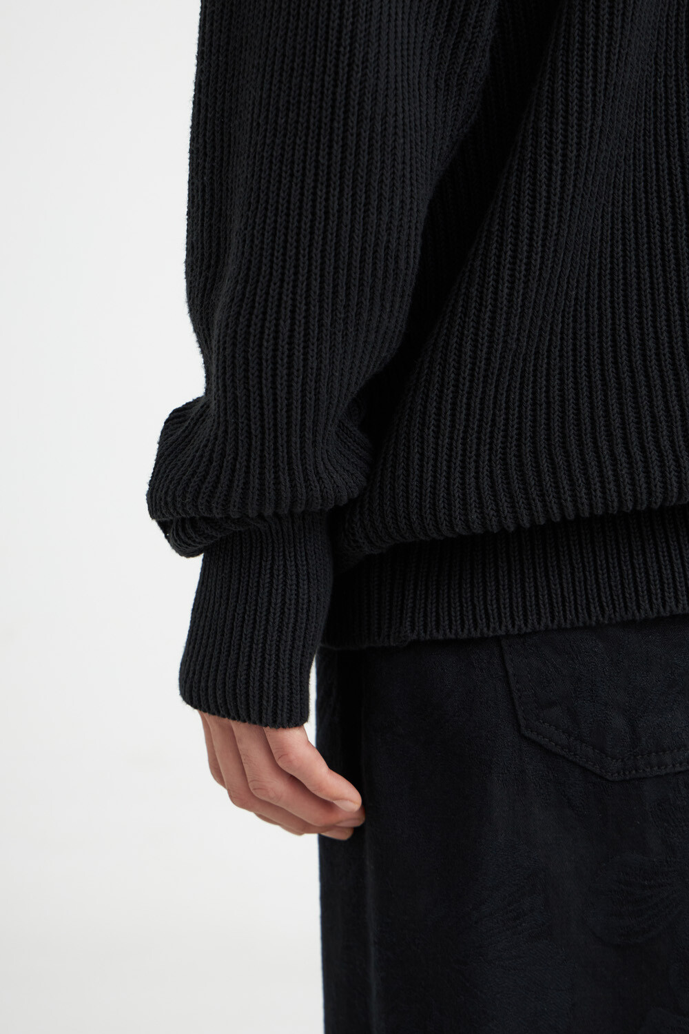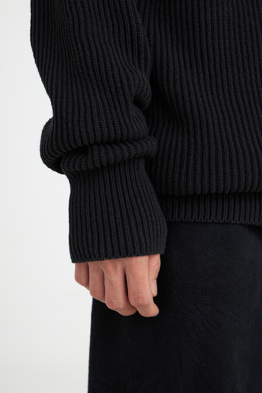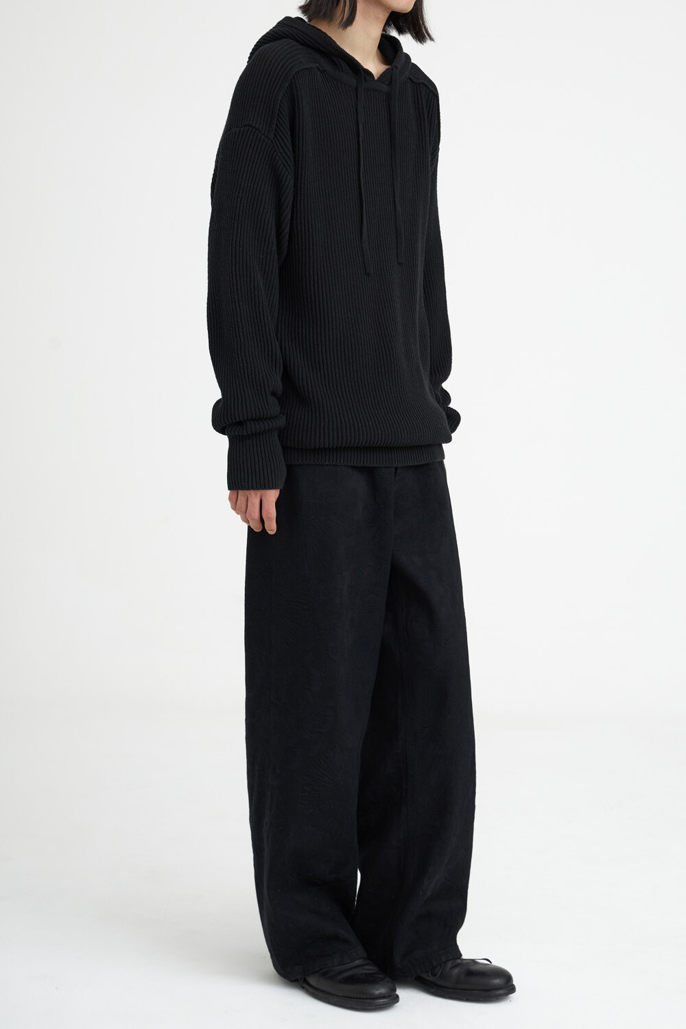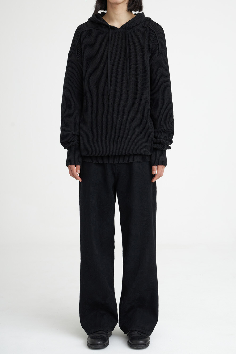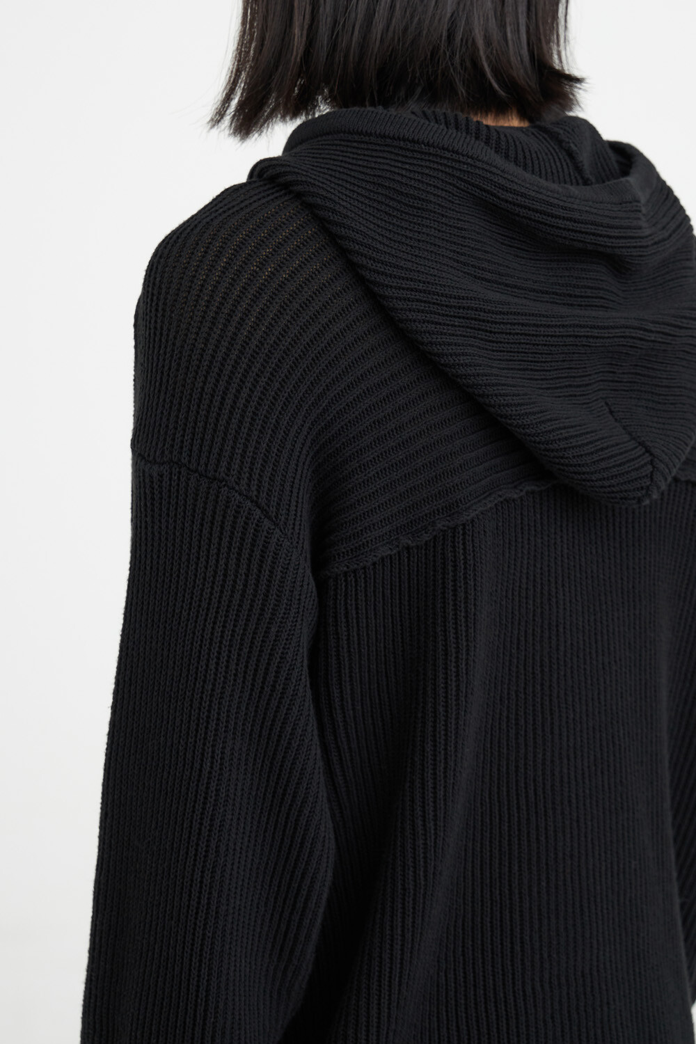 RIBBED YOKE KNIT HOODIE 2.0 (Black)