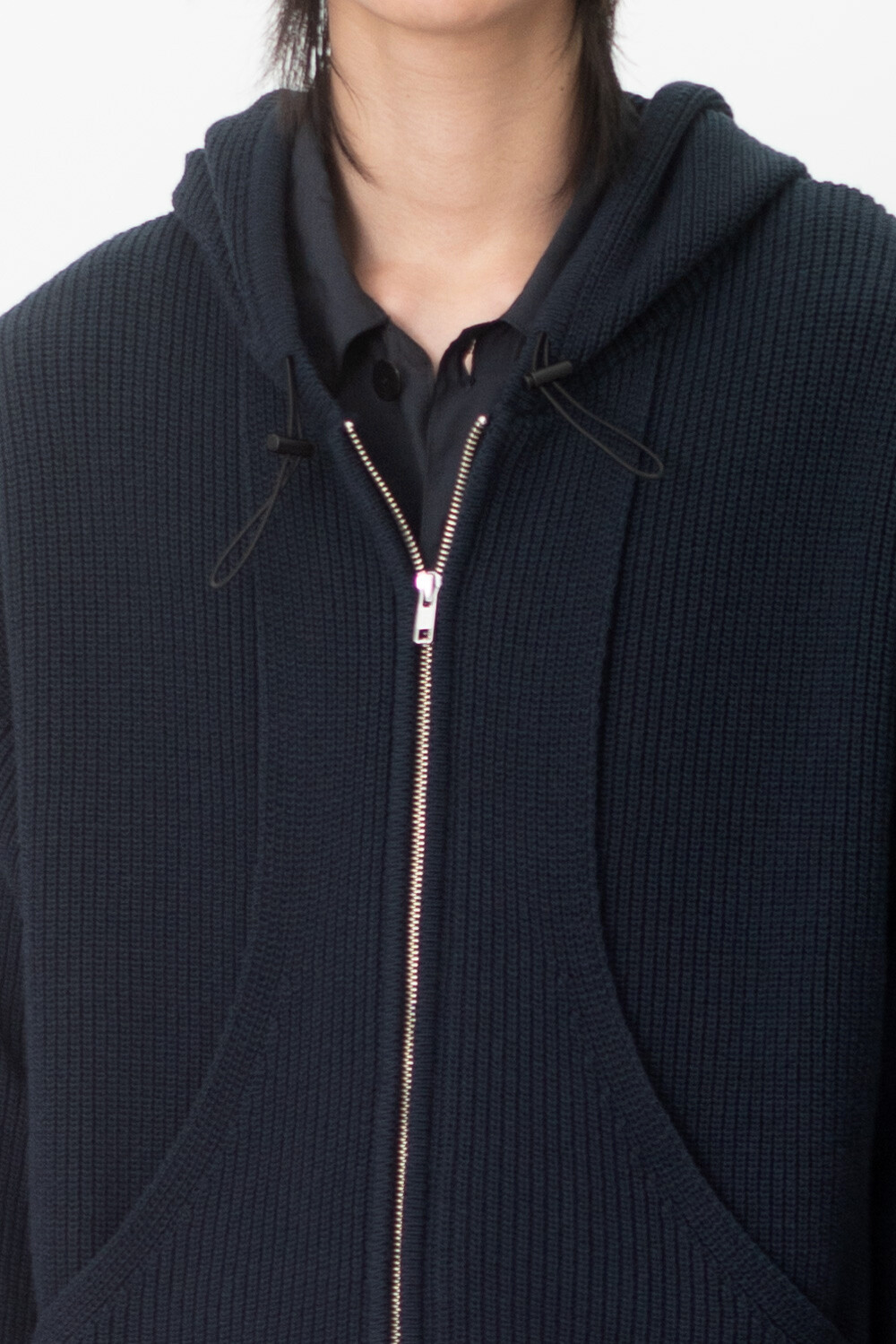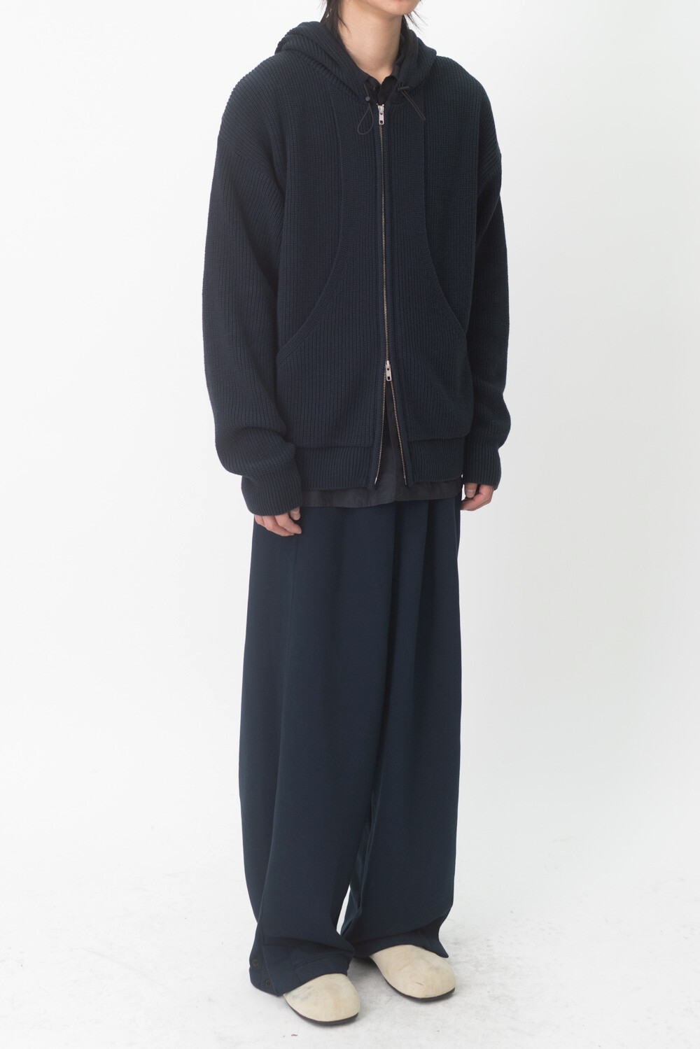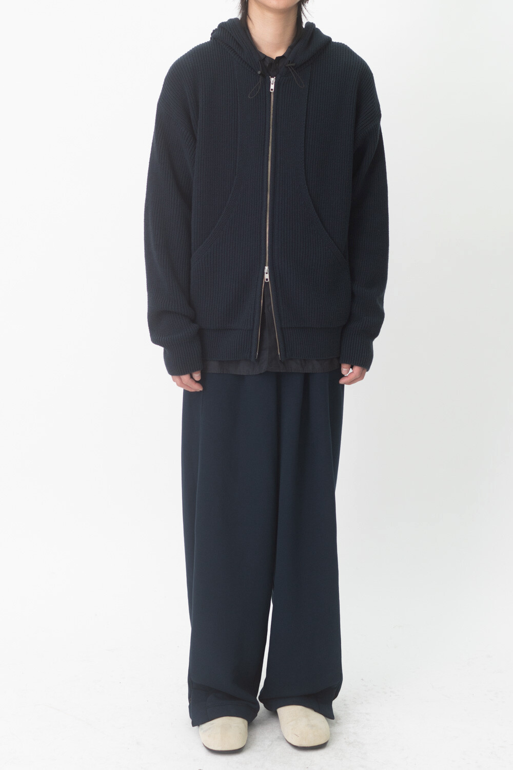 FLEECY KNIT ZIP HOODIE (Dark navy)