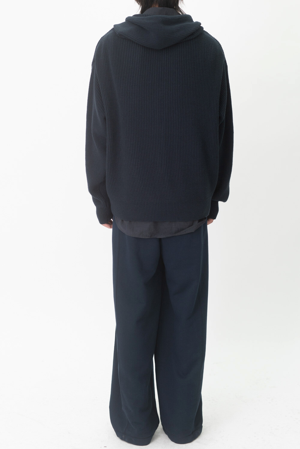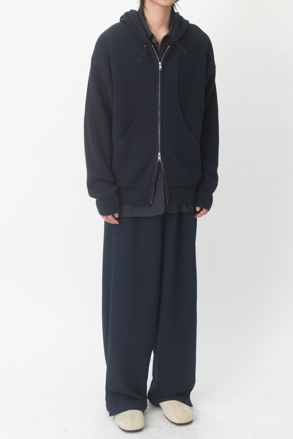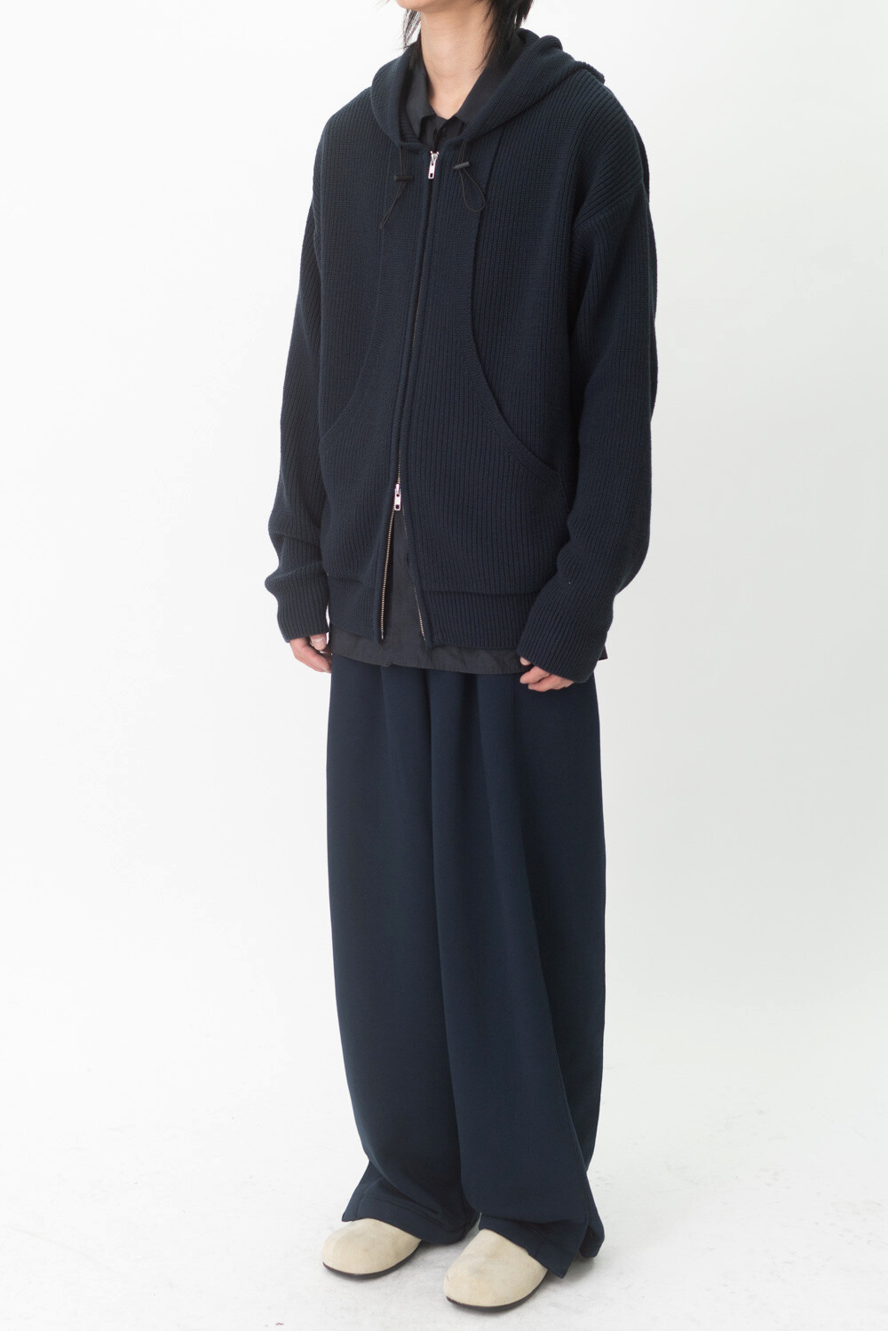 FLEECY KNIT ZIP HOODIE (Dark navy)