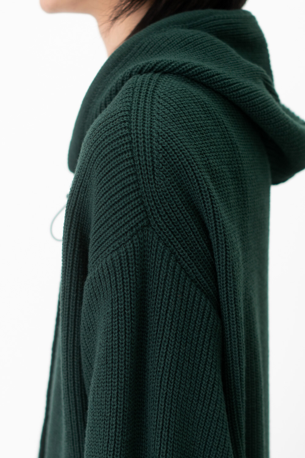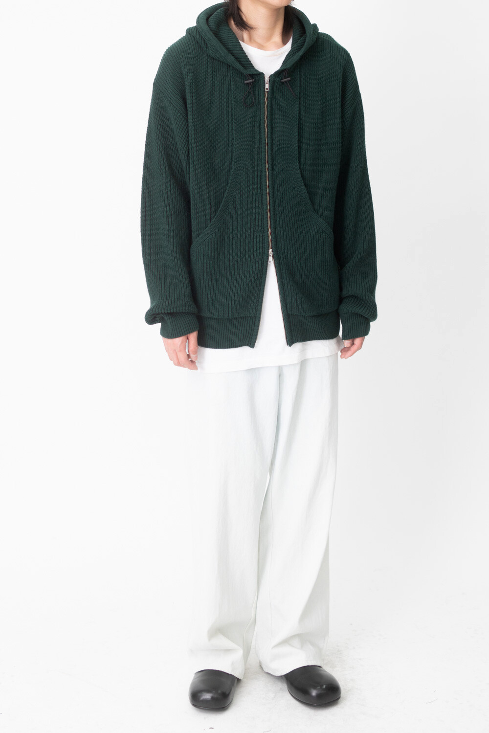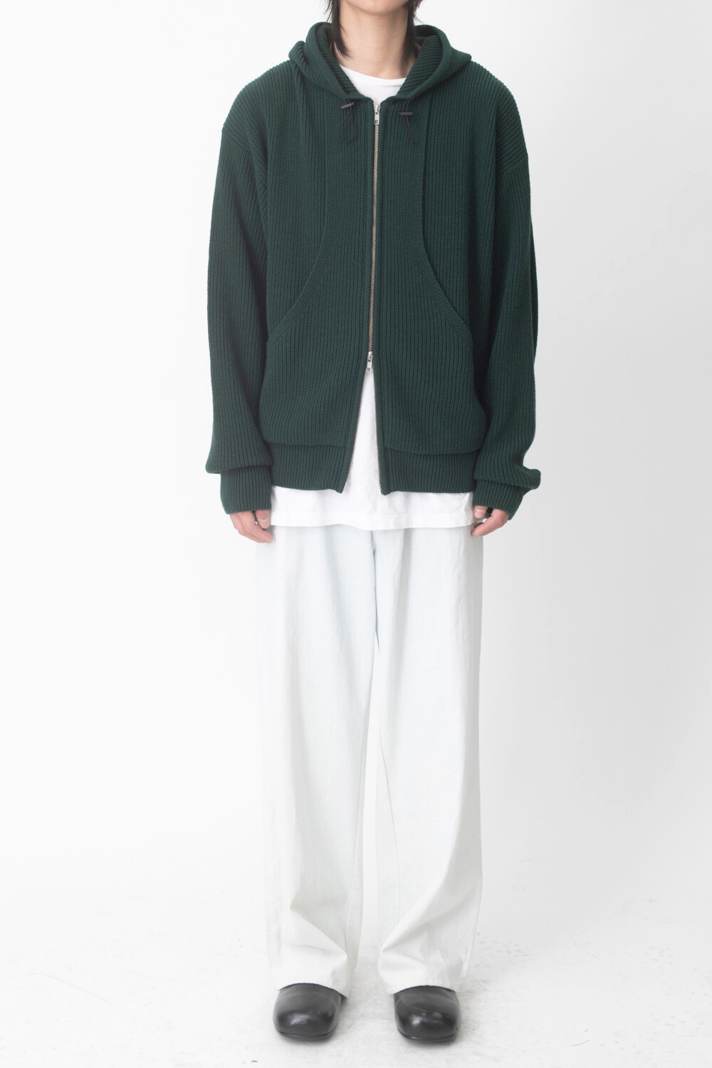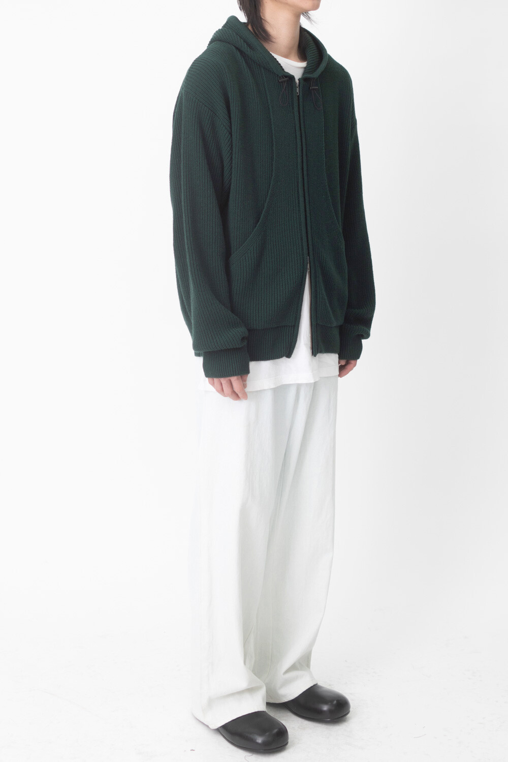 FLEECY KNIT ZIP HOODIE (Dark green)