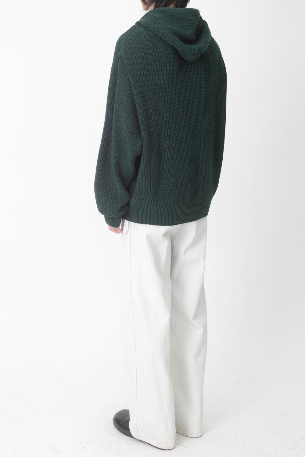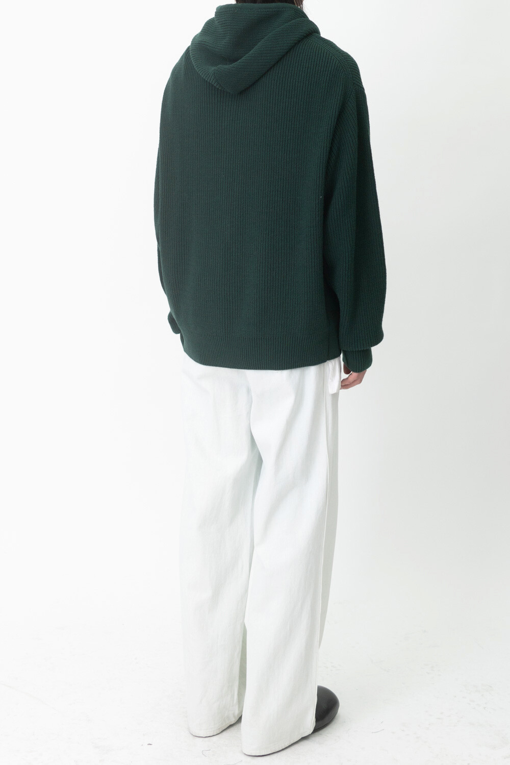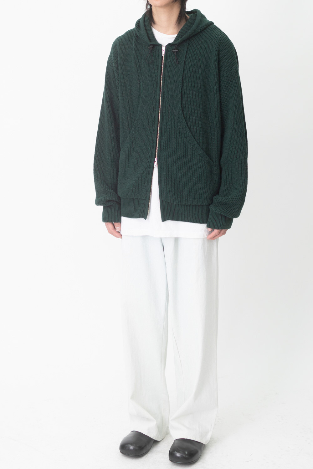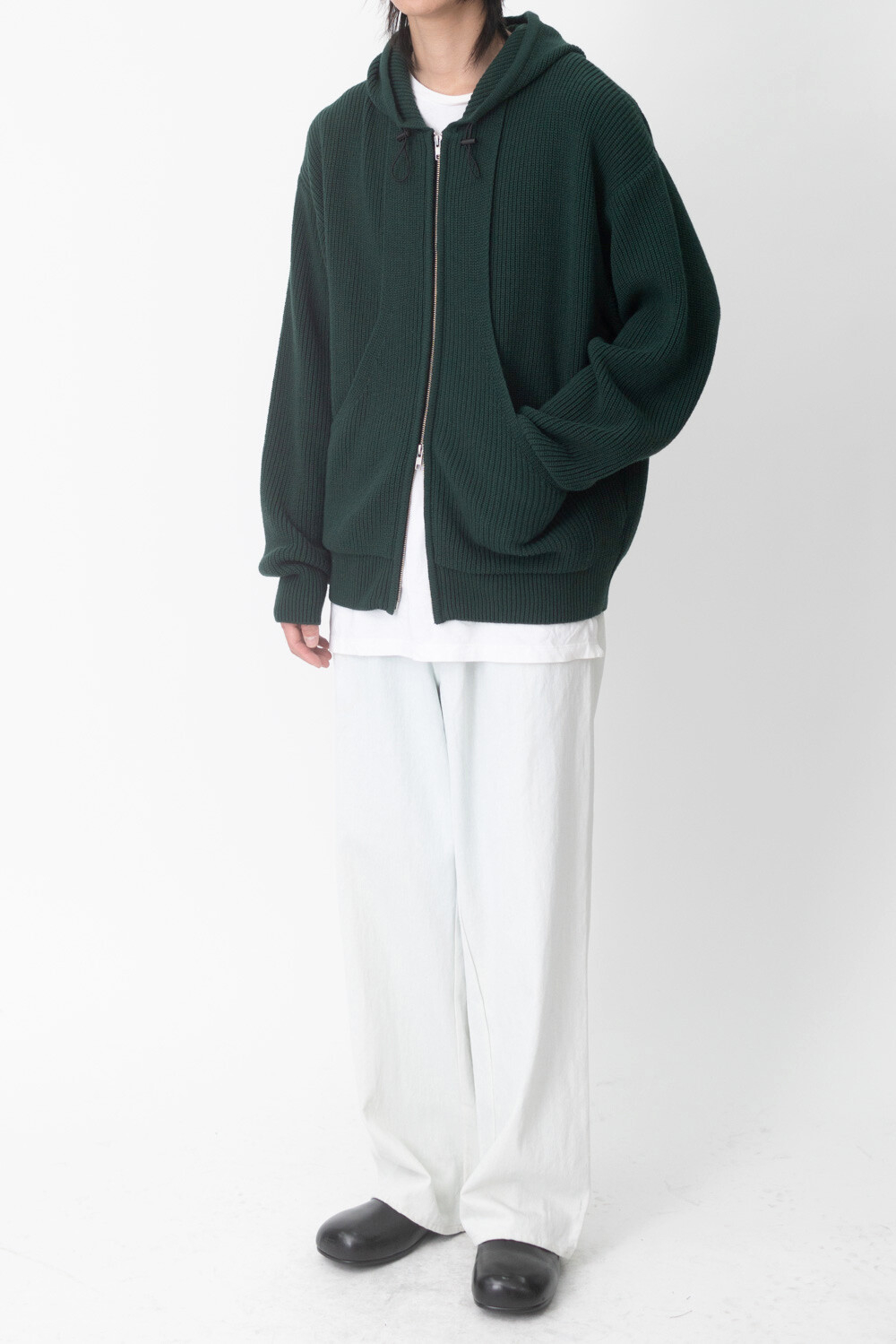 FLEECY KNIT ZIP HOODIE (Dark green)