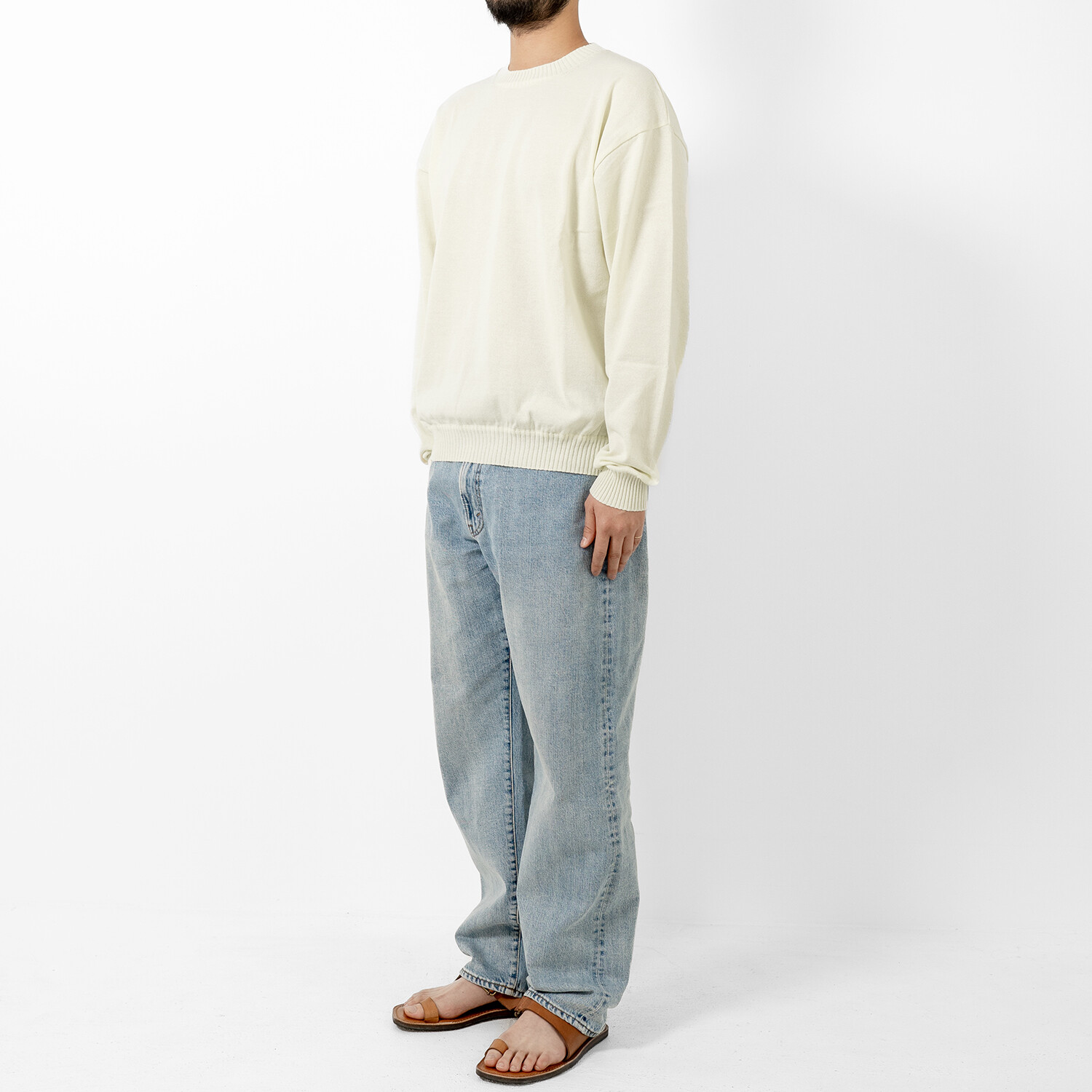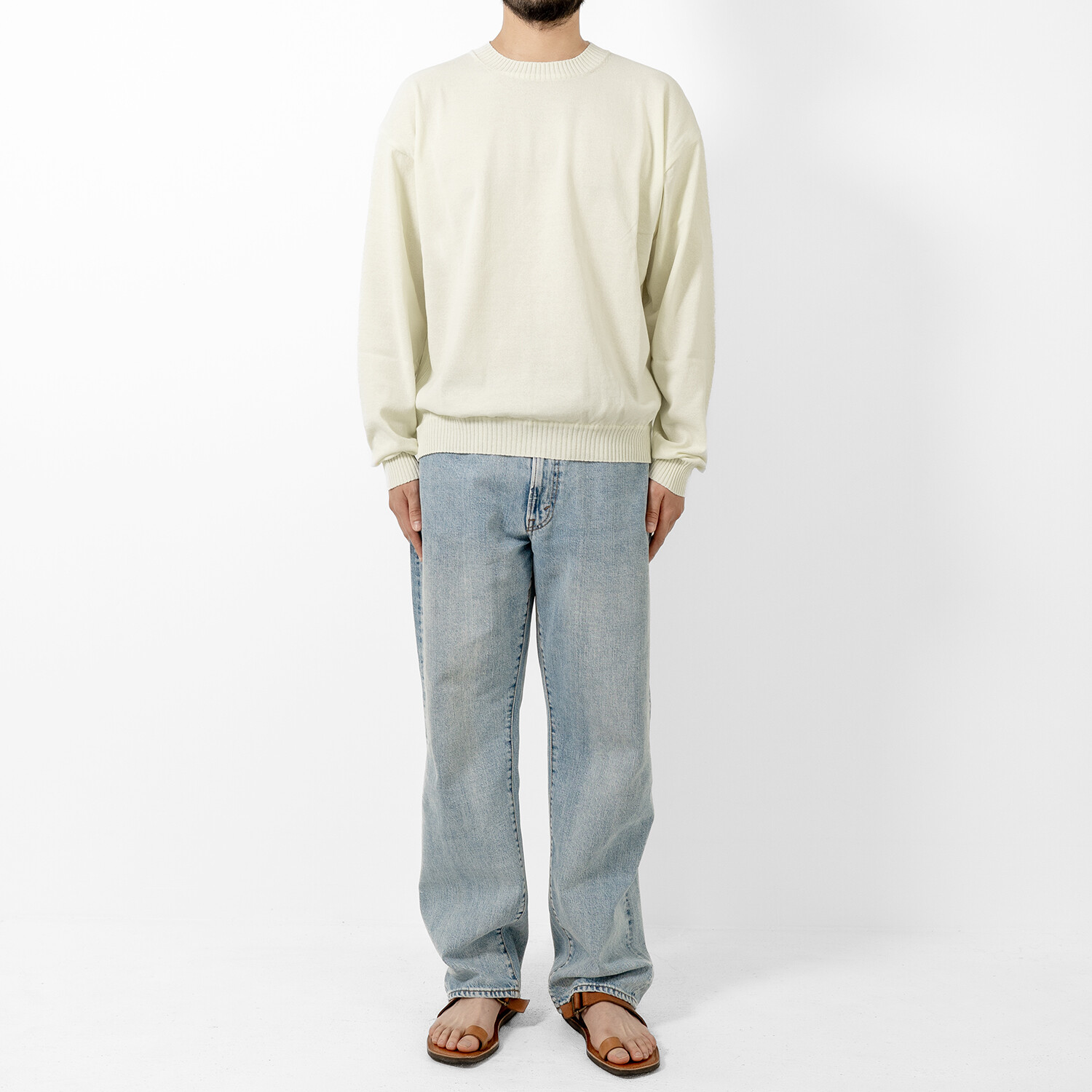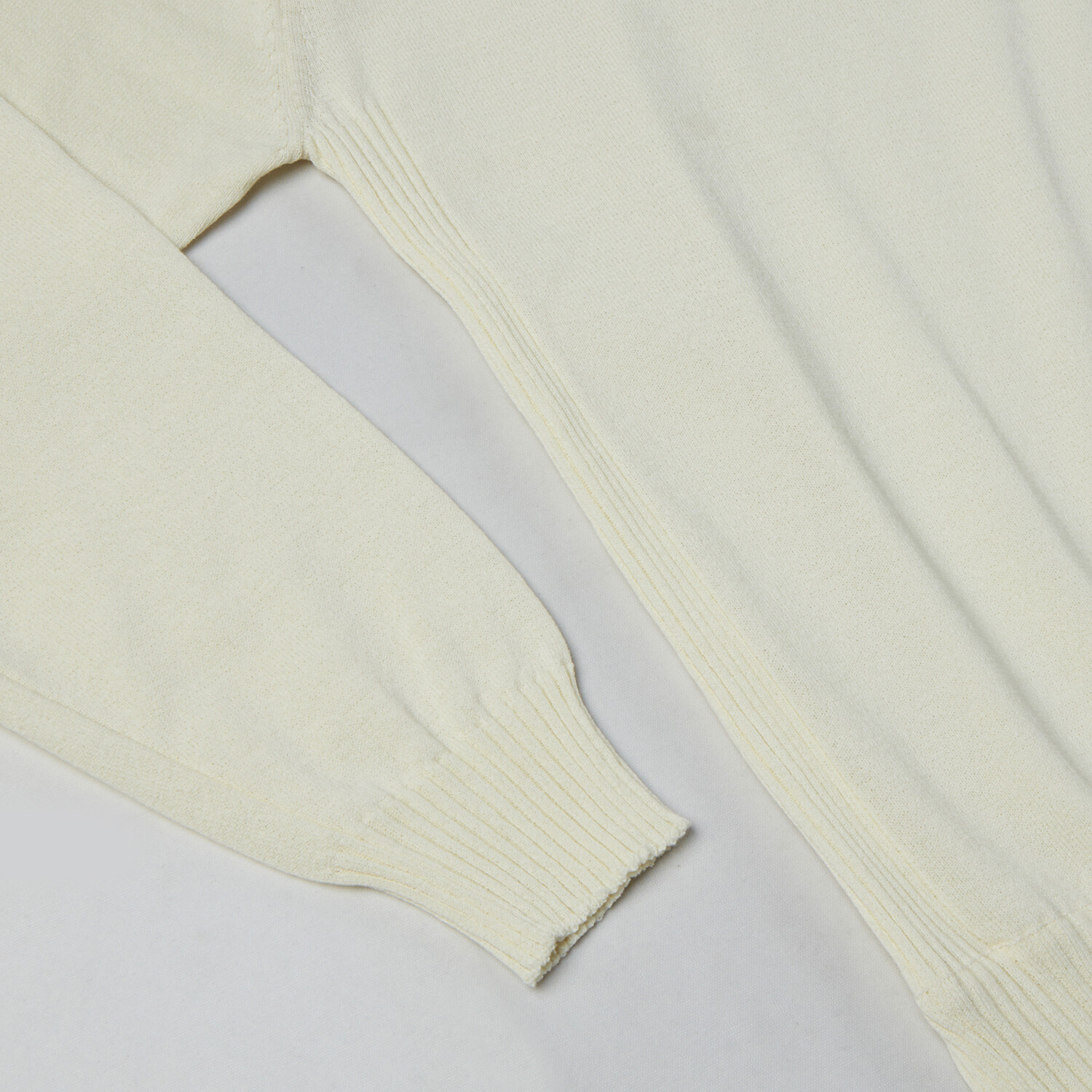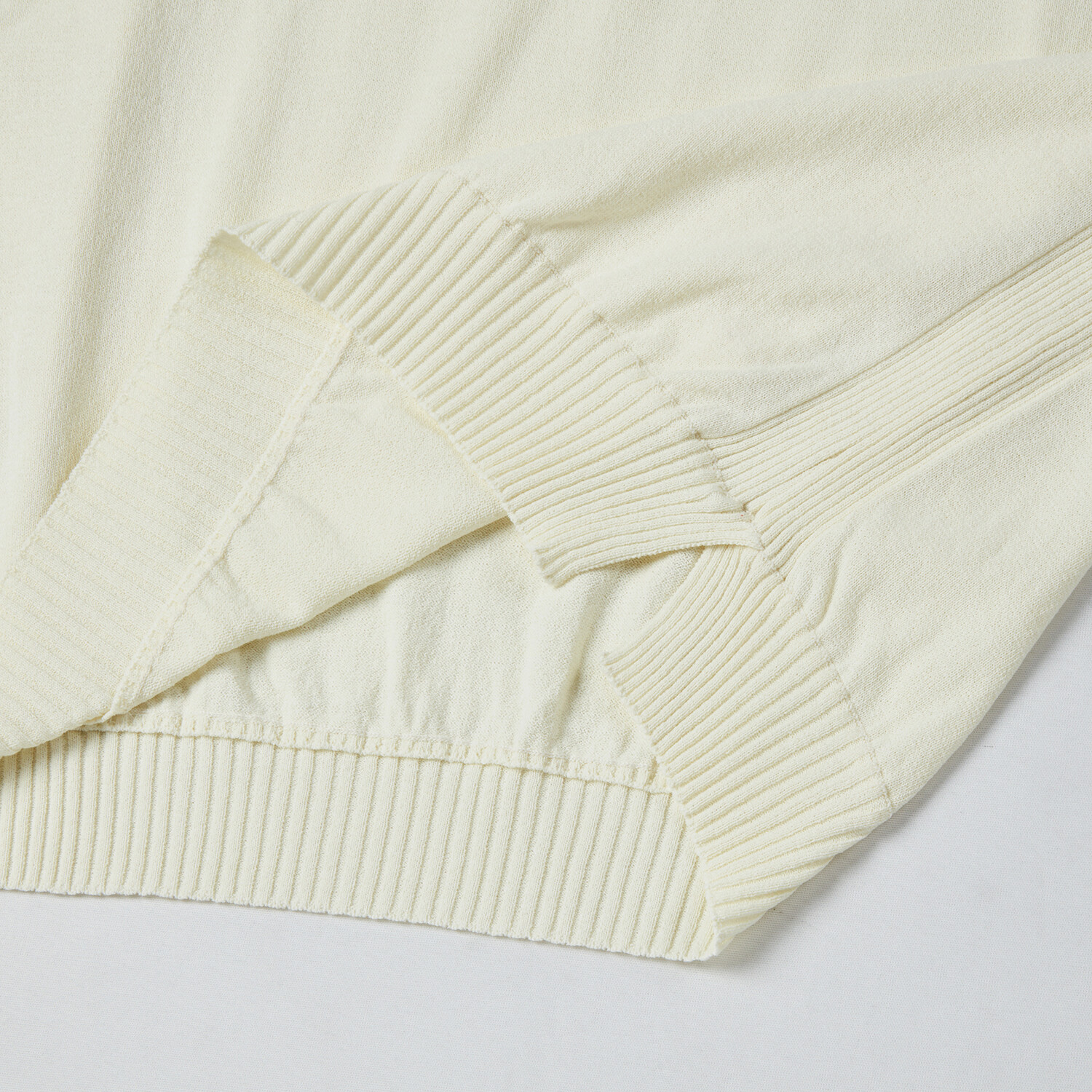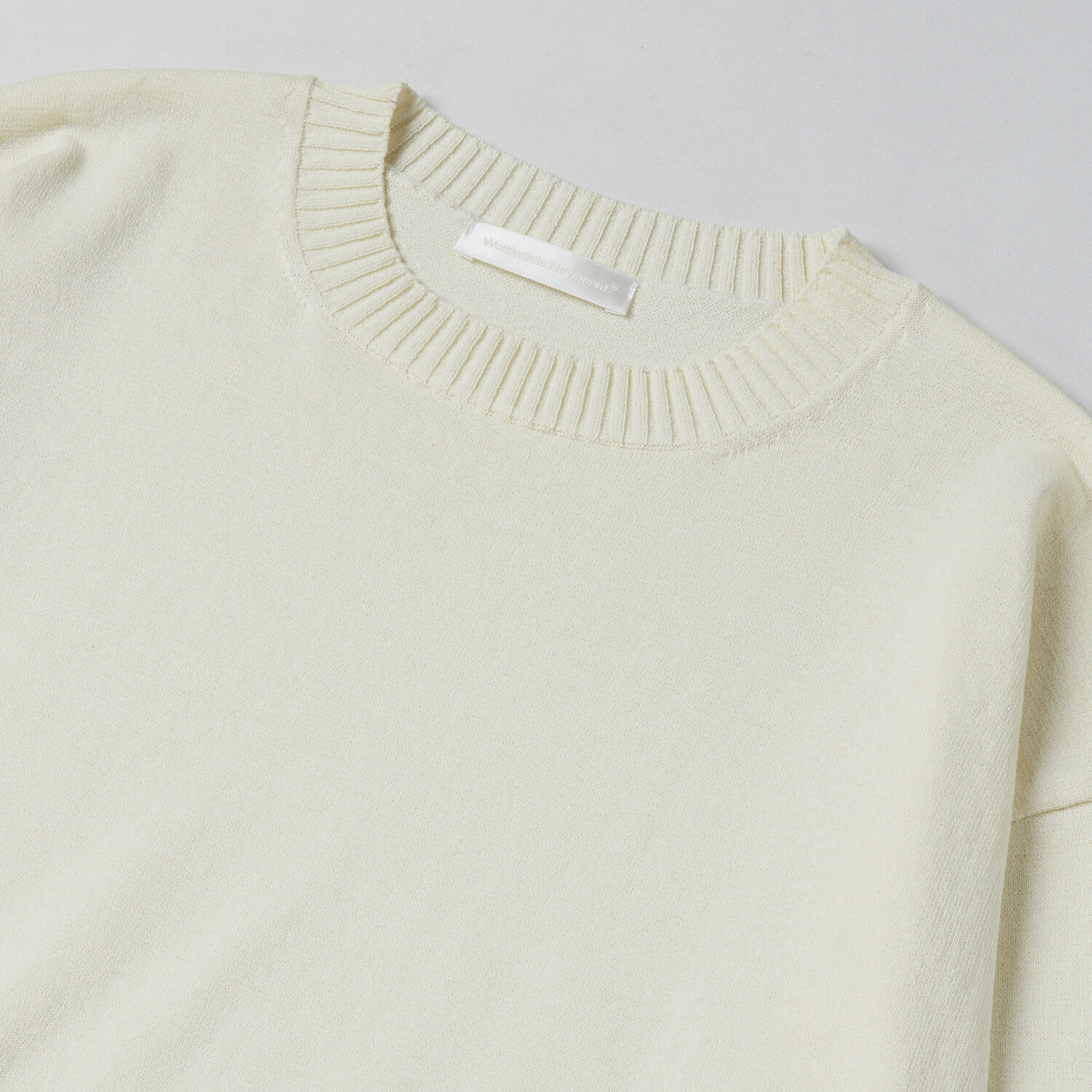 ▶ '사이드 슬릿 크루넥'은 봄,여름 시즌을 위해 제작한 얇고 경쾌한 실루엣의 롱 슬리브 니트입니다. 파인한 외관과 드레이프성이 좋은 고급 춘하용 소재를 사용하여 습해지는 7월 중순 이후의 한여름을 제외한다면 모든 시즌에 활용하기 좋습니다. 정갈한 핏으로 기본을 지키고 가볍게 입을 수 있는 성숙한 디자인의 니트를 생각하고 만들었습니다. 나일론, 코튼 혼방사를 사용하여 12게이지 3합으로 편직하였는데 드라이하고 시원한 터치감이 우수합니다. 맨살에 착용했을 때 비침은 없지만 통기성이 좋아서 쾌적하고 시원하게 입을 수 있습니다. 넥라인과 소매, 밑단 립 그리고 옆 시접 라인은 3x3 rib으로 편직하여 디자인적 포인트가 되며 양측 옆 라인 하단에는 슬릿이 들어가 있습니다. 립 조직 특성과 슬릿의 배치로 인해 신축성이 적기 때문에 기장을 의도적으로 숏하게 만들었으며 이 때문에 밑단 립을 접어 입기 보다는 있는 그대로 내려 입었을 때 알맞게 떨어지는 기장감을 느낄 수 있습니다. 인체 특성을 고려한 입체적인 성형 편직 및 니트 전문 공장에서 고급 사시봉제로 마감했습니다.