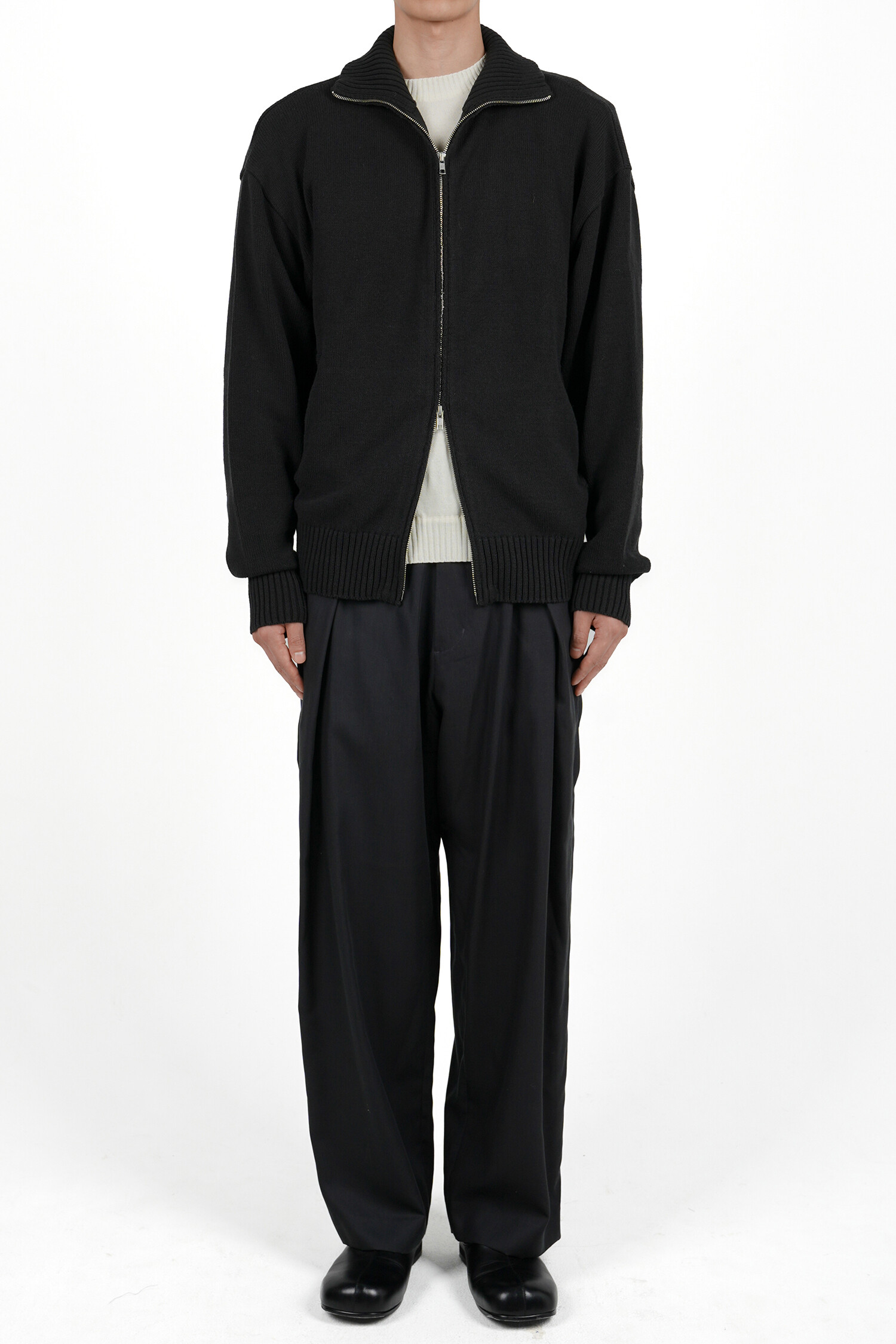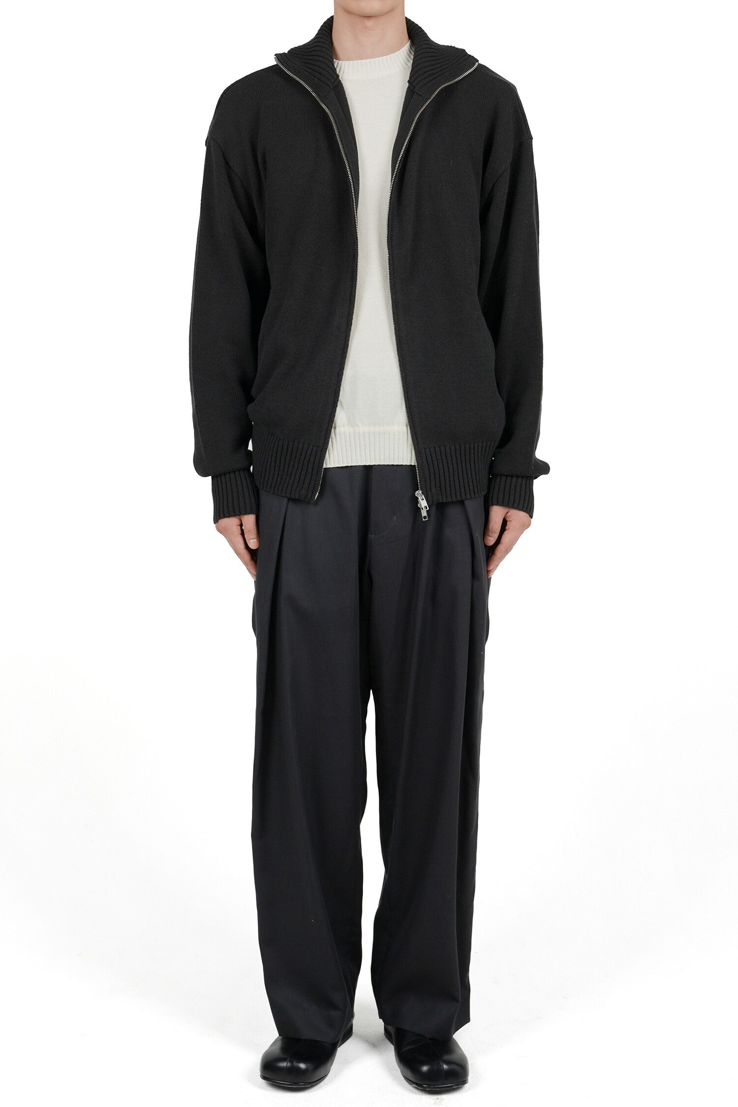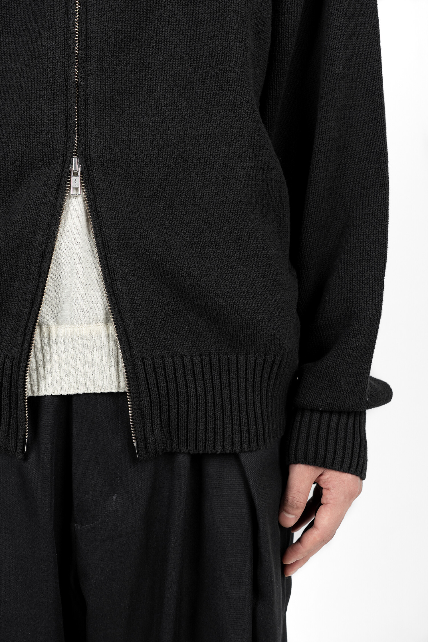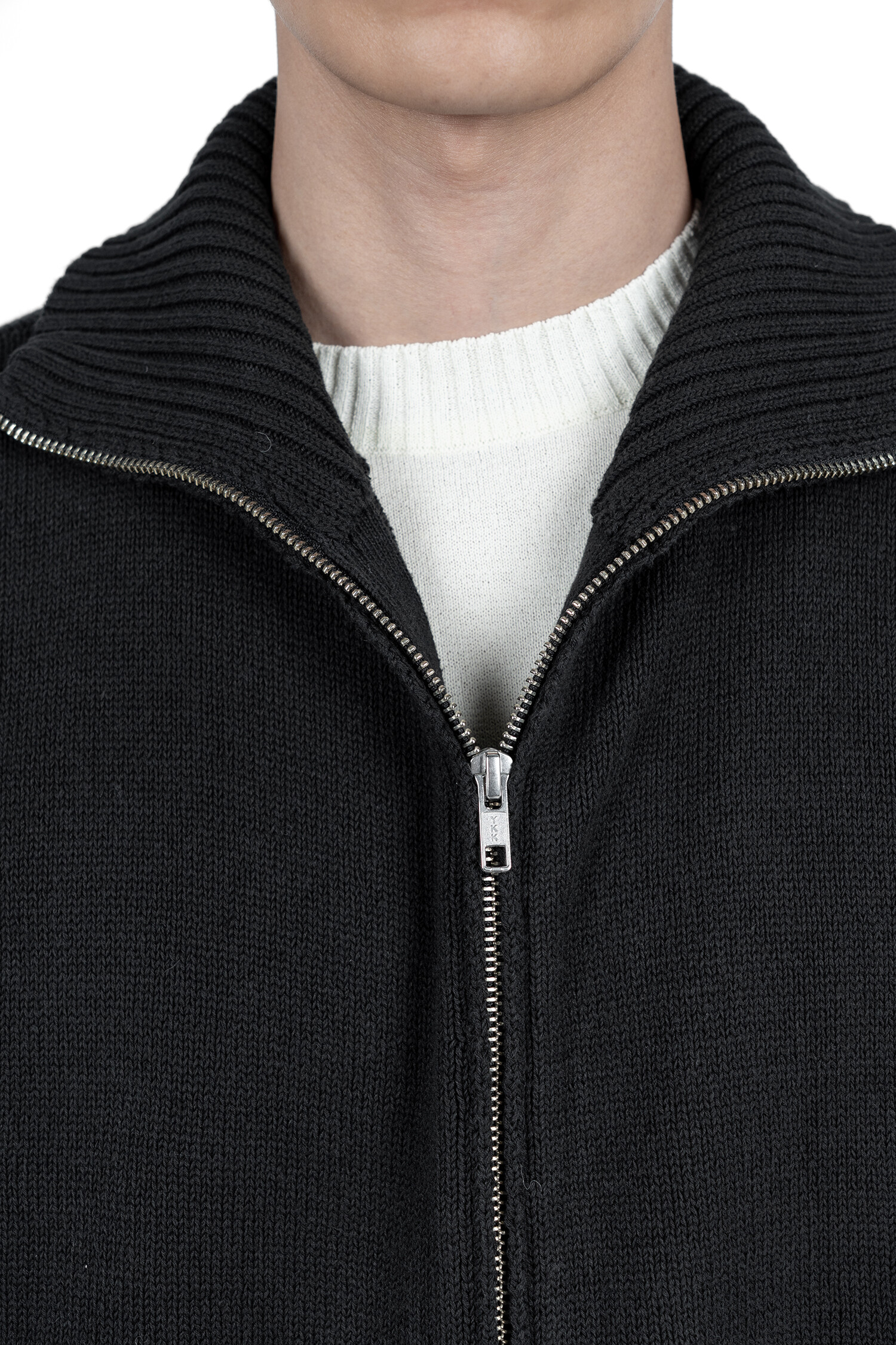 ▶ 투웨이 지퍼 타입이 적용된 니트 집업 입니다. 코튼사로 만들어서 쾌적하고 부드러운 터치감이 장점이고 편안한 실루엣으로 연출하기 좋습니다. YKK의 2way 니켈 지퍼가 사용되었고 7게이지의 2합 두께, 싱글 조직으로 편직한 제품입니다. 이너 웨어와 함께 연출하는 것은 물론 본 제품을 이너로 활용하고 코트나 아우터를 걸쳐 입어도 정갈하고 성숙한 스타일로 연출할 수 있습니다. 목 높이가 높은 제품으로 지퍼를 내렸을 때 칼라처럼 사용할 수 있으며 양쪽 포켓을 만들어서 손을 넣어두기 좋습니다. 블랙은 솔리드 컬러로, 그레이와 스모크 블루는 소매와 밑단 립에 컬러 배색 라인 포인트가 있습니다. 인체 특성을 고려한 입체적인 성형 편직 및 니트 전문 공장에서 고급 사시 봉제로 마감했습니다.