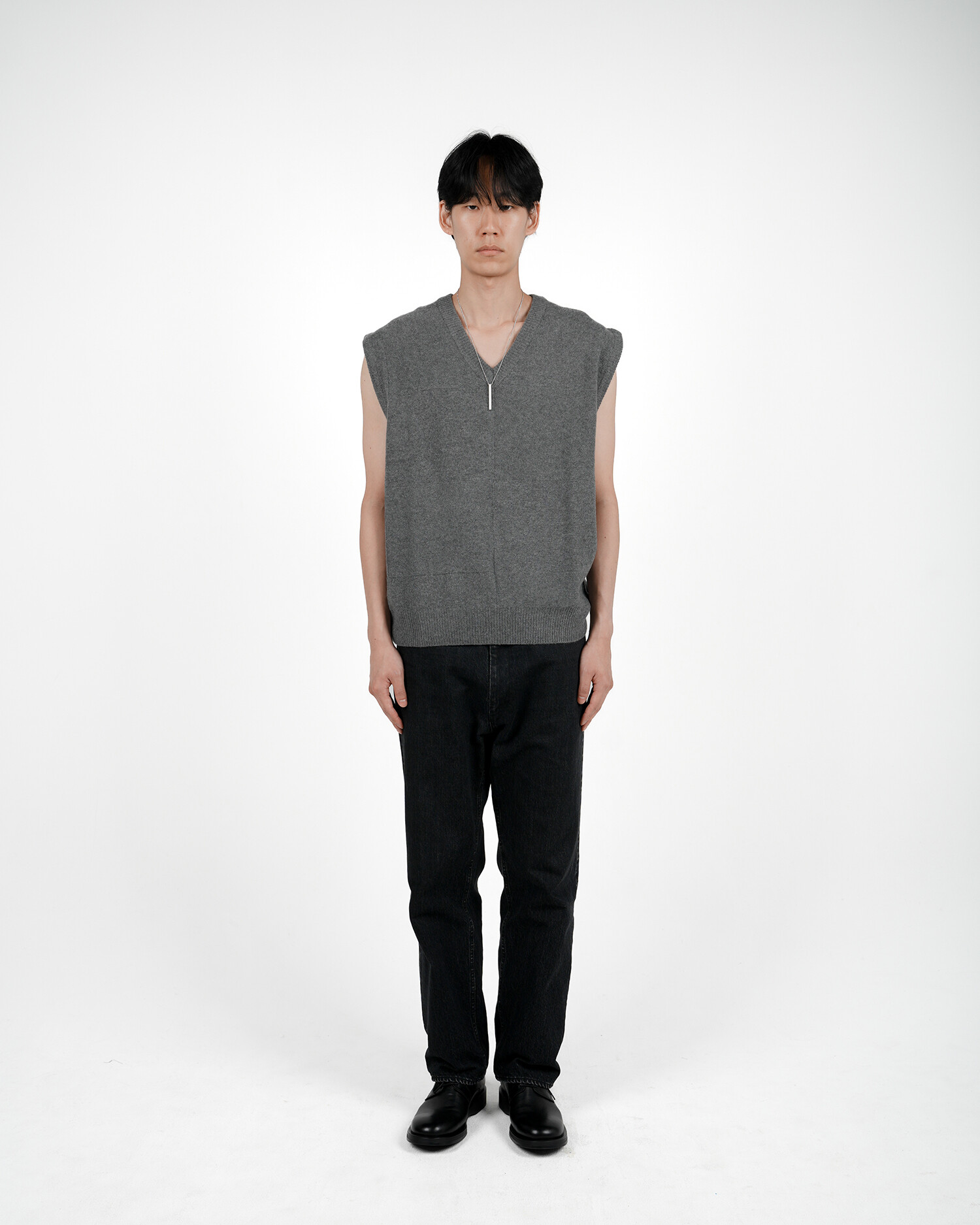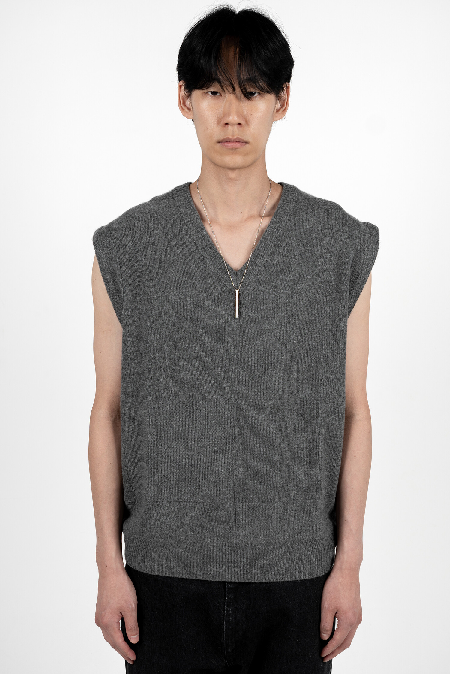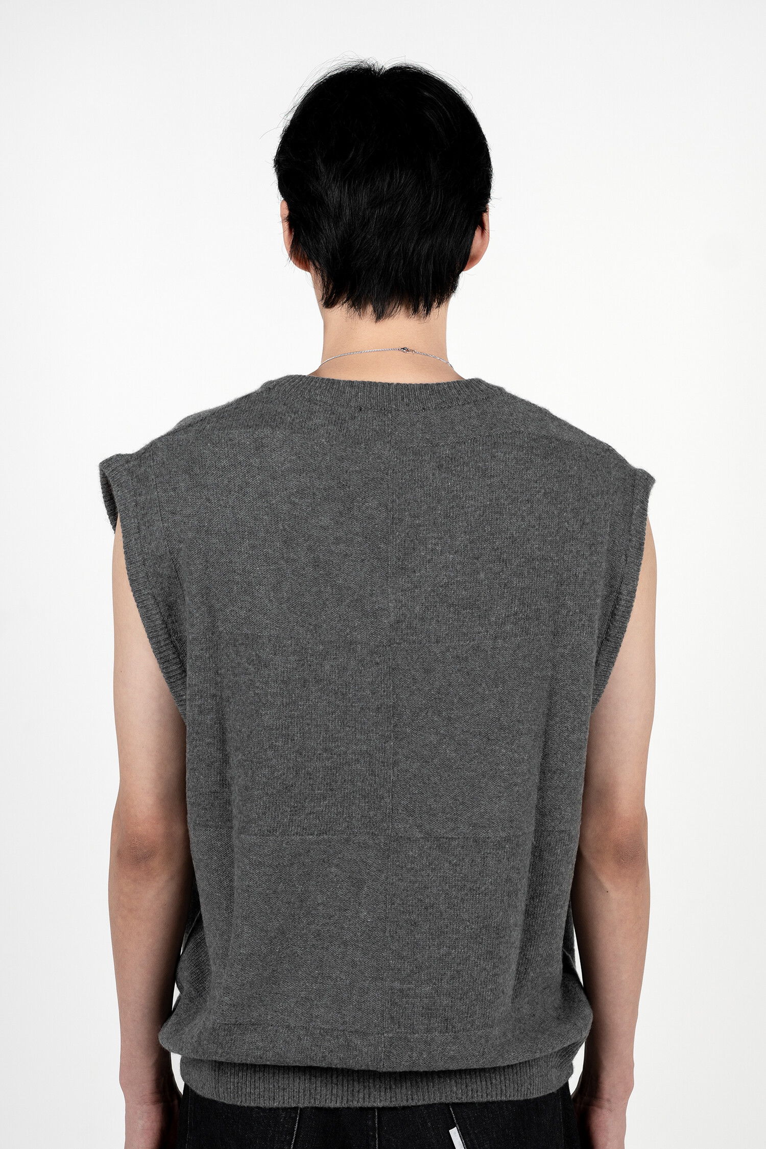 CROSS WEAVING KNIT VEST (Grey mélange)