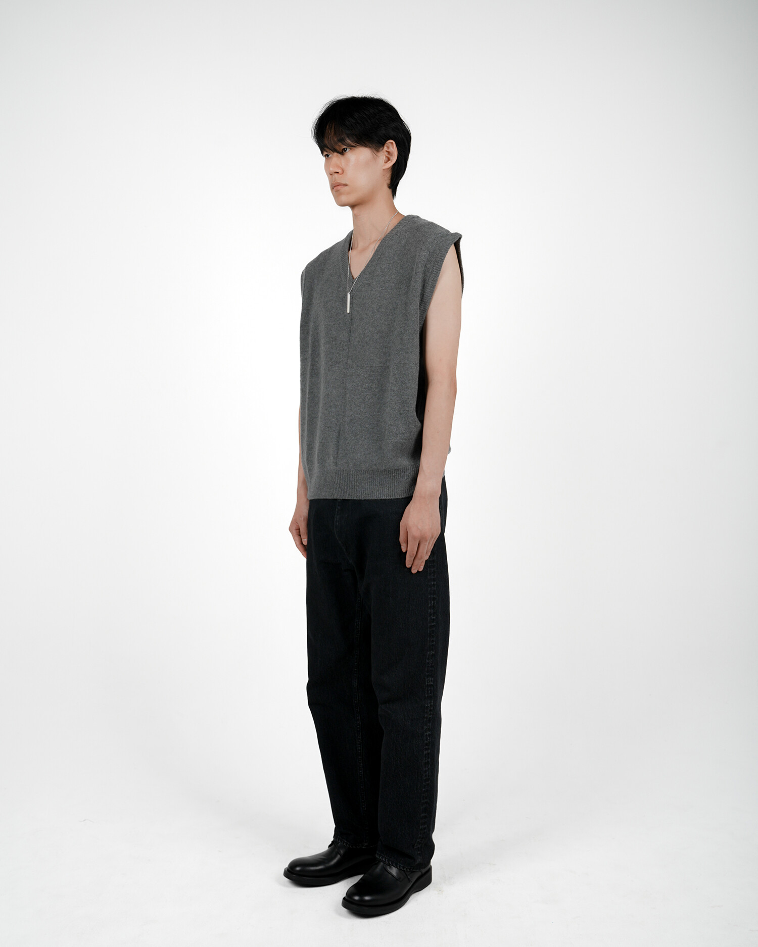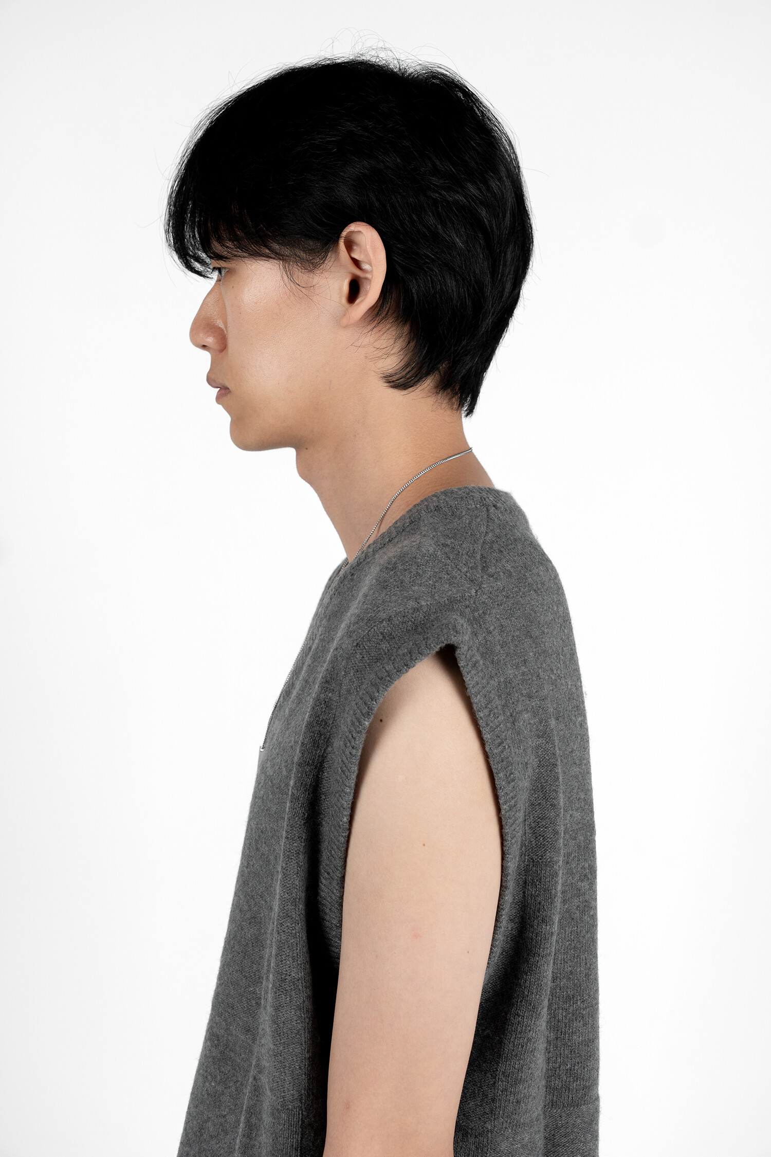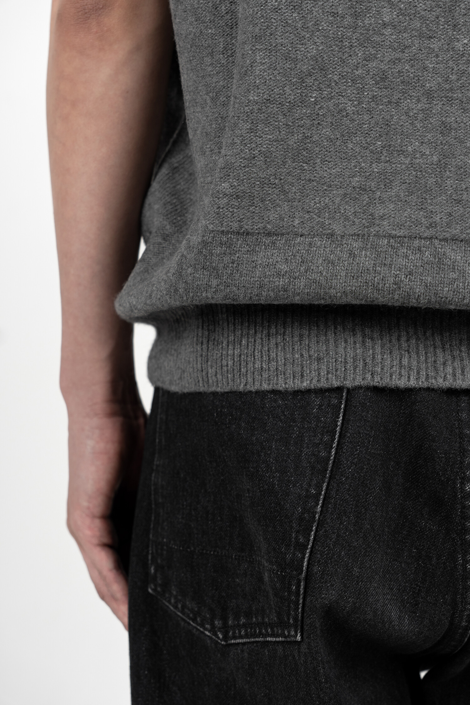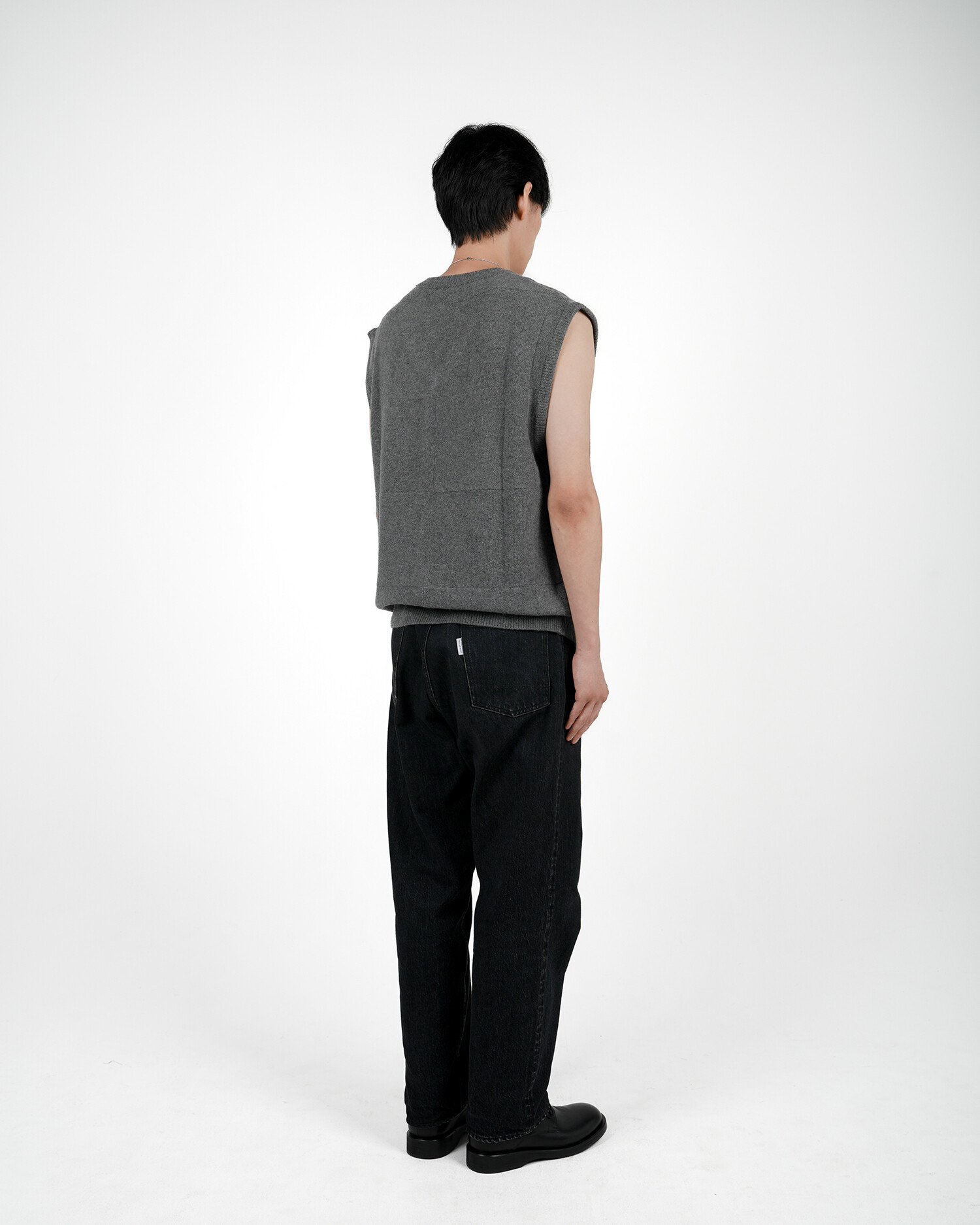 CROSS WEAVING KNIT VEST (Grey mélange)