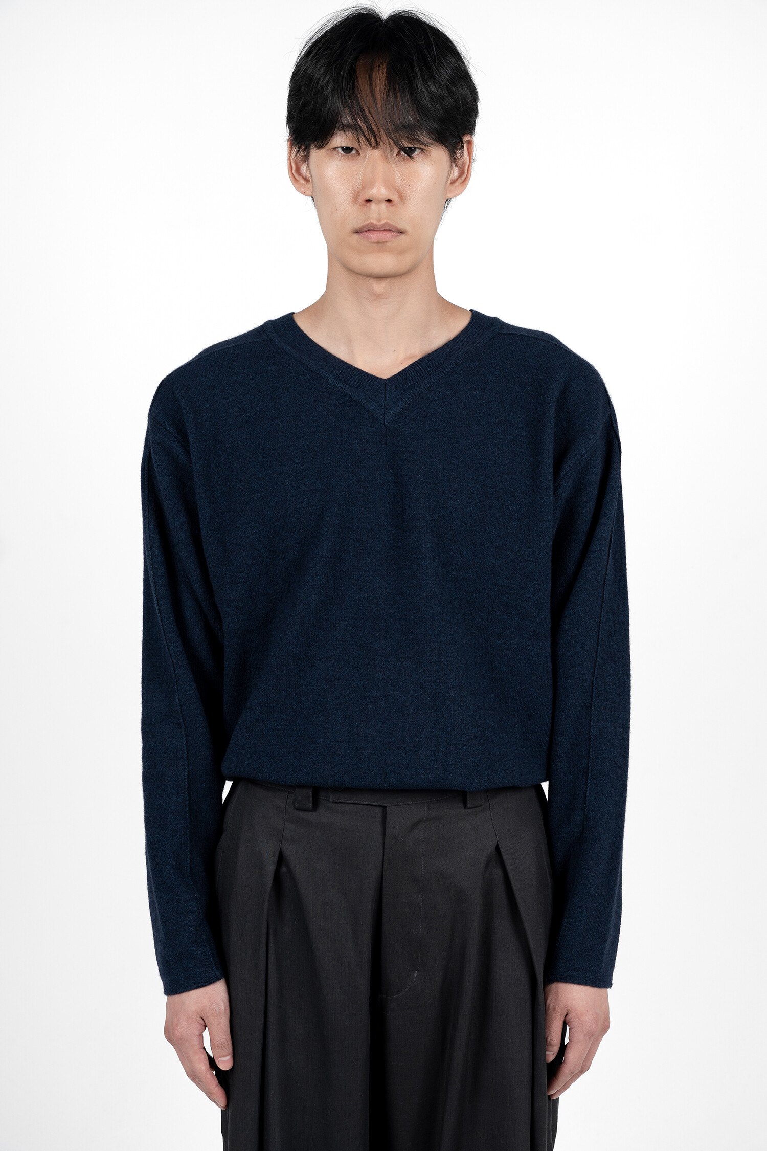 STRUCTURED MILANO V-NECK SWEATER (Dark navy)