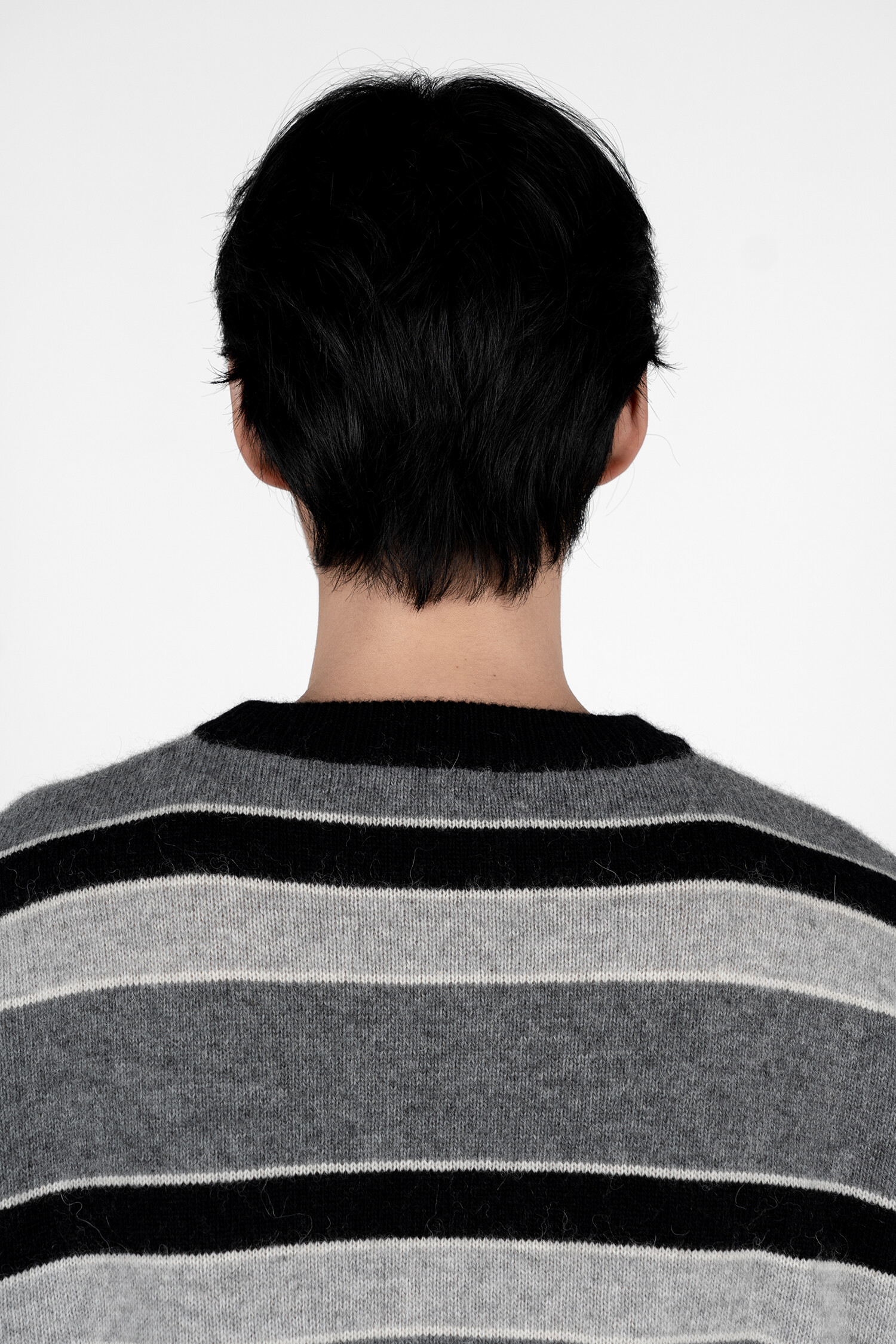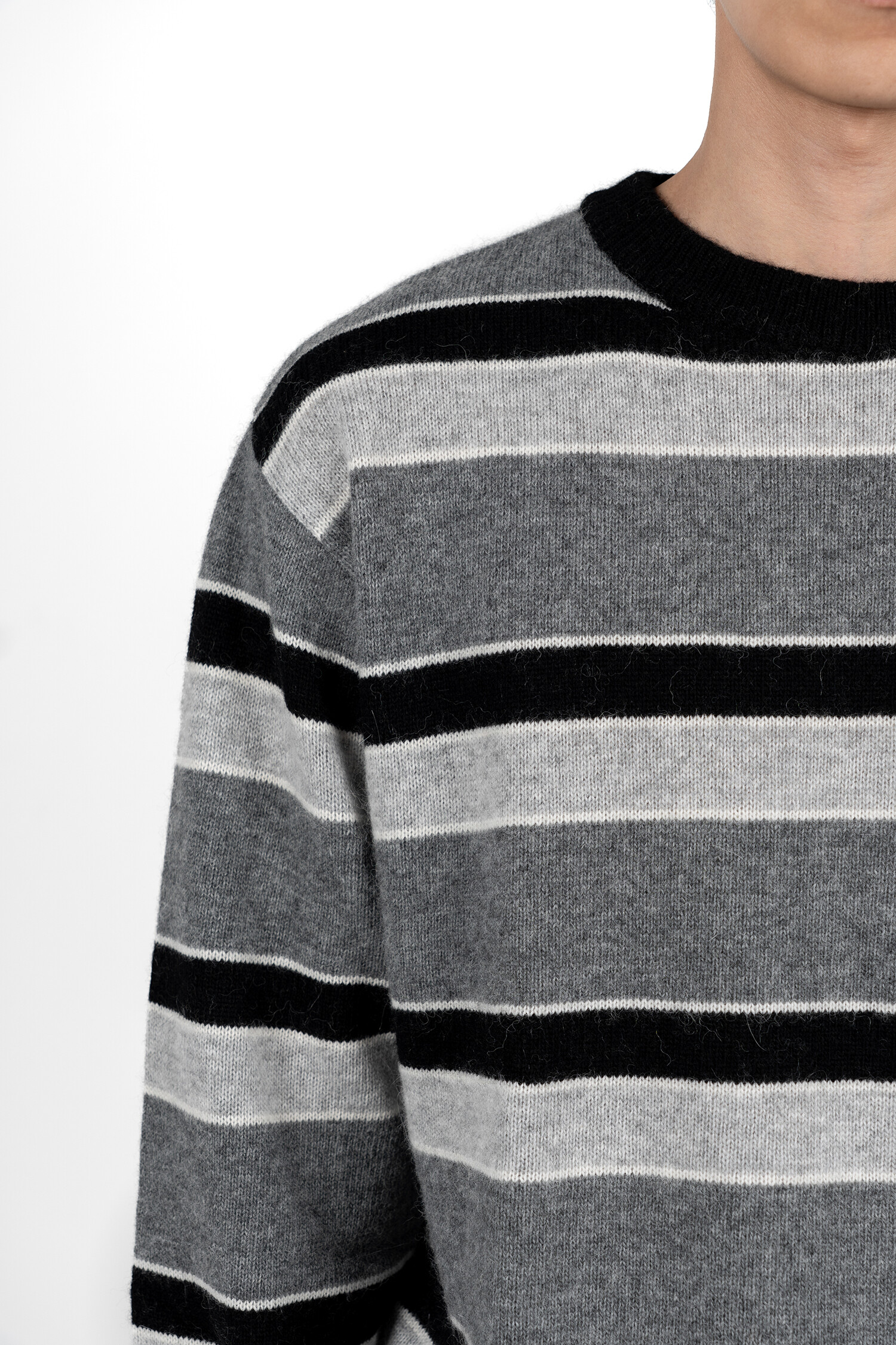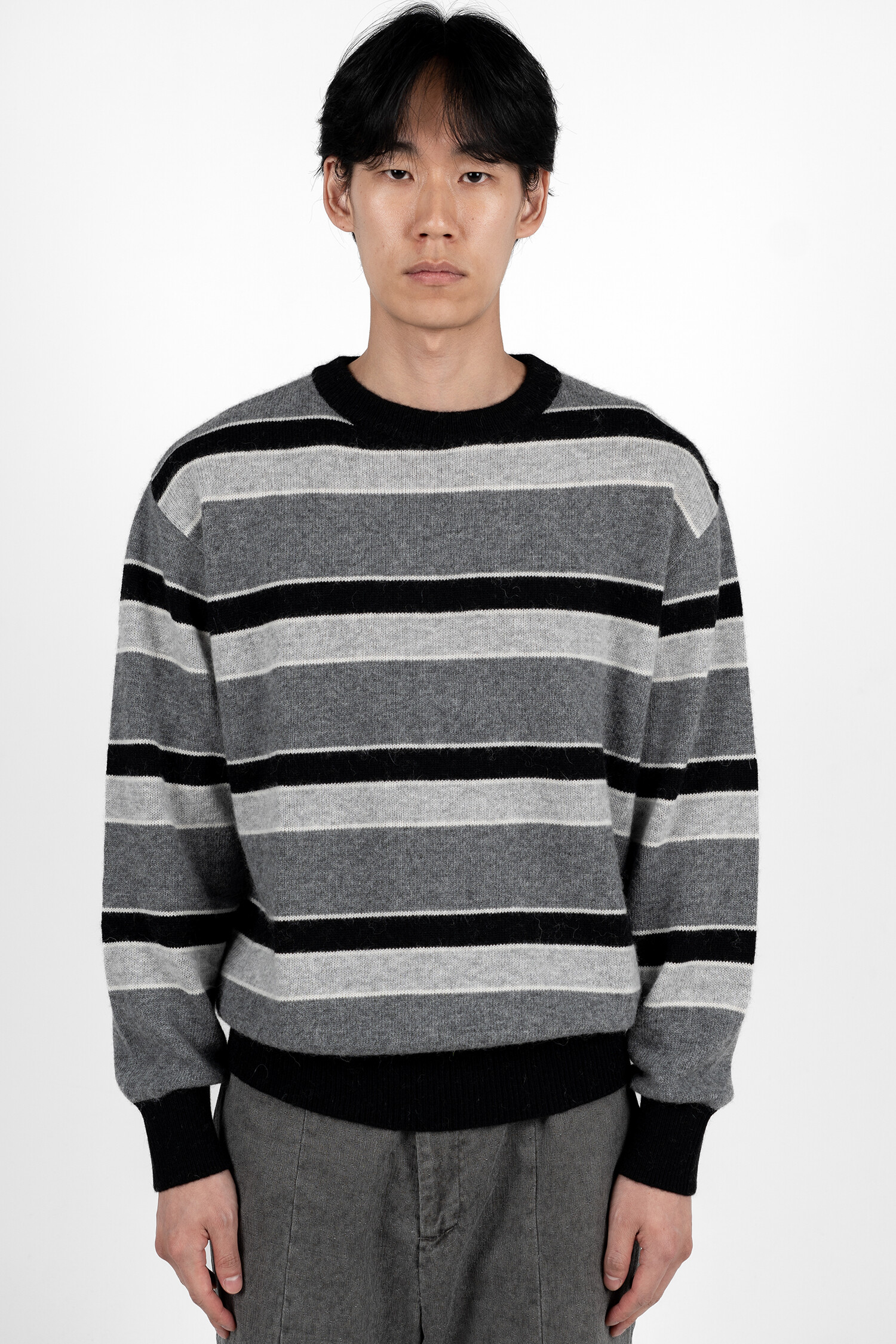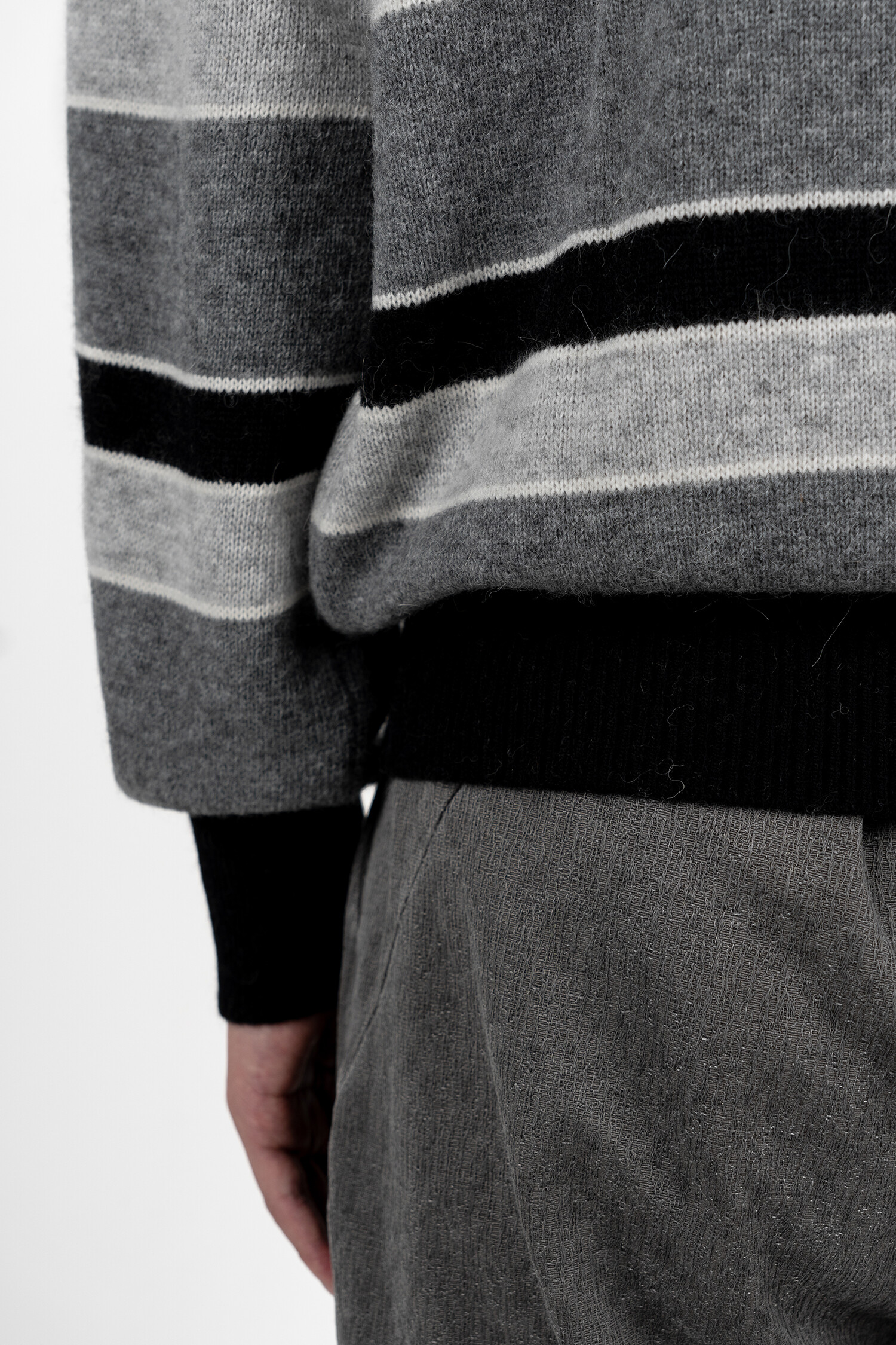ALPACA MULTI STRIPE SWEATER (Grey melange combie)