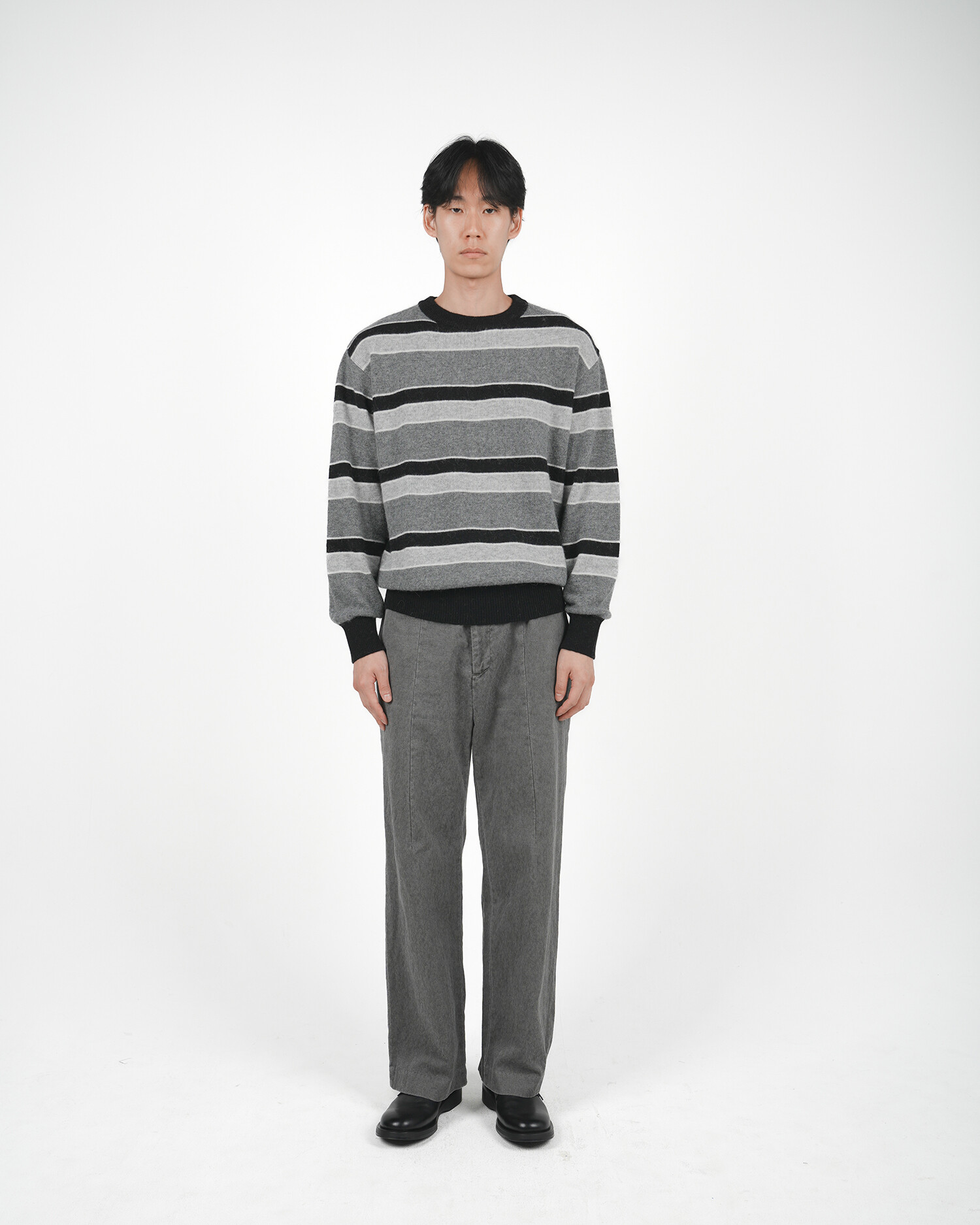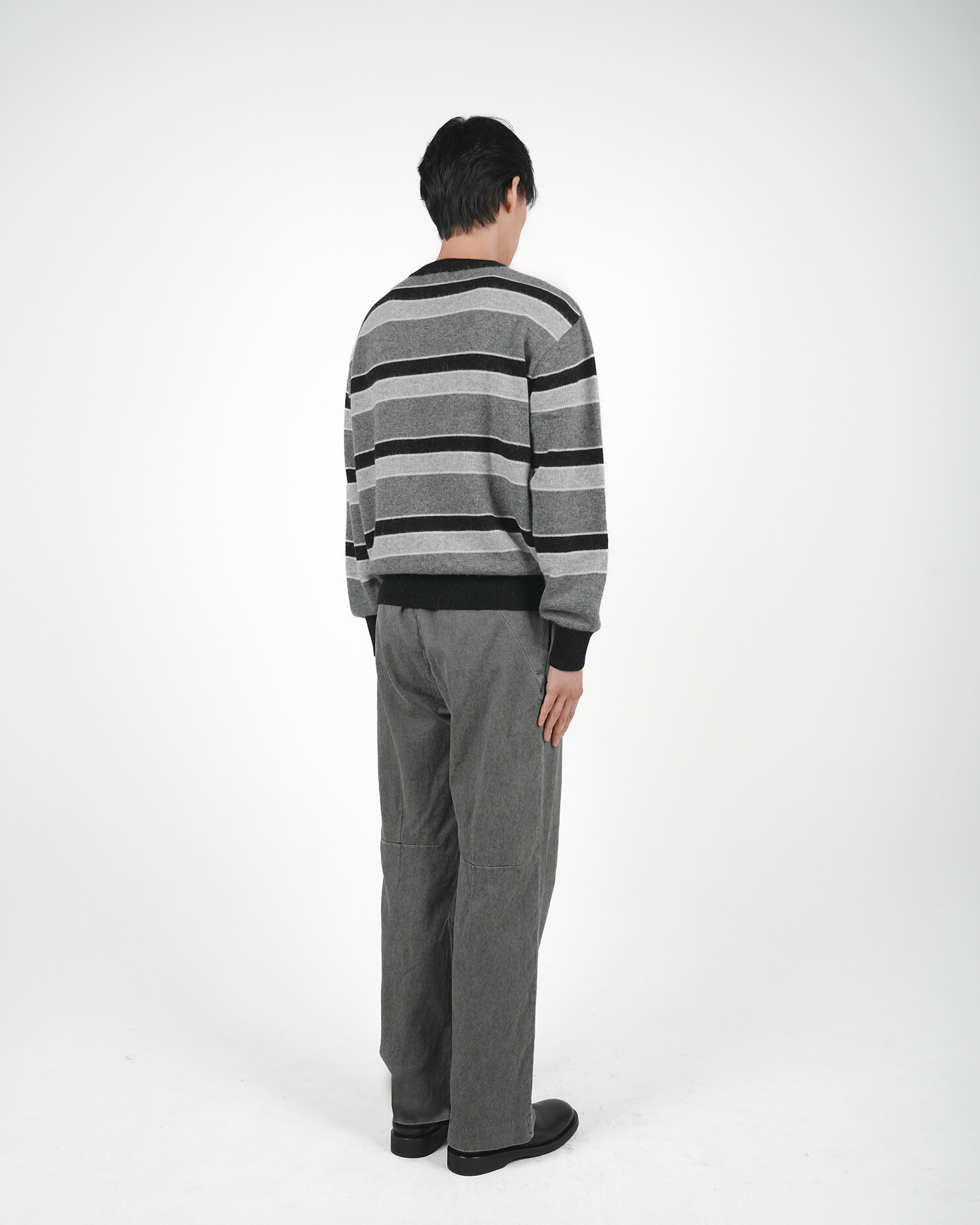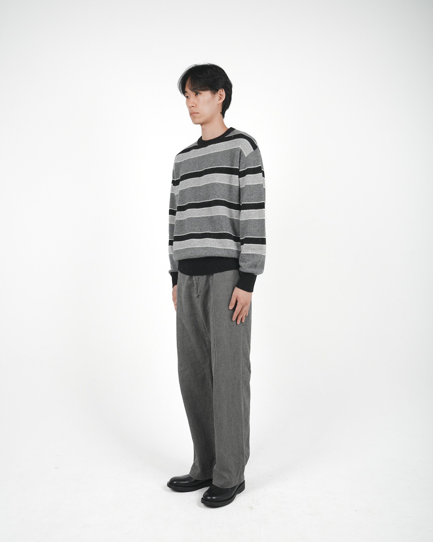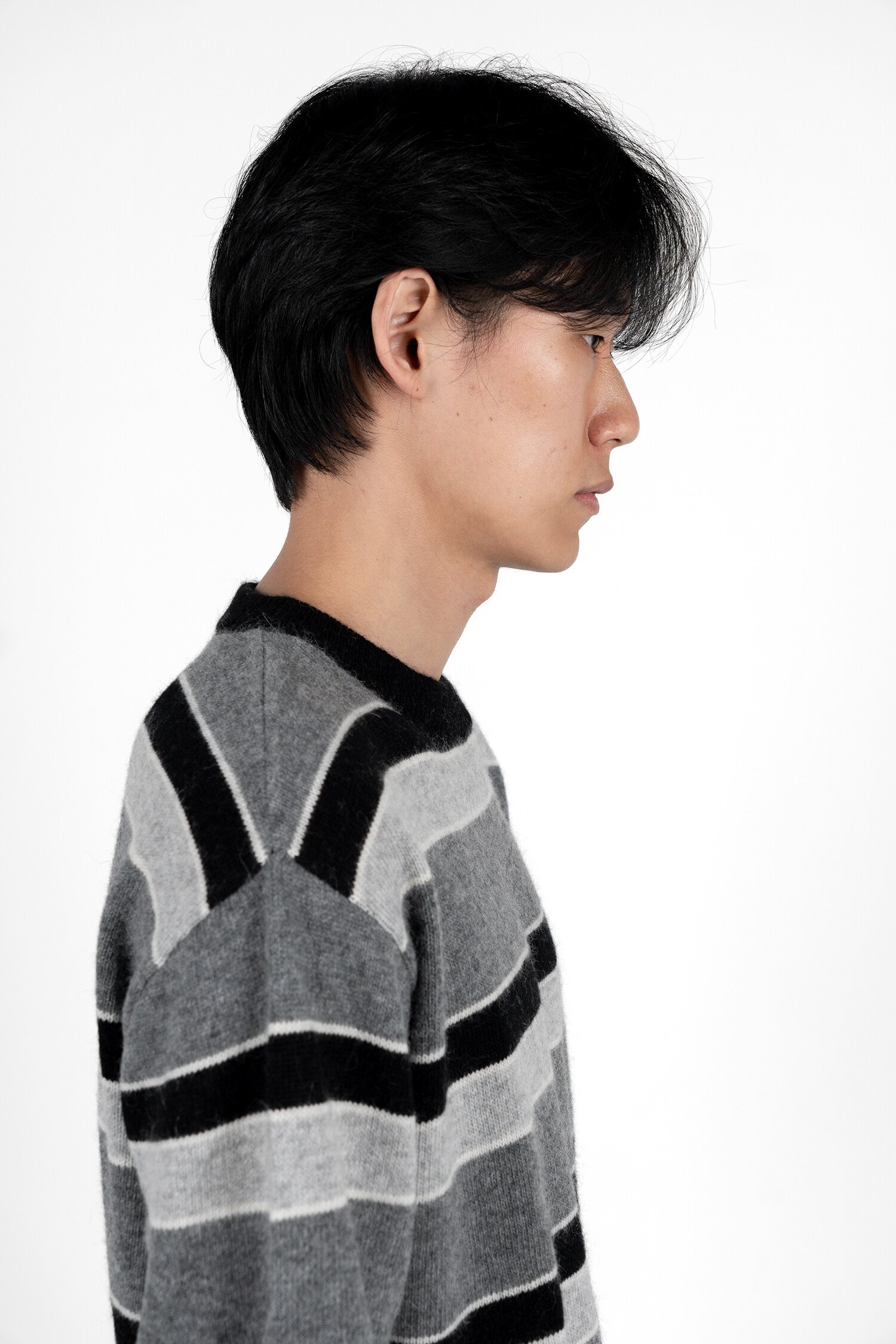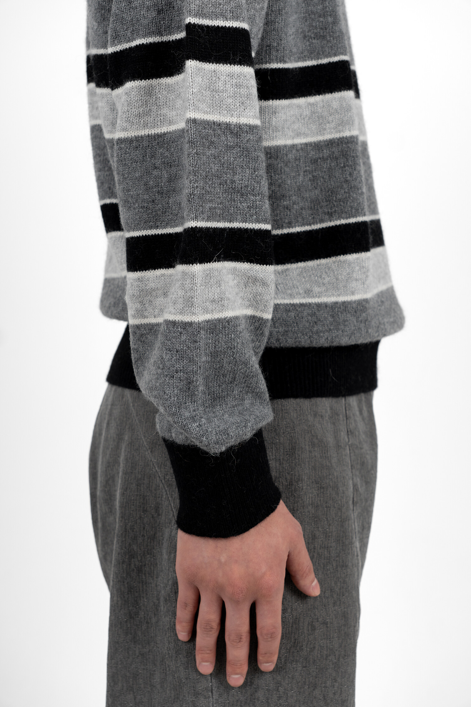 ALPACA MULTI STRIPE SWEATER (Grey melange combie)