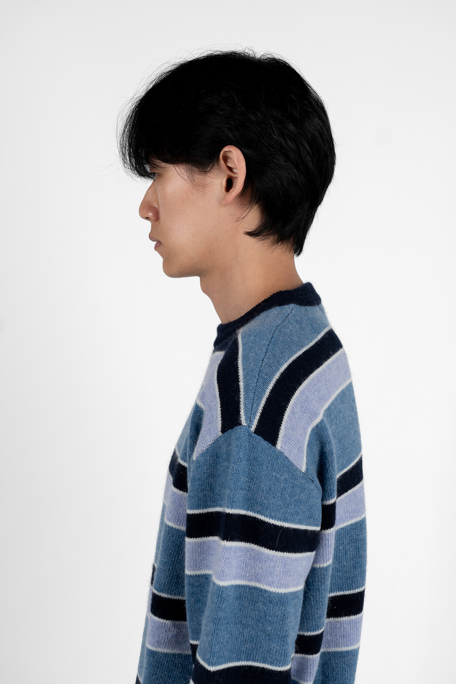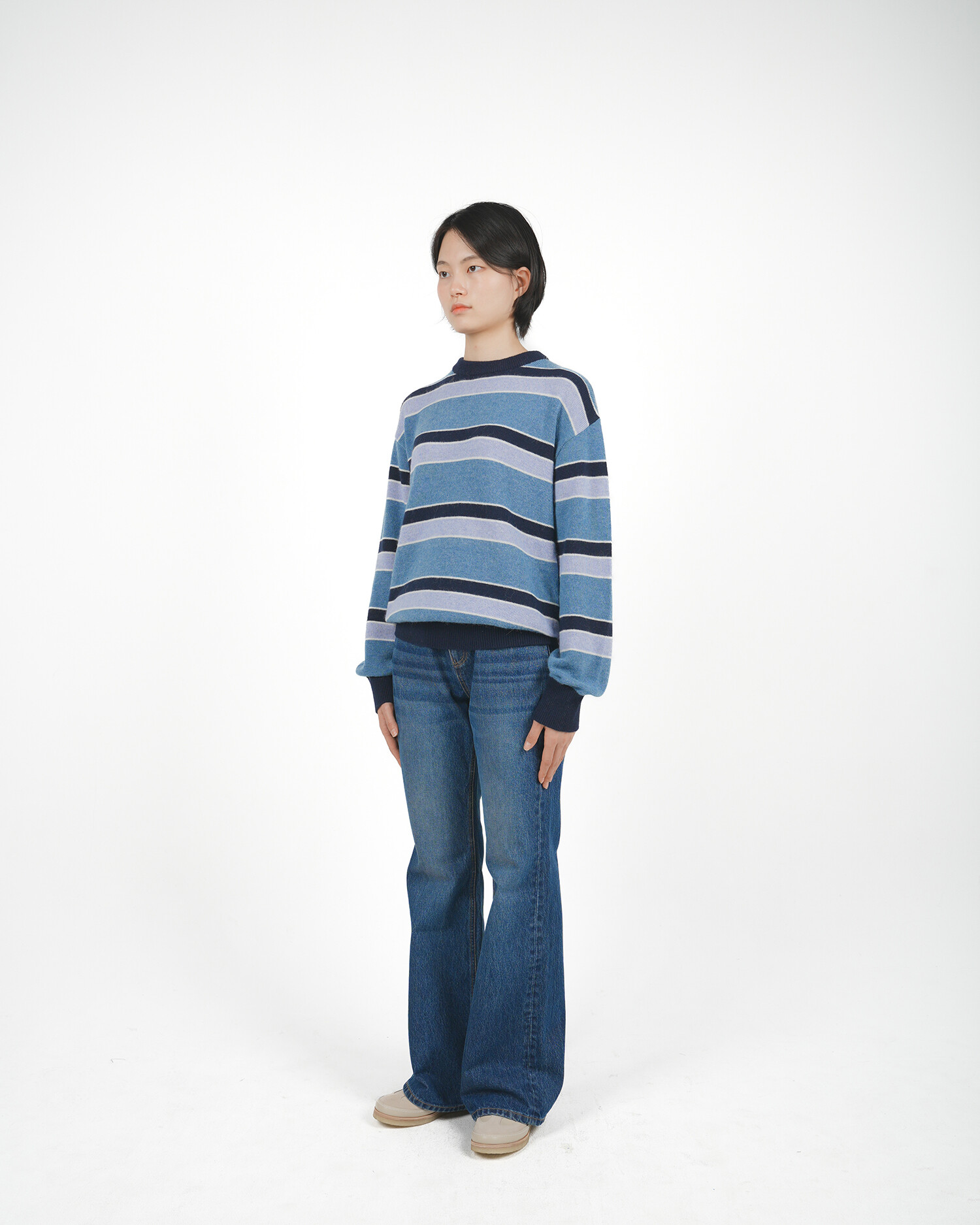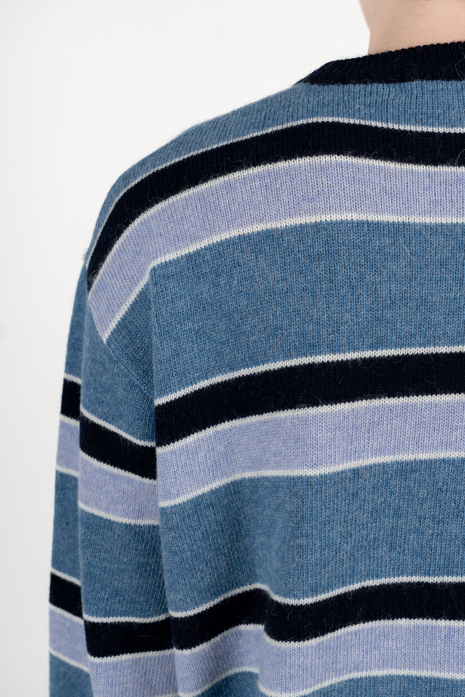 ALPACA MULTI STRIPE SWEATER (Ocean melange combie)